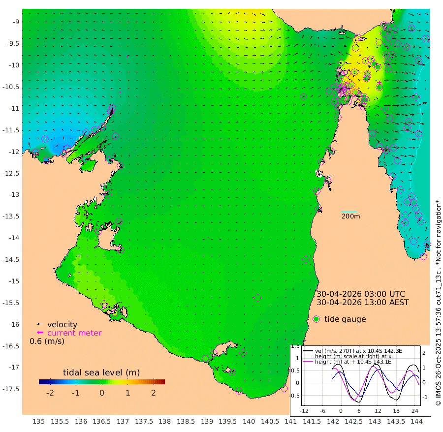 12cm/s -57T +3cm/s rms + 7cm/s -42T. ARA-GOC87 57m 4cm/s 137T +3cm/s rms + 2cm/s -2T. ARA-GOC87 60m 15cm/s -64T +2cm/s rms + 3cm/s 61T. ARA-GOC87 47m -12cm Daru -20cm Bobo Island -63cm Meer Island Barge -64cm Bramble Cay -42cm Unnamed Cay -33cm Pearce Cay -46cm Stephens Island -50cm Merrie England Shoals -20cm Mutacomal Reef -44cm Darnley Island Barge -73cm East Cay -23cm Yorke Island Barge -28cm Rennel Island -17cm Aureed Island -1cm Dungeness Reef 38cm Zagai Island 38cm Yam Island 57cm Dauan Island 55cm Saibai Island 43cm Phipi Reef 42cm Warrior Reef - West 39cm Mabuiag Island Barge -18cm Half Way Island -6cm Coconut Island -5cm Dugong Islet 20cm Poll Island 14cm Kirkcaldie Reef 32cm Suarji Island 24cm Sue Islet -12cm Hawkesbury Island 25cm Alert Patches 30cm Twin Island -10cm Badu Island 47cm St Pauls (Moa Island) 5cm Kubin (Moa Island) 27cm Ince Point 20cm Thursday Island 23cm Nardana Patches -2cm Turtle Head -10cm Round Island -28cm Goods Island -31cm Booby Island -36cm White Rocks Area -10cm Carpentaria 34cm Papou Point -51cm Bampfield Head -23cm Crab Island -21cm Red Wallis Island -9cm Packe Island -5cm Harrington Reef -17cm Herald Camp 27cm Sharp Point -2cm Red Island Point 14cm Possession Island 27cm Alpha Rock 15cm Frederick Point -14cm Wyborn Reef Light -3cm Tetley Island -46cm Triangle Reef -15cm Turtle Head Island -58cm Maclennan Cay -77cm Raine Island -38cm Mcsweeny Reef -47cm Collette Reef -61cm Shadwell Reef -55cm Hannibal Island -69cm Round Point -12cm Vrilya Point -65cm Cape Grenville -67cm Hicks Island -72cm Sir Charles Hardy Island -18cm Harvey Island -81cm Kay Reef -77cm Rocky Island -84cm Chapman Island -77cm Ham Reef -74cm Jubilee Reef -63cm Night Island -79cm Unnamed Reef No. 3 -81cm Morris Island -78cm 1st 3 Mile Opening -76cm Creech Reef -77cm Fife Island -96cm Eden Reef -83cm Stanley Island -88cm Normanby River -116cm Yabooma Island -131cm Hutchison River -110cm Elcho Island -98cm North West Crocodile Island -68cm Cape Wessel -99cm Stevens Island -63cm Guluwuru Island -98cm Hopeful Bay -79cm Auster Point -64cm Two Island Bay -92cm Cadell Strait -77cm Mallison Island -61cm Melville Bay (Gove Harbour) -63cm Truant Island -37cm Cape Arnhem -25cm Cape Grey -9cm Hawk Island 7cm Milner Bay (Groote Eylandt) 12cm Cape Beatrice 41cm West Island 41cm Centre Island 19cm Mornington Island 16cm West Wellesley Islands -5cm Bountiful Island 5cm Albert River Mouth 8cm Sweers Island 10cm Karumba 2cm Nassau River Offshore -13cm Christmas Creek -30cm Archer River -20cm Boyd Point -36cm Weipa (Humbug Point) -11cm Pennefather River -12cm Cullen Point