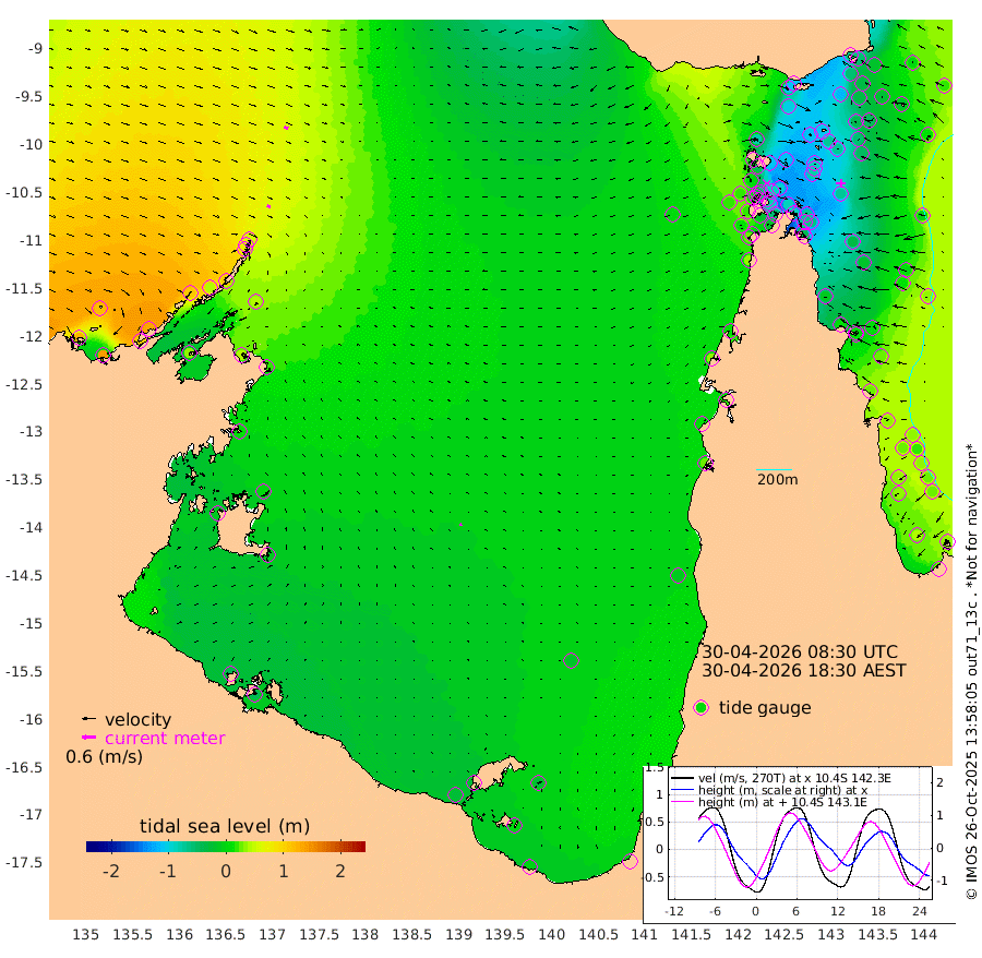 15cm/s 123T +3cm/s rms + 7cm/s -42T. ARA-GOC87 57m 10cm/s -30T +3cm/s rms + 2cm/s -2T. ARA-GOC87 60m 18cm/s 112T +2cm/s rms + 3cm/s 61T. ARA-GOC87 47m -62cm Daru -54cm Bobo Island 12cm Meer Island Barge 2cm Bramble Cay -33cm Unnamed Cay -36cm Pearce Cay -24cm Stephens Island -19cm Merrie England Shoals -57cm Mutacomal Reef -22cm Darnley Island Barge 16cm East Cay -47cm Yorke Island Barge -44cm Rennel Island -57cm Aureed Island -72cm Dungeness Reef -107cm Zagai Island -108cm Yam Island -110cm Dauan Island -109cm Saibai Island -99cm Phipi Reef -114cm Warrior Reef - West -79cm Mabuiag Island Barge -50cm Half Way Island -68cm Coconut Island -69cm Dugong Islet -89cm Poll Island -82cm Kirkcaldie Reef -112cm Suarji Island -90cm Sue Islet 2cm Hawkesbury Island -83cm Alert Patches -92cm Twin Island -13cm Badu Island -108cm St Pauls (Moa Island) -38cm Kubin (Moa Island) -75cm Ince Point -62cm Thursday Island -67cm Nardana Patches -34cm Turtle Head -20cm Round Island 6cm Goods Island 22cm Booby Island 16cm White Rocks Area 2cm Carpentaria -86cm Papou Point 18cm Bampfield Head 30cm Crab Island 10cm Red Wallis Island -22cm Packe Island -73cm Harrington Reef -13cm Herald Camp -42cm Sharp Point -20cm Red Island Point -59cm Possession Island -89cm Alpha Rock -83cm Frederick Point -62cm Wyborn Reef Light -71cm Tetley Island -3cm Triangle Reef -50cm Turtle Head Island 3cm Maclennan Cay 36cm Raine Island -30cm Mcsweeny Reef -16cm Collette Reef 12cm Shadwell Reef -14cm Hannibal Island 8cm Round Point 32cm Vrilya Point 5cm Cape Grenville 9cm Hicks Island 0cm Sir Charles Hardy Island 0cm Harvey Island 25cm Kay Reef 27cm Rocky Island 37cm Chapman Island 33cm Ham Reef 28cm Jubilee Reef 20cm Night Island 34cm Unnamed Reef No. 3 31cm Morris Island 30cm 1st 3 Mile Opening 28cm Creech Reef 32cm Fife Island 44cm Eden Reef 34cm Stanley Island 35cm Normanby River 127cm Yabooma Island 139cm Hutchison River 128cm Elcho Island 120cm North West Crocodile Island 59cm Cape Wessel 110cm Stevens Island 39cm Guluwuru Island 110cm Hopeful Bay 82cm Auster Point 73cm Two Island Bay 106cm Cadell Strait 37cm Mallison Island 43cm Melville Bay (Gove Harbour) 43cm Truant Island 20cm Cape Arnhem 12cm Cape Grey 6cm Hawk Island -9cm Milner Bay (Groote Eylandt) -11cm Cape Beatrice -41cm West Island -38cm Centre Island -26cm Mornington Island -28cm West Wellesley Islands -27cm Bountiful Island -3cm Albert River Mouth 3cm Sweers Island -1cm Karumba -17cm Nassau River Offshore -10cm Christmas Creek 24cm Archer River 11cm Boyd Point 22cm Weipa (Humbug Point) 33cm Pennefather River 14cm Cullen Point
