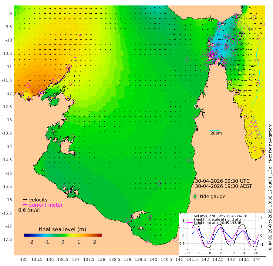 24cm/s 112T +3cm/s rms + 7cm/s -42T. ARA-GOC87 57m 8cm/s -31T +3cm/s rms + 2cm/s -2T. ARA-GOC87 60m 26cm/s 102T +2cm/s rms + 3cm/s 61T. ARA-GOC87 47m 4cm Daru 17cm Bobo Island 54cm Meer Island Barge 58cm Bramble Cay 31cm Unnamed Cay 33cm Pearce Cay 39cm Stephens Island 45cm Merrie England Shoals 9cm Mutacomal Reef 35cm Darnley Island Barge 65cm East Cay 14cm Yorke Island Barge 19cm Rennel Island 9cm Aureed Island -13cm Dungeness Reef -59cm Zagai Island -63cm Yam Island -91cm Dauan Island -90cm Saibai Island -69cm Phipi Reef -65cm Warrior Reef - West -68cm Mabuiag Island Barge 11cm Half Way Island -2cm Coconut Island -8cm Dugong Islet -35cm Poll Island -28cm Kirkcaldie Reef -63cm Suarji Island -41cm Sue Islet -10cm Hawkesbury Island -46cm Alert Patches -50cm Twin Island -17cm Badu Island -71cm St Pauls (Moa Island) -33cm Kubin (Moa Island) -51cm Ince Point -47cm Thursday Island -49cm Nardana Patches -27cm Turtle Head -20cm Round Island -4cm Goods Island -2cm Booby Island 1cm White Rocks Area -23cm Carpentaria -51cm Papou Point 4cm Bampfield Head 7cm Crab Island -9cm Red Wallis Island -21cm Packe Island -3cm Harrington Reef -28cm Herald Camp -33cm Sharp Point -13cm Red Island Point -35cm Possession Island -48cm Alpha Rock -29cm Frederick Point 5cm Wyborn Reef Light -7cm Tetley Island 37cm Triangle Reef 16cm Turtle Head Island 44cm Maclennan Cay 67cm Raine Island 30cm Mcsweeny Reef 39cm Collette Reef 51cm Shadwell Reef 48cm Hannibal Island 66cm Round Point 4cm Vrilya Point 54cm Cape Grenville 56cm Hicks Island 47cm Sir Charles Hardy Island 15cm Harvey Island 70cm Kay Reef 64cm Rocky Island 72cm Chapman Island 64cm Ham Reef 63cm Jubilee Reef 54cm Night Island 68cm Unnamed Reef No. 3 70cm Morris Island 62cm 1st 3 Mile Opening 63cm Creech Reef 72cm Fife Island 85cm Eden Reef 71cm Stanley Island 79cm Normanby River 141cm Yabooma Island 169cm Hutchison River 146cm Elcho Island 135cm North West Crocodile Island 88cm Cape Wessel 135cm Stevens Island 81cm Guluwuru Island 128cm Hopeful Bay 106cm Auster Point 94cm Two Island Bay 141cm Cadell Strait 96cm Mallison Island 78cm Melville Bay (Gove Harbour) 80cm Truant Island 47cm Cape Arnhem 30cm Cape Grey 19cm Hawk Island -8cm Milner Bay (Groote Eylandt) -12cm Cape Beatrice -53cm West Island -51cm Centre Island -27cm Mornington Island -32cm West Wellesley Islands -29cm Bountiful Island -12cm Albert River Mouth -7cm Sweers Island -10cm Karumba -18cm Nassau River Offshore -11cm Christmas Creek 15cm Archer River 0cm Boyd Point 9cm Weipa (Humbug Point) 15cm Pennefather River -10cm Cullen Point