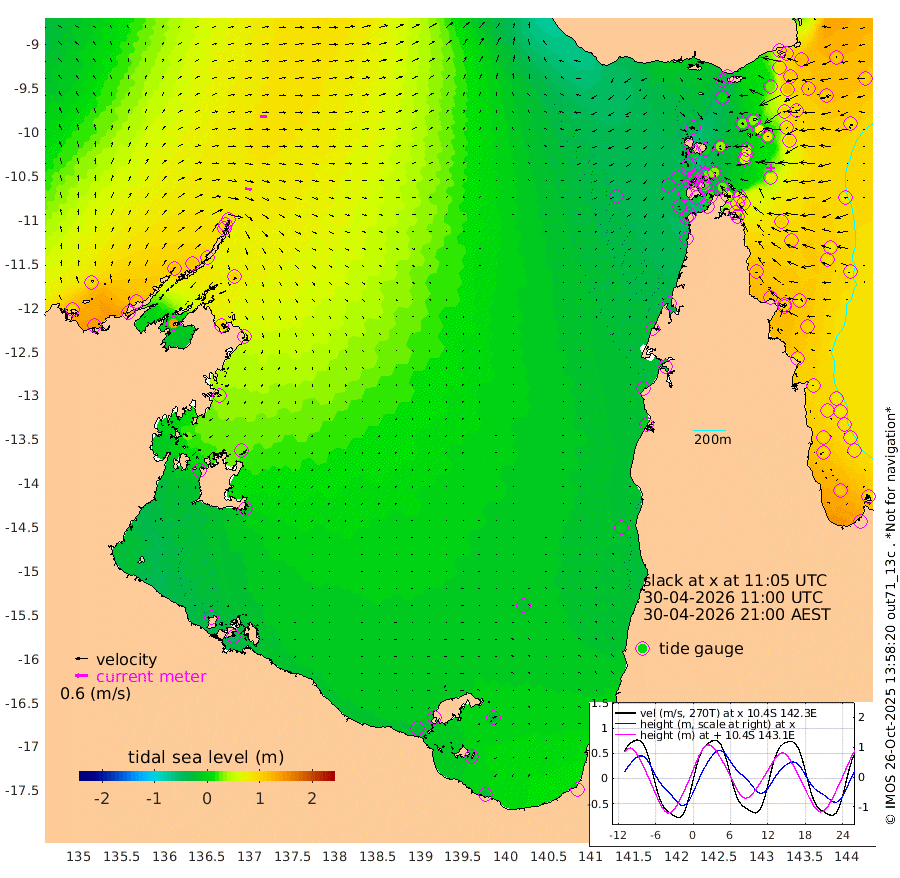 31cm/s 103T +3cm/s rms + 7cm/s -42T. ARA-GOC87 57m 3cm/s -14T +3cm/s rms + 2cm/s -2T. ARA-GOC87 60m 31cm/s 93T +2cm/s rms + 3cm/s 61T. ARA-GOC87 47m 93cm Daru 110cm Bobo Island 89cm Meer Island Barge 110cm Bramble Cay 104cm Unnamed Cay 115cm Pearce Cay 110cm Stephens Island 114cm Merrie England Shoals 95cm Mutacomal Reef 100cm Darnley Island Barge 104cm East Cay 92cm Yorke Island Barge 99cm Rennel Island 97cm Aureed Island 75cm Dungeness Reef 34cm Zagai Island 24cm Yam Island -29cm Dauan Island -26cm Saibai Island 1cm Phipi Reef 28cm Warrior Reef - West -24cm Mabuiag Island Barge 90cm Half Way Island 91cm Coconut Island 78cm Dugong Islet 54cm Poll Island 58cm Kirkcaldie Reef 31cm Suarji Island 43cm Sue Islet -24cm Hawkesbury Island 27cm Alert Patches 30cm Twin Island -14cm Badu Island 12cm St Pauls (Moa Island) -14cm Kubin (Moa Island) 4cm Ince Point -6cm Thursday Island -5cm Nardana Patches -6cm Turtle Head -13cm Round Island -15cm Goods Island -33cm Booby Island -20cm White Rocks Area -45cm Carpentaria 20cm Papou Point -14cm Bampfield Head -23cm Crab Island -31cm Red Wallis Island -13cm Packe Island 95cm Harrington Reef -40cm Herald Camp -6cm Sharp Point 5cm Red Island Point 16cm Possession Island 27cm Alpha Rock 59cm Frederick Point 95cm Wyborn Reef Light 84cm Tetley Island 76cm Triangle Reef 103cm Turtle Head Island 82cm Maclennan Cay 82cm Raine Island 101cm Mcsweeny Reef 100cm Collette Reef 84cm Shadwell Reef 113cm Hannibal Island 117cm Round Point -32cm Vrilya Point 99cm Cape Grenville 98cm Hicks Island 88cm Sir Charles Hardy Island 30cm Harvey Island 101cm Kay Reef 88cm Rocky Island 89cm Chapman Island 80cm Ham Reef 84cm Jubilee Reef 78cm Night Island 86cm Unnamed Reef No. 3 94cm Morris Island 80cm 1st 3 Mile Opening 86cm Creech Reef 96cm Fife Island 106cm Eden Reef 91cm Stanley Island 105cm Normanby River 95cm Yabooma Island 136cm Hutchison River 106cm Elcho Island 93cm North West Crocodile Island 89cm Cape Wessel 109cm Stevens Island 106cm Guluwuru Island 97cm Hopeful Bay 93cm Auster Point 80cm Two Island Bay 129cm Cadell Strait 139cm Mallison Island 93cm Melville Bay (Gove Harbour) 99cm Truant Island 65cm Cape Arnhem 43cm Cape Grey 29cm Hawk Island -5cm Milner Bay (Groote Eylandt) -11cm Cape Beatrice -51cm West Island -48cm Centre Island -20cm Mornington Island -27cm West Wellesley Islands -29cm Bountiful Island -27cm Albert River Mouth -22cm Sweers Island -25cm Karumba -18cm Nassau River Offshore -11cm Christmas Creek -3cm Archer River -15cm Boyd Point -15cm Weipa (Humbug Point) -10cm Pennefather River -38cm Cullen Point