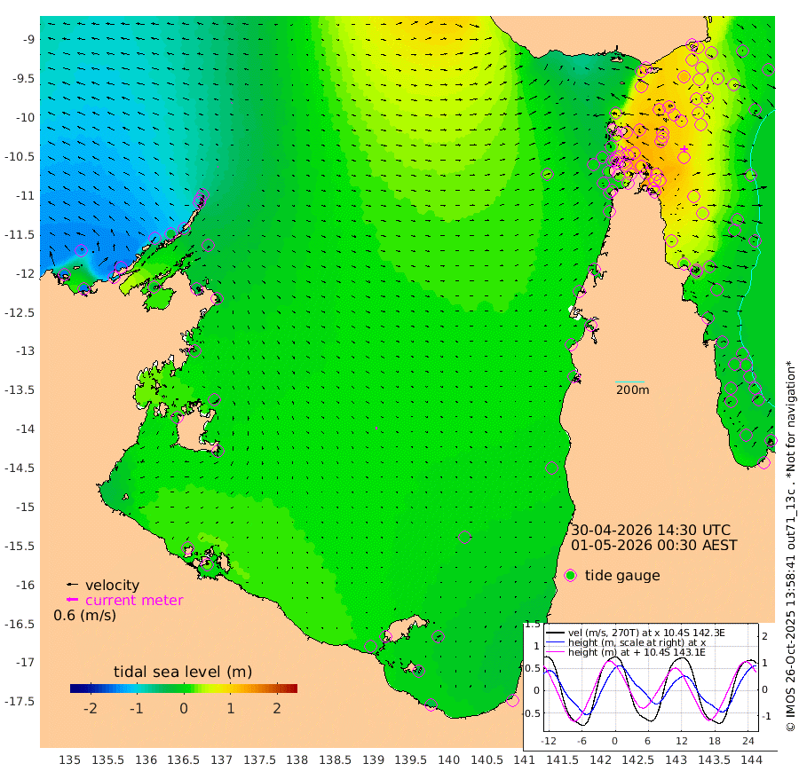 5cm/s 75T +3cm/s rms + 7cm/s -42T. ARA-GOC87 57m 8cm/s 103T +3cm/s rms + 2cm/s -2T. ARA-GOC87 60m 2cm/s 50T +2cm/s rms + 3cm/s 61T. ARA-GOC87 47m 81cm Daru 80cm Bobo Island 14cm Meer Island Barge 22cm Bramble Cay 53cm Unnamed Cay 64cm Pearce Cay 50cm Stephens Island 42cm Merrie England Shoals 70cm Mutacomal Reef 48cm Darnley Island Barge 12cm East Cay 69cm Yorke Island Barge 66cm Rennel Island 82cm Aureed Island 90cm Dungeness Reef 119cm Zagai Island 108cm Yam Island 103cm Dauan Island 105cm Saibai Island 108cm Phipi Reef 117cm Warrior Reef - West 81cm Mabuiag Island Barge 68cm Half Way Island 95cm Coconut Island 82cm Dugong Islet 101cm Poll Island 98cm Kirkcaldie Reef 127cm Suarji Island 102cm Sue Islet 7cm Hawkesbury Island 102cm Alert Patches 106cm Twin Island 35cm Badu Island 116cm St Pauls (Moa Island) 42cm Kubin (Moa Island) 86cm Ince Point 74cm Thursday Island 77cm Nardana Patches 51cm Turtle Head 33cm Round Island 15cm Goods Island 3cm Booby Island 6cm White Rocks Area 25cm Carpentaria 98cm Papou Point 19cm Bampfield Head 2cm Crab Island 6cm Red Wallis Island 28cm Packe Island 97cm Harrington Reef 15cm Herald Camp 40cm Sharp Point 43cm Red Island Point 80cm Possession Island 91cm Alpha Rock 100cm Frederick Point 79cm Wyborn Reef Light 85cm Tetley Island 24cm Triangle Reef 80cm Turtle Head Island 19cm Maclennan Cay -5cm Raine Island 54cm Mcsweeny Reef 42cm Collette Reef 14cm Shadwell Reef 41cm Hannibal Island 18cm Round Point 0cm Vrilya Point 18cm Cape Grenville 17cm Hicks Island 19cm Sir Charles Hardy Island 8cm Harvey Island 1cm Kay Reef -1cm Rocky Island -9cm Chapman Island -7cm Ham Reef -1cm Jubilee Reef 3cm Night Island -6cm Unnamed Reef No. 3 -3cm Morris Island 2cm 1st 3 Mile Opening 2cm Creech Reef -6cm Fife Island -12cm Eden Reef -7cm Stanley Island -10cm Normanby River -146cm Yabooma Island -145cm Hutchison River -139cm Elcho Island -139cm North West Crocodile Island -59cm Cape Wessel -119cm Stevens Island -22cm Guluwuru Island -119cm Hopeful Bay -79cm Auster Point -87cm Two Island Bay -107cm Cadell Strait -19cm Mallison Island -34cm Melville Bay (Gove Harbour) -30cm Truant Island -9cm Cape Arnhem -1cm Cape Grey -7cm Hawk Island 2cm Milner Bay (Groote Eylandt) -2cm Cape Beatrice 17cm West Island 23cm Centre Island 8cm Mornington Island 9cm West Wellesley Islands -9cm Bountiful Island -36cm Albert River Mouth -37cm Sweers Island -35cm Karumba -3cm Nassau River Offshore 6cm Christmas Creek -6cm Archer River 6cm Boyd Point -8cm Weipa (Humbug Point) 0cm Pennefather River 1cm Cullen Point