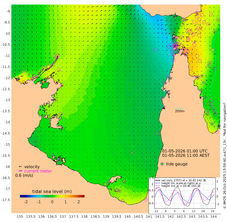 11cm/s 42T +3cm/s rms + 7cm/s -42T. ARA-GOC87 57m 6cm/s -159T +3cm/s rms + 2cm/s -2T. ARA-GOC87 60m 14cm/s 25T +2cm/s rms + 3cm/s 61T. ARA-GOC87 47m 82cm Daru 87cm Bobo Island 24cm Meer Island Barge 49cm Bramble Cay 67cm Unnamed Cay 77cm Pearce Cay 63cm Stephens Island 66cm Merrie England Shoals 84cm Mutacomal Reef 55cm Darnley Island Barge 30cm East Cay 68cm Yorke Island Barge 70cm Rennel Island 79cm Aureed Island 71cm Dungeness Reef 73cm Zagai Island 69cm Yam Island 35cm Dauan Island 37cm Saibai Island 37cm Phipi Reef 78cm Warrior Reef - West 6cm Mabuiag Island Barge 71cm Half Way Island 76cm Coconut Island 76cm Dugong Islet 74cm Poll Island 64cm Kirkcaldie Reef 60cm Suarji Island 64cm Sue Islet -71cm Hawkesbury Island 33cm Alert Patches 48cm Twin Island -61cm Badu Island 49cm St Pauls (Moa Island) -28cm Kubin (Moa Island) 15cm Ince Point -8cm Thursday Island -1cm Nardana Patches -35cm Turtle Head -51cm Round Island -79cm Goods Island -112cm Booby Island -94cm White Rocks Area -104cm Carpentaria 39cm Papou Point -115cm Bampfield Head -103cm Crab Island -90cm Red Wallis Island -42cm Packe Island 84cm Harrington Reef -80cm Herald Camp 20cm Sharp Point -35cm Red Island Point 2cm Possession Island 57cm Alpha Rock 66cm Frederick Point 83cm Wyborn Reef Light 84cm Tetley Island 31cm Triangle Reef 68cm Turtle Head Island 24cm Maclennan Cay -2cm Raine Island 62cm Mcsweeny Reef 51cm Collette Reef 20cm Shadwell Reef 58cm Hannibal Island 49cm Round Point -107cm Vrilya Point 37cm Cape Grenville 30cm Hicks Island 29cm Sir Charles Hardy Island 11cm Harvey Island 22cm Kay Reef 11cm Rocky Island 4cm Chapman Island 3cm Ham Reef 7cm Jubilee Reef 14cm Night Island 5cm Unnamed Reef No. 3 11cm Morris Island -6cm 1st 3 Mile Opening 6cm Creech Reef 19cm Fife Island 9cm Eden Reef 7cm Stanley Island 20cm Normanby River 16cm Yabooma Island 38cm Hutchison River 27cm Elcho Island 29cm North West Crocodile Island 48cm Cape Wessel 41cm Stevens Island 63cm Guluwuru Island 30cm Hopeful Bay 32cm Auster Point 44cm Two Island Bay 60cm Cadell Strait 109cm Mallison Island 54cm Melville Bay (Gove Harbour) 55cm Truant Island 41cm Cape Arnhem 26cm Cape Grey 34cm Hawk Island 18cm Milner Bay (Groote Eylandt) 21cm Cape Beatrice 15cm West Island 8cm Centre Island 28cm Mornington Island 23cm West Wellesley Islands 27cm Bountiful Island 38cm Albert River Mouth 38cm Sweers Island 33cm Karumba 12cm Nassau River Offshore -14cm Christmas Creek -54cm Archer River -59cm Boyd Point -70cm Weipa (Humbug Point) -77cm Pennefather River -86cm Cullen Point