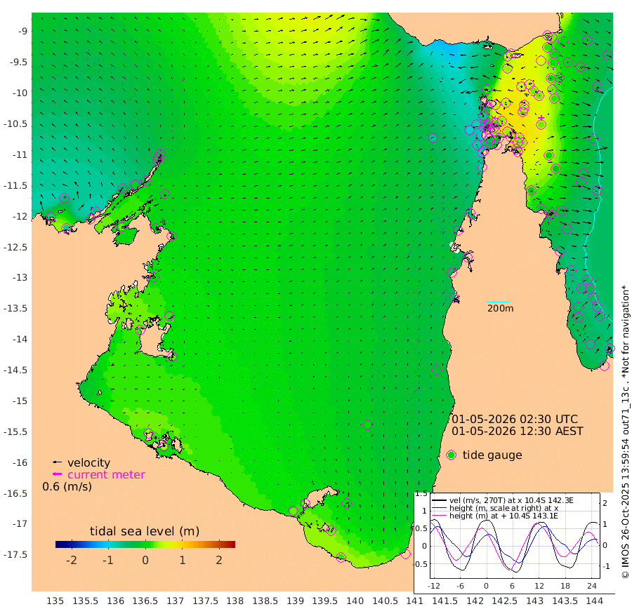 10cm/s 0T +3cm/s rms + 7cm/s -42T. ARA-GOC87 57m 2cm/s 124T +3cm/s rms + 2cm/s -2T. ARA-GOC87 60m 13cm/s -9T +2cm/s rms + 3cm/s 61T. ARA-GOC87 47m 25cm Daru 26cm Bobo Island -31cm Meer Island Barge -22cm Bramble Cay -1cm Unnamed Cay 12cm Pearce Cay -3cm Stephens Island -7cm Merrie England Shoals 20cm Mutacomal Reef -4cm Darnley Island Barge -36cm East Cay 15cm Yorke Island Barge 10cm Rennel Island 25cm Aureed Island 26cm Dungeness Reef 54cm Zagai Island 49cm Yam Island 42cm Dauan Island 45cm Saibai Island 31cm Phipi Reef 57cm Warrior Reef - West 15cm Mabuiag Island Barge 17cm Half Way Island 27cm Coconut Island 27cm Dugong Islet 41cm Poll Island 30cm Kirkcaldie Reef 42cm Suarji Island 40cm Sue Islet -68cm Hawkesbury Island 20cm Alert Patches 32cm Twin Island -59cm Badu Island 43cm St Pauls (Moa Island) -29cm Kubin (Moa Island) 11cm Ince Point -6cm Thursday Island -1cm Nardana Patches -37cm Turtle Head -51cm Round Island -78cm Goods Island -96cm Booby Island -90cm White Rocks Area -68cm Carpentaria 30cm Papou Point -107cm Bampfield Head -84cm Crab Island -78cm Red Wallis Island -46cm Packe Island 31cm Harrington Reef -71cm Herald Camp 25cm Sharp Point -37cm Red Island Point -3cm Possession Island 37cm Alpha Rock 33cm Frederick Point 25cm Wyborn Reef Light 32cm Tetley Island -17cm Triangle Reef 15cm Turtle Head Island -29cm Maclennan Cay -53cm Raine Island 1cm Mcsweeny Reef -10cm Collette Reef -33cm Shadwell Reef -11cm Hannibal Island -26cm Round Point -76cm Vrilya Point -27cm Cape Grenville -32cm Hicks Island -35cm Sir Charles Hardy Island -7cm Harvey Island -45cm Kay Reef -47cm Rocky Island -54cm Chapman Island -50cm Ham Reef -47cm Jubilee Reef -35cm Night Island -50cm Unnamed Reef No. 3 -50cm Morris Island -55cm 1st 3 Mile Opening -48cm Creech Reef -42cm Fife Island -59cm Eden Reef -53cm Stanley Island -49cm Normanby River -77cm Yabooma Island -77cm Hutchison River -66cm Elcho Island -59cm North West Crocodile Island -16cm Cape Wessel -48cm Stevens Island -3cm Guluwuru Island -52cm Hopeful Bay -35cm Auster Point -20cm Two Island Bay -33cm Cadell Strait 26cm Mallison Island -8cm Melville Bay (Gove Harbour) -8cm Truant Island 2cm Cape Arnhem 1cm Cape Grey 15cm Hawk Island 21cm Milner Bay (Groote Eylandt) 23cm Cape Beatrice 40cm West Island 38cm Centre Island 27cm Mornington Island 24cm West Wellesley Islands 8cm Bountiful Island 22cm Albert River Mouth 26cm Sweers Island 19cm Karumba 0cm Nassau River Offshore -25cm Christmas Creek -57cm Archer River -52cm Boyd Point -71cm Weipa (Humbug Point) -57cm Pennefather River -64cm Cullen Point