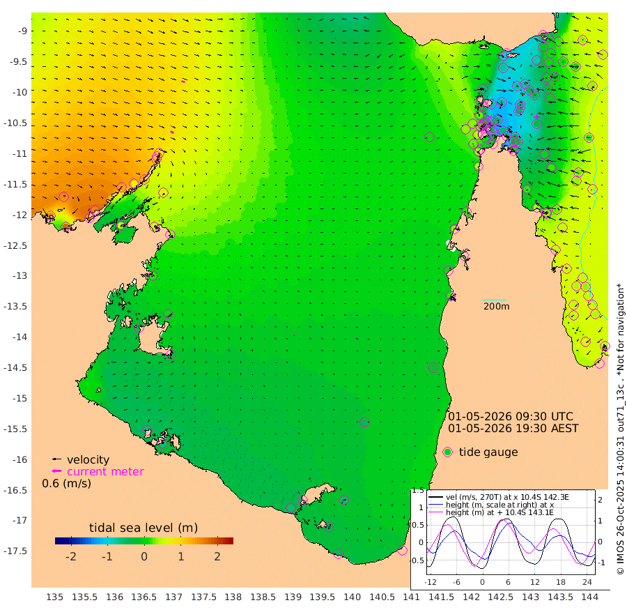23cm/s 121T +3cm/s rms + 7cm/s -42T. ARA-GOC87 57m 9cm/s -18T +3cm/s rms + 2cm/s -2T. ARA-GOC87 60m 25cm/s 112T +2cm/s rms + 3cm/s 61T. ARA-GOC87 47m -19cm Daru -11cm Bobo Island 33cm Meer Island Barge 34cm Bramble Cay 8cm Unnamed Cay 4cm Pearce Cay 13cm Stephens Island 21cm Merrie England Shoals -12cm Mutacomal Reef 10cm Darnley Island Barge 41cm East Cay -10cm Yorke Island Barge -3cm Rennel Island -19cm Aureed Island -32cm Dungeness Reef -71cm Zagai Island -70cm Yam Island -88cm Dauan Island -89cm Saibai Island -71cm Phipi Reef -79cm Warrior Reef - West -55cm Mabuiag Island Barge -10cm Half Way Island -23cm Coconut Island -28cm Dugong Islet -49cm Poll Island -40cm Kirkcaldie Reef -72cm Suarji Island -53cm Sue Islet 28cm Hawkesbury Island -45cm Alert Patches -52cm Twin Island 11cm Badu Island -70cm St Pauls (Moa Island) -8cm Kubin (Moa Island) -43cm Ince Point -32cm Thursday Island -36cm Nardana Patches -9cm Turtle Head 11cm Round Island 26cm Goods Island 37cm Booby Island 35cm White Rocks Area 11cm Carpentaria -49cm Papou Point 47cm Bampfield Head 41cm Crab Island 26cm Red Wallis Island 4cm Packe Island -26cm Harrington Reef 12cm Herald Camp -33cm Sharp Point 4cm Red Island Point -23cm Possession Island -51cm Alpha Rock -40cm Frederick Point -14cm Wyborn Reef Light -23cm Tetley Island 19cm Triangle Reef 1cm Turtle Head Island 25cm Maclennan Cay 51cm Raine Island 6cm Mcsweeny Reef 16cm Collette Reef 33cm Shadwell Reef 22cm Hannibal Island 41cm Round Point 38cm Vrilya Point 33cm Cape Grenville 36cm Hicks Island 25cm Sir Charles Hardy Island 8cm Harvey Island 48cm Kay Reef 45cm Rocky Island 52cm Chapman Island 47cm Ham Reef 45cm Jubilee Reef 36cm Night Island 49cm Unnamed Reef No. 3 50cm Morris Island 46cm 1st 3 Mile Opening 44cm Creech Reef 48cm Fife Island 62cm Eden Reef 52cm Stanley Island 56cm Normanby River 157cm Yabooma Island 179cm Hutchison River 157cm Elcho Island 148cm North West Crocodile Island 85cm Cape Wessel 141cm Stevens Island 65cm Guluwuru Island 135cm Hopeful Bay 109cm Auster Point 101cm Two Island Bay 139cm Cadell Strait 53cm Mallison Island 66cm Melville Bay (Gove Harbour) 69cm Truant Island 36cm Cape Arnhem 19cm Cape Grey 9cm Hawk Island -17cm Milner Bay (Groote Eylandt) -23cm Cape Beatrice -64cm West Island -61cm Centre Island -52cm Mornington Island -59cm West Wellesley Islands -59cm Bountiful Island -44cm Albert River Mouth -39cm Sweers Island -38cm Karumba -39cm Nassau River Offshore -22cm Christmas Creek 19cm Archer River 11cm Boyd Point 21cm Weipa (Humbug Point) 35cm Pennefather River 19cm Cullen Point