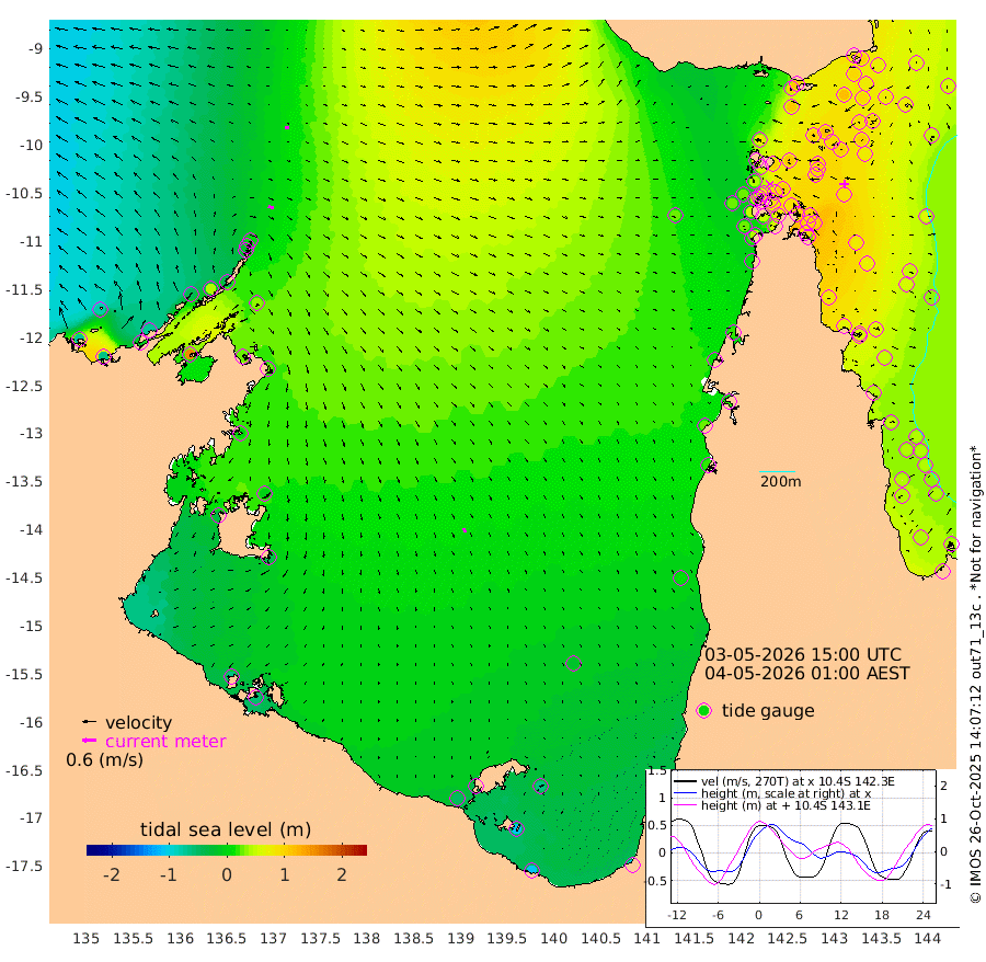 23cm/s 107T +3cm/s rms + 7cm/s -42T. ARA-GOC87 57m 20cm/s 153T +3cm/s rms + 2cm/s -2T. ARA-GOC87 60m 16cm/s 97T +2cm/s rms + 3cm/s 61T. ARA-GOC87 47m 96cm Daru 101cm Bobo Island 51cm Meer Island Barge 63cm Bramble Cay 80cm Unnamed Cay 92cm Pearce Cay 76cm Stephens Island 74cm Merrie England Shoals 91cm Mutacomal Reef 78cm Darnley Island Barge 54cm East Cay 90cm Yorke Island Barge 84cm Rennel Island 99cm Aureed Island 95cm Dungeness Reef 113cm Zagai Island 100cm Yam Island 104cm Dauan Island 111cm Saibai Island 107cm Phipi Reef 117cm Warrior Reef - West 80cm Mabuiag Island Barge 80cm Half Way Island 105cm Coconut Island 87cm Dugong Islet 99cm Poll Island 92cm Kirkcaldie Reef 108cm Suarji Island 103cm Sue Islet 43cm Hawkesbury Island 95cm Alert Patches 98cm Twin Island 58cm Badu Island 100cm St Pauls (Moa Island) 56cm Kubin (Moa Island) 80cm Ince Point 71cm Thursday Island 74cm Nardana Patches 60cm Turtle Head 51cm Round Island 38cm Goods Island 24cm Booby Island 23cm White Rocks Area 29cm Carpentaria 87cm Papou Point 48cm Bampfield Head 18cm Crab Island 27cm Red Wallis Island 50cm Packe Island 98cm Harrington Reef 41cm Herald Camp 29cm Sharp Point 56cm Red Island Point 79cm Possession Island 89cm Alpha Rock 100cm Frederick Point 99cm Wyborn Reef Light 102cm Tetley Island 61cm Triangle Reef 94cm Turtle Head Island 51cm Maclennan Cay 35cm Raine Island 79cm Mcsweeny Reef 75cm Collette Reef 53cm Shadwell Reef 77cm Hannibal Island 65cm Round Point 13cm Vrilya Point 56cm Cape Grenville 54cm Hicks Island 62cm Sir Charles Hardy Island 17cm Harvey Island 48cm Kay Reef 42cm Rocky Island 46cm Chapman Island 41cm Ham Reef 42cm Jubilee Reef 39cm Night Island 42cm Unnamed Reef No. 3 40cm Morris Island 37cm 1st 3 Mile Opening 41cm Creech Reef 40cm Fife Island 42cm Eden Reef 38cm Stanley Island 38cm Normanby River -73cm Yabooma Island -62cm Hutchison River -71cm Elcho Island -77cm North West Crocodile Island 4cm Cape Wessel -41cm Stevens Island 44cm Guluwuru Island -41cm Hopeful Bay -16cm Auster Point -25cm Two Island Bay -14cm Cadell Strait 155cm Mallison Island 25cm Melville Bay (Gove Harbour) 34cm Truant Island 29cm Cape Arnhem 6cm Cape Grey -3cm Hawk Island -36cm Milner Bay (Groote Eylandt) -43cm Cape Beatrice -60cm West Island -54cm Centre Island -44cm Mornington Island -47cm West Wellesley Islands -63cm Bountiful Island -109cm Albert River Mouth -110cm Sweers Island -98cm Karumba -22cm Nassau River Offshore 9cm Christmas Creek 17cm Archer River 26cm Boyd Point 17cm Weipa (Humbug Point) 14cm Pennefather River 19cm Cullen Point