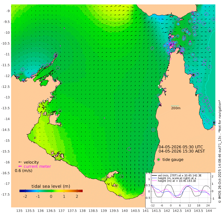 15cm/s -6T +3cm/s rms + 7cm/s -42T. ARA-GOC87 57m 19cm/s 9T +3cm/s rms + 2cm/s -2T. ARA-GOC87 60m 13cm/s 2T +2cm/s rms + 3cm/s 61T. ARA-GOC87 47m -91cm Daru -84cm Bobo Island -70cm Meer Island Barge -87cm Bramble Cay -94cm Unnamed Cay -90cm Pearce Cay -87cm Stephens Island -94cm Merrie England Shoals -92cm Mutacomal Reef -78cm Darnley Island Barge -80cm East Cay -78cm Yorke Island Barge -89cm Rennel Island -76cm Aureed Island -90cm Dungeness Reef -69cm Zagai Island -79cm Yam Island -78cm Dauan Island -63cm Saibai Island -105cm Phipi Reef -79cm Warrior Reef - West -74cm Mabuiag Island Barge -81cm Half Way Island -87cm Coconut Island -82cm Dugong Islet -79cm Poll Island -89cm Kirkcaldie Reef -81cm Suarji Island -72cm Sue Islet -131cm Hawkesbury Island -91cm Alert Patches -83cm Twin Island -127cm Badu Island -79cm St Pauls (Moa Island) -110cm Kubin (Moa Island) -87cm Ince Point -91cm Thursday Island -90cm Nardana Patches -110cm Turtle Head -118cm Round Island -124cm Goods Island -115cm Booby Island -115cm White Rocks Area -52cm Carpentaria -75cm Papou Point -129cm Bampfield Head -94cm Crab Island -103cm Red Wallis Island -113cm Packe Island -86cm Harrington Reef -126cm Herald Camp -12cm Sharp Point -104cm Red Island Point -94cm Possession Island -66cm Alpha Rock -85cm Frederick Point -90cm Wyborn Reef Light -87cm Tetley Island -67cm Triangle Reef -99cm Turtle Head Island -72cm Maclennan Cay -70cm Raine Island -83cm Mcsweeny Reef -82cm Collette Reef -72cm Shadwell Reef -89cm Hannibal Island -91cm Round Point -70cm Vrilya Point -81cm Cape Grenville -82cm Hicks Island -85cm Sir Charles Hardy Island -24cm Harvey Island -80cm Kay Reef -75cm Rocky Island -72cm Chapman Island -66cm Ham Reef -70cm Jubilee Reef -62cm Night Island -67cm Unnamed Reef No. 3 -76cm Morris Island -74cm 1st 3 Mile Opening -71cm Creech Reef -64cm Fife Island -81cm Eden Reef -74cm Stanley Island -78cm Normanby River -93cm Yabooma Island -115cm Hutchison River -83cm Elcho Island -81cm North West Crocodile Island -26cm Cape Wessel -65cm Stevens Island -35cm Guluwuru Island -62cm Hopeful Bay -46cm Auster Point -39cm Two Island Bay -75cm Cadell Strait 14cm Mallison Island -36cm Melville Bay (Gove Harbour) -33cm Truant Island -14cm Cape Arnhem -4cm Cape Grey 6cm Hawk Island 43cm Milner Bay (Groote Eylandt) 41cm Cape Beatrice 73cm West Island 73cm Centre Island 25cm Mornington Island 35cm West Wellesley Islands -3cm Bountiful Island 28cm Albert River Mouth 42cm Sweers Island 10cm Karumba -23cm Nassau River Offshore -53cm Christmas Creek -69cm Archer River -62cm Boyd Point -81cm Weipa (Humbug Point) -54cm Pennefather River -67cm Cullen Point