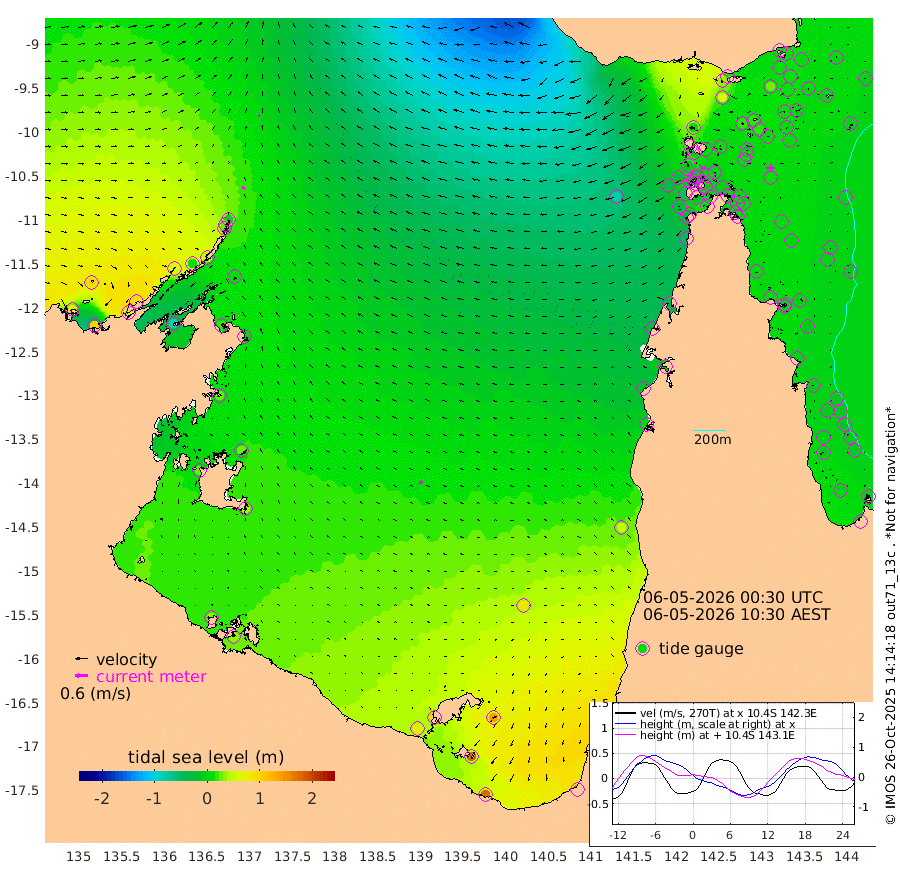 13cm/s -79T +3cm/s rms + 7cm/s -42T. ARA-GOC87 57m 15cm/s -100T +3cm/s rms + 2cm/s -2T. ARA-GOC87 60m 10cm/s -63T +2cm/s rms + 3cm/s 61T. ARA-GOC87 47m 15cm Daru 9cm Bobo Island -5cm Meer Island Barge 4cm Bramble Cay 9cm Unnamed Cay 10cm Pearce Cay 3cm Stephens Island 6cm Merrie England Shoals 12cm Mutacomal Reef -2cm Darnley Island Barge -5cm East Cay 3cm Yorke Island Barge 8cm Rennel Island 3cm Aureed Island 19cm Dungeness Reef 15cm Zagai Island 19cm Yam Island 33cm Dauan Island 18cm Saibai Island 58cm Phipi Reef 28cm Warrior Reef - West 8cm Mabuiag Island Barge 6cm Half Way Island 6cm Coconut Island 8cm Dugong Islet 12cm Poll Island 14cm Kirkcaldie Reef 14cm Suarji Island 6cm Sue Islet -10cm Hawkesbury Island 6cm Alert Patches 2cm Twin Island 5cm Badu Island 9cm St Pauls (Moa Island) -4cm Kubin (Moa Island) 1cm Ince Point -5cm Thursday Island -2cm Nardana Patches -1cm Turtle Head -13cm Round Island -11cm Goods Island -33cm Booby Island -27cm White Rocks Area -82cm Carpentaria 5cm Papou Point -59cm Bampfield Head -31cm Crab Island -36cm Red Wallis Island -15cm Packe Island 3cm Harrington Reef -28cm Herald Camp 4cm Sharp Point 2cm Red Island Point -5cm Possession Island -5cm Alpha Rock 3cm Frederick Point 3cm Wyborn Reef Light 2cm Tetley Island -6cm Triangle Reef 2cm Turtle Head Island -6cm Maclennan Cay -8cm Raine Island 1cm Mcsweeny Reef 0cm Collette Reef -5cm Shadwell Reef 2cm Hannibal Island 0cm Round Point -48cm Vrilya Point -5cm Cape Grenville -2cm Hicks Island -7cm Sir Charles Hardy Island -1cm Harvey Island -8cm Kay Reef -5cm Rocky Island -12cm Chapman Island -14cm Ham Reef -9cm Jubilee Reef -9cm Night Island -15cm Unnamed Reef No. 3 -6cm Morris Island -8cm 1st 3 Mile Opening -10cm Creech Reef -13cm Fife Island -7cm Eden Reef -11cm Stanley Island -7cm Normanby River 80cm Yabooma Island 104cm Hutchison River 86cm Elcho Island 93cm North West Crocodile Island 5cm Cape Wessel 56cm Stevens Island 13cm Guluwuru Island 51cm Hopeful Bay 27cm Auster Point 29cm Two Island Bay 68cm Cadell Strait -89cm Mallison Island 21cm Melville Bay (Gove Harbour) 7cm Truant Island 5cm Cape Arnhem 24cm Cape Grey 29cm Hawk Island 29cm Milner Bay (Groote Eylandt) 40cm Cape Beatrice 37cm West Island 31cm Centre Island 90cm Mornington Island 82cm West Wellesley Islands 142cm Bountiful Island 178cm Albert River Mouth 174cm Sweers Island 175cm Karumba 83cm Nassau River Offshore 47cm Christmas Creek 10cm Archer River -16cm Boyd Point -1cm Weipa (Humbug Point) -26cm Pennefather River -41cm Cullen Point