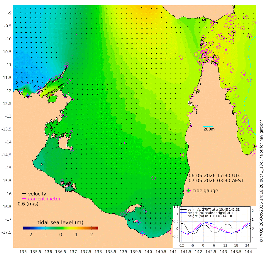 5cm/s 144T +3cm/s rms + 7cm/s -42T. ARA-GOC87 57m 32cm/s 161T +3cm/s rms + 2cm/s -2T. ARA-GOC87 60m 8cm/s -110T +2cm/s rms + 3cm/s 61T. ARA-GOC87 47m 62cm Daru 57cm Bobo Island 45cm Meer Island Barge 50cm Bramble Cay 60cm Unnamed Cay 53cm Pearce Cay 53cm Stephens Island 58cm Merrie England Shoals 66cm Mutacomal Reef 59cm Darnley Island Barge 48cm East Cay 62cm Yorke Island Barge 56cm Rennel Island 60cm Aureed Island 57cm Dungeness Reef 65cm Zagai Island 63cm Yam Island 78cm Dauan Island 85cm Saibai Island 65cm Phipi Reef 74cm Warrior Reef - West 63cm Mabuiag Island Barge 52cm Half Way Island 61cm Coconut Island 58cm Dugong Islet 60cm Poll Island 58cm Kirkcaldie Reef 62cm Suarji Island 69cm Sue Islet 66cm Hawkesbury Island 66cm Alert Patches 65cm Twin Island 58cm Badu Island 64cm St Pauls (Moa Island) 60cm Kubin (Moa Island) 62cm Ince Point 62cm Thursday Island 61cm Nardana Patches 61cm Turtle Head 62cm Round Island 57cm Goods Island 57cm Booby Island 49cm White Rocks Area 65cm Carpentaria 51cm Papou Point 77cm Bampfield Head 45cm Crab Island 61cm Red Wallis Island 69cm Packe Island 57cm Harrington Reef 80cm Herald Camp 19cm Sharp Point 49cm Red Island Point 57cm Possession Island 68cm Alpha Rock 64cm Frederick Point 67cm Wyborn Reef Light 68cm Tetley Island 52cm Triangle Reef 54cm Turtle Head Island 46cm Maclennan Cay 38cm Raine Island 58cm Mcsweeny Reef 59cm Collette Reef 51cm Shadwell Reef 60cm Hannibal Island 54cm Round Point 48cm Vrilya Point 53cm Cape Grenville 47cm Hicks Island 64cm Sir Charles Hardy Island 15cm Harvey Island 52cm Kay Reef 46cm Rocky Island 53cm Chapman Island 49cm Ham Reef 45cm Jubilee Reef 42cm Night Island 49cm Unnamed Reef No. 3 43cm Morris Island 40cm 1st 3 Mile Opening 45cm Creech Reef 47cm Fife Island 46cm Eden Reef 47cm Stanley Island 43cm Normanby River -116cm Yabooma Island -137cm Hutchison River -128cm Elcho Island -131cm North West Crocodile Island -41cm Cape Wessel -90cm Stevens Island -14cm Guluwuru Island -77cm Hopeful Bay -63cm Auster Point -66cm Two Island Bay -84cm Cadell Strait 166cm Mallison Island -23cm Melville Bay (Gove Harbour) -17cm Truant Island -8cm Cape Arnhem -28cm Cape Grey -27cm Hawk Island -52cm Milner Bay (Groote Eylandt) -53cm Cape Beatrice -55cm West Island -53cm Centre Island -44cm Mornington Island -40cm West Wellesley Islands -63cm Bountiful Island -125cm Albert River Mouth -128cm Sweers Island -109cm Karumba -3cm Nassau River Offshore 37cm Christmas Creek 46cm Archer River 56cm Boyd Point 52cm Weipa (Humbug Point) 39cm Pennefather River 59cm Cullen Point