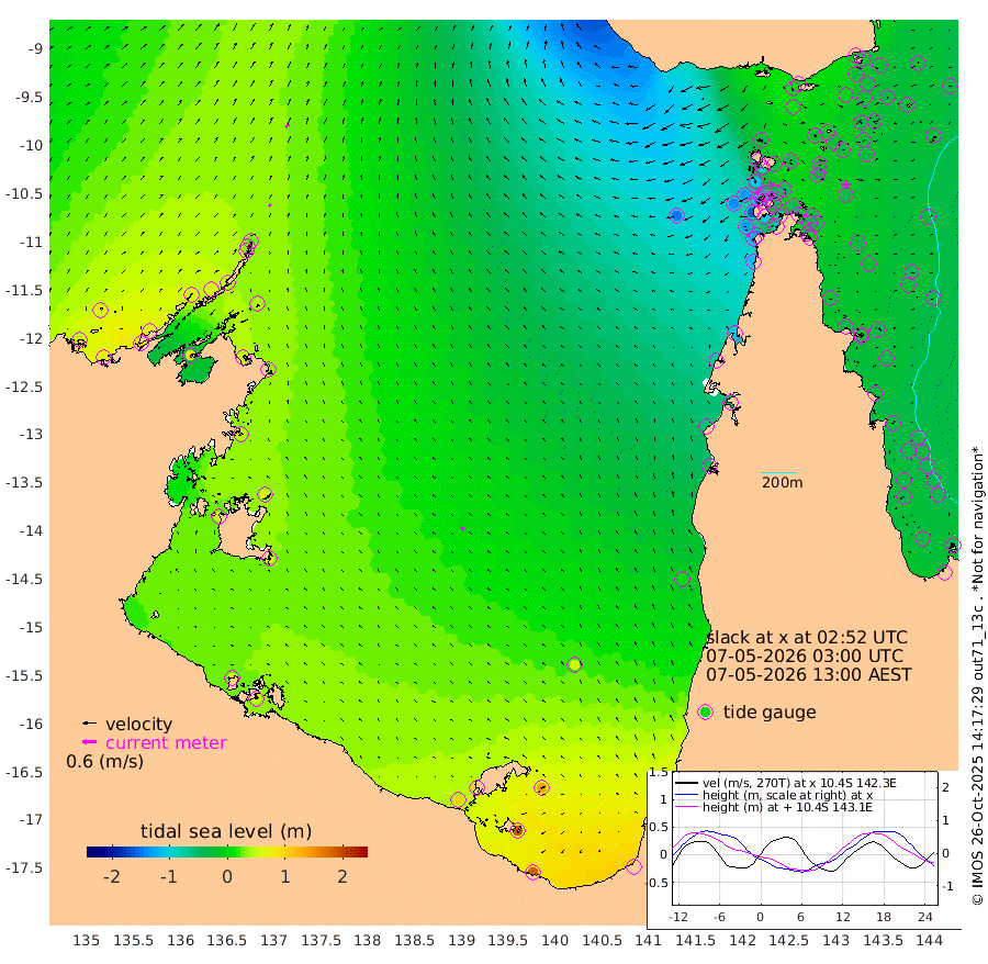 13cm/s 39T +3cm/s rms + 7cm/s -42T. ARA-GOC87 57m 14cm/s -59T +3cm/s rms + 2cm/s -2T. ARA-GOC87 60m 20cm/s 37T +2cm/s rms + 3cm/s 61T. ARA-GOC87 47m -21cm Daru -22cm Bobo Island -30cm Meer Island Barge -27cm Bramble Cay -27cm Unnamed Cay -27cm Pearce Cay -34cm Stephens Island -29cm Merrie England Shoals -25cm Mutacomal Reef -27cm Darnley Island Barge -37cm East Cay -23cm Yorke Island Barge -34cm Rennel Island -27cm Aureed Island -26cm Dungeness Reef -10cm Zagai Island -23cm Yam Island 1cm Dauan Island 2cm Saibai Island 9cm Phipi Reef -5cm Warrior Reef - West -34cm Mabuiag Island Barge -35cm Half Way Island -32cm Coconut Island -35cm Dugong Islet -30cm Poll Island -36cm Kirkcaldie Reef -36cm Suarji Island -22cm Sue Islet -111cm Hawkesbury Island -50cm Alert Patches -50cm Twin Island -82cm Badu Island -42cm St Pauls (Moa Island) -91cm Kubin (Moa Island) -61cm Ince Point -75cm Thursday Island -69cm Nardana Patches -86cm Turtle Head -103cm Round Island -112cm Goods Island -137cm Booby Island -131cm White Rocks Area -148cm Carpentaria -45cm Papou Point -163cm Bampfield Head -117cm Crab Island -135cm Red Wallis Island -112cm Packe Island -44cm Harrington Reef -137cm Herald Camp -3cm Sharp Point -76cm Red Island Point -71cm Possession Island -41cm Alpha Rock -45cm Frederick Point -31cm Wyborn Reef Light -32cm Tetley Island -30cm Triangle Reef -44cm Turtle Head Island -39cm Maclennan Cay -35cm Raine Island -31cm Mcsweeny Reef -27cm Collette Reef -27cm Shadwell Reef -27cm Hannibal Island -35cm Round Point -119cm Vrilya Point -38cm Cape Grenville -37cm Hicks Island -41cm Sir Charles Hardy Island -12cm Harvey Island -38cm Kay Reef -34cm Rocky Island -36cm Chapman Island -37cm Ham Reef -34cm Jubilee Reef -35cm Night Island -40cm Unnamed Reef No. 3 -37cm Morris Island -39cm 1st 3 Mile Opening -39cm Creech Reef -39cm Fife Island -35cm Eden Reef -40cm Stanley Island -40cm Normanby River 46cm Yabooma Island 69cm Hutchison River 60cm Elcho Island 62cm North West Crocodile Island 27cm Cape Wessel 58cm Stevens Island 57cm Guluwuru Island 50cm Hopeful Bay 35cm Auster Point 36cm Two Island Bay 78cm Cadell Strait 87cm Mallison Island 52cm Melville Bay (Gove Harbour) 44cm Truant Island 37cm Cape Arnhem 49cm Cape Grey 53cm Hawk Island 56cm Milner Bay (Groote Eylandt) 58cm Cape Beatrice 54cm West Island 50cm Centre Island 93cm Mornington Island 91cm West Wellesley Islands 130cm Bountiful Island 182cm Albert River Mouth 193cm Sweers Island 165cm Karumba 55cm Nassau River Offshore 5cm Christmas Creek -39cm Archer River -66cm Boyd Point -65cm Weipa (Humbug Point) -72cm Pennefather River -108cm Cullen Point