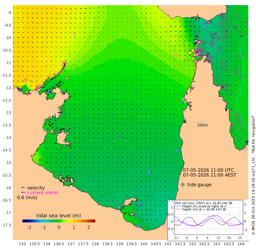 13cm/s 128T +3cm/s rms + 7cm/s -42T. ARA-GOC87 57m 25cm/s 10T +3cm/s rms + 2cm/s -2T. ARA-GOC87 60m 21cm/s 127T +2cm/s rms + 3cm/s 61T. ARA-GOC87 47m -31cm Daru -23cm Bobo Island -12cm Meer Island Barge -19cm Bramble Cay -25cm Unnamed Cay -19cm Pearce Cay -15cm Stephens Island -24cm Merrie England Shoals -32cm Mutacomal Reef -24cm Darnley Island Barge -11cm East Cay -28cm Yorke Island Barge -18cm Rennel Island -24cm Aureed Island -25cm Dungeness Reef -34cm Zagai Island -28cm Yam Island -59cm Dauan Island -62cm Saibai Island -61cm Phipi Reef -51cm Warrior Reef - West -20cm Mabuiag Island Barge -14cm Half Way Island -18cm Coconut Island -19cm Dugong Islet -21cm Poll Island -18cm Kirkcaldie Reef -18cm Suarji Island -33cm Sue Islet 31cm Hawkesbury Island -13cm Alert Patches -9cm Twin Island 21cm Badu Island -14cm St Pauls (Moa Island) 24cm Kubin (Moa Island) -1cm Ince Point 10cm Thursday Island 6cm Nardana Patches 15cm Turtle Head 31cm Round Island 40cm Goods Island 58cm Booby Island 61cm White Rocks Area 67cm Carpentaria 2cm Papou Point 72cm Bampfield Head 52cm Crab Island 53cm Red Wallis Island 27cm Packe Island -10cm Harrington Reef 35cm Herald Camp -14cm Sharp Point 17cm Red Island Point 11cm Possession Island -18cm Alpha Rock -13cm Frederick Point -23cm Wyborn Reef Light -23cm Tetley Island -17cm Triangle Reef -2cm Turtle Head Island -8cm Maclennan Cay -4cm Raine Island -22cm Mcsweeny Reef -26cm Collette Reef -20cm Shadwell Reef -26cm Hannibal Island -17cm Round Point 51cm Vrilya Point -16cm Cape Grenville -10cm Hicks Island -20cm Sir Charles Hardy Island -4cm Harvey Island -15cm Kay Reef -13cm Rocky Island -17cm Chapman Island -12cm Ham Reef -11cm Jubilee Reef -9cm Night Island -11cm Unnamed Reef No. 3 -8cm Morris Island -2cm 1st 3 Mile Opening -8cm Creech Reef -13cm Fife Island -10cm Eden Reef -10cm Stanley Island -7cm Normanby River 102cm Yabooma Island 113cm Hutchison River 104cm Elcho Island 98cm North West Crocodile Island 60cm Cape Wessel 79cm Stevens Island 22cm Guluwuru Island 65cm Hopeful Bay 70cm Auster Point 72cm Two Island Bay 65cm Cadell Strait -133cm Mallison Island 22cm Melville Bay (Gove Harbour) 30cm Truant Island 10cm Cape Arnhem 2cm Cape Grey -12cm Hawk Island -4cm Milner Bay (Groote Eylandt) -15cm Cape Beatrice -27cm West Island -23cm Centre Island -80cm Mornington Island -81cm West Wellesley Islands -105cm Bountiful Island -92cm Albert River Mouth -101cm Sweers Island -99cm Karumba -87cm Nassau River Offshore -70cm Christmas Creek -28cm Archer River -6cm Boyd Point -7cm Weipa (Humbug Point) 17cm Pennefather River 30cm Cullen Point