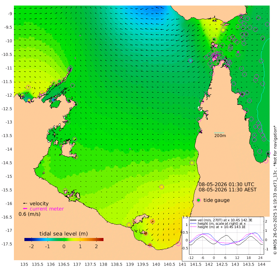14cm/s -79T +3cm/s rms + 7cm/s -42T. ARA-GOC87 57m 16cm/s -98T +3cm/s rms + 2cm/s -2T. ARA-GOC87 60m 11cm/s -60T +2cm/s rms + 3cm/s 61T. ARA-GOC87 47m -17cm Daru -21cm Bobo Island -26cm Meer Island Barge -28cm Bramble Cay -28cm Unnamed Cay -18cm Pearce Cay -28cm Stephens Island -34cm Merrie England Shoals -27cm Mutacomal Reef -27cm Darnley Island Barge -31cm East Cay -22cm Yorke Island Barge -24cm Rennel Island -20cm Aureed Island -4cm Dungeness Reef 2cm Zagai Island 1cm Yam Island 35cm Dauan Island 16cm Saibai Island 57cm Phipi Reef 15cm Warrior Reef - West 3cm Mabuiag Island Barge -23cm Half Way Island -22cm Coconut Island -20cm Dugong Islet -9cm Poll Island -10cm Kirkcaldie Reef 1cm Suarji Island -13cm Sue Islet -13cm Hawkesbury Island -9cm Alert Patches -13cm Twin Island -1cm Badu Island -2cm St Pauls (Moa Island) -9cm Kubin (Moa Island) -9cm Ince Point -12cm Thursday Island -9cm Nardana Patches -8cm Turtle Head -14cm Round Island -16cm Goods Island -32cm Booby Island -33cm White Rocks Area -76cm Carpentaria -8cm Papou Point -57cm Bampfield Head -28cm Crab Island -37cm Red Wallis Island -20cm Packe Island -27cm Harrington Reef -23cm Herald Camp 2cm Sharp Point -5cm Red Island Point -8cm Possession Island -25cm Alpha Rock -19cm Frederick Point -31cm Wyborn Reef Light -30cm Tetley Island -25cm Triangle Reef -27cm Turtle Head Island -27cm Maclennan Cay -27cm Raine Island -29cm Mcsweeny Reef -30cm Collette Reef -27cm Shadwell Reef -31cm Hannibal Island -33cm Round Point -41cm Vrilya Point -34cm Cape Grenville -27cm Hicks Island -34cm Sir Charles Hardy Island -9cm Harvey Island -39cm Kay Reef -27cm Rocky Island -33cm Chapman Island -34cm Ham Reef -30cm Jubilee Reef -27cm Night Island -37cm Unnamed Reef No. 3 -30cm Morris Island -27cm 1st 3 Mile Opening -31cm Creech Reef -36cm Fife Island -31cm Eden Reef -35cm Stanley Island -35cm Normanby River 50cm Yabooma Island 68cm Hutchison River 57cm Elcho Island 65cm North West Crocodile Island -16cm Cape Wessel 25cm Stevens Island -10cm Guluwuru Island 27cm Hopeful Bay 8cm Auster Point 13cm Two Island Bay 43cm Cadell Strait -130cm Mallison Island 2cm Melville Bay (Gove Harbour) -11cm Truant Island -5cm Cape Arnhem 15cm Cape Grey 28cm Hawk Island 29cm Milner Bay (Groote Eylandt) 39cm Cape Beatrice 41cm West Island 40cm Centre Island 95cm Mornington Island 84cm West Wellesley Islands 138cm Bountiful Island 176cm Albert River Mouth 180cm Sweers Island 179cm Karumba 83cm Nassau River Offshore 46cm Christmas Creek 11cm Archer River -13cm Boyd Point 0cm Weipa (Humbug Point) -20cm Pennefather River -33cm Cullen Point