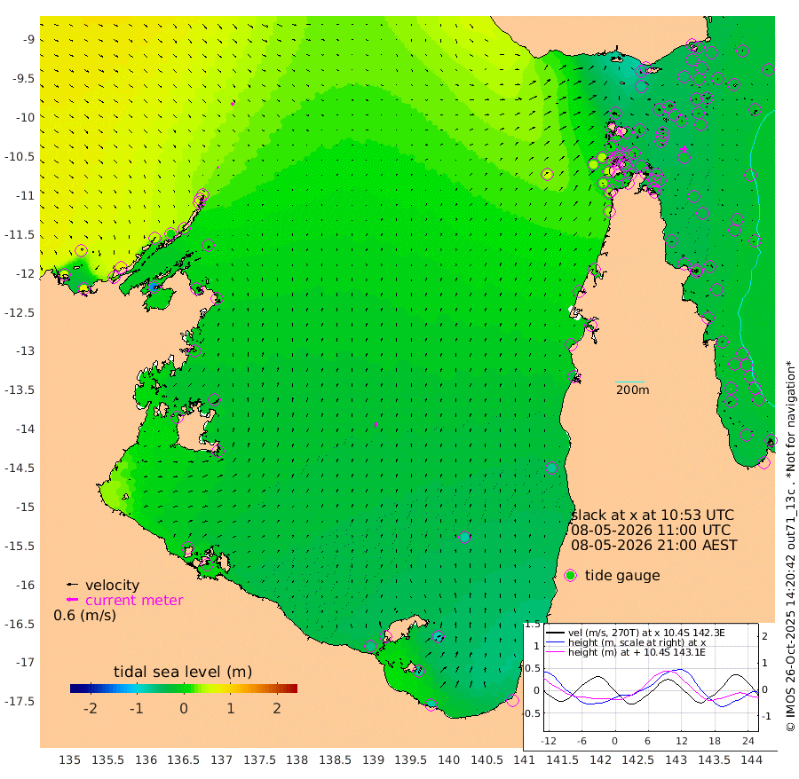 8cm/s 123T +3cm/s rms + 7cm/s -42T. ARA-GOC87 57m 28cm/s 11T +3cm/s rms + 2cm/s -2T. ARA-GOC87 60m 16cm/s 126T +2cm/s rms + 3cm/s 61T. ARA-GOC87 47m -33cm Daru -22cm Bobo Island -22cm Meer Island Barge -27cm Bramble Cay -32cm Unnamed Cay -22cm Pearce Cay -22cm Stephens Island -31cm Merrie England Shoals -34cm Mutacomal Reef -30cm Darnley Island Barge -20cm East Cay -31cm Yorke Island Barge -21cm Rennel Island -23cm Aureed Island -27cm Dungeness Reef -28cm Zagai Island -25cm Yam Island -57cm Dauan Island -53cm Saibai Island -61cm Phipi Reef -45cm Warrior Reef - West -17cm Mabuiag Island Barge -19cm Half Way Island -15cm Coconut Island -22cm Dugong Islet -19cm Poll Island -18cm Kirkcaldie Reef -10cm Suarji Island -29cm Sue Islet 12cm Hawkesbury Island -11cm Alert Patches -6cm Twin Island 8cm Badu Island -11cm St Pauls (Moa Island) 9cm Kubin (Moa Island) -2cm Ince Point 5cm Thursday Island 2cm Nardana Patches 4cm Turtle Head 15cm Round Island 21cm Goods Island 38cm Booby Island 44cm White Rocks Area 58cm Carpentaria 4cm Papou Point 50cm Bampfield Head 35cm Crab Island 36cm Red Wallis Island 11cm Packe Island -9cm Harrington Reef 13cm Herald Camp -10cm Sharp Point 12cm Red Island Point 7cm Possession Island -14cm Alpha Rock -11cm Frederick Point -24cm Wyborn Reef Light -22cm Tetley Island -22cm Triangle Reef -9cm Turtle Head Island -16cm Maclennan Cay -15cm Raine Island -26cm Mcsweeny Reef -31cm Collette Reef -29cm Shadwell Reef -32cm Hannibal Island -25cm Round Point 35cm Vrilya Point -24cm Cape Grenville -20cm Hicks Island -29cm Sir Charles Hardy Island -7cm Harvey Island -24cm Kay Reef -22cm Rocky Island -24cm Chapman Island -20cm Ham Reef -20cm Jubilee Reef -18cm Night Island -18cm Unnamed Reef No. 3 -19cm Morris Island -15cm 1st 3 Mile Opening -18cm Creech Reef -21cm Fife Island -24cm Eden Reef -22cm Stanley Island -19cm Normanby River 63cm Yabooma Island 71cm Hutchison River 68cm Elcho Island 65cm North West Crocodile Island 44cm Cape Wessel 48cm Stevens Island 5cm Guluwuru Island 37cm Hopeful Bay 47cm Auster Point 43cm Two Island Bay 30cm Cadell Strait -140cm Mallison Island 7cm Melville Bay (Gove Harbour) 14cm Truant Island 2cm Cape Arnhem 1cm Cape Grey -11cm Hawk Island 5cm Milner Bay (Groote Eylandt) -5cm Cape Beatrice -7cm West Island -2cm Centre Island -64cm Mornington Island -64cm West Wellesley Islands -87cm Bountiful Island -77cm Albert River Mouth -81cm Sweers Island -85cm Karumba -80cm Nassau River Offshore -70cm Christmas Creek -34cm Archer River -14cm Boyd Point -19cm Weipa (Humbug Point) 5cm Pennefather River 16cm Cullen Point