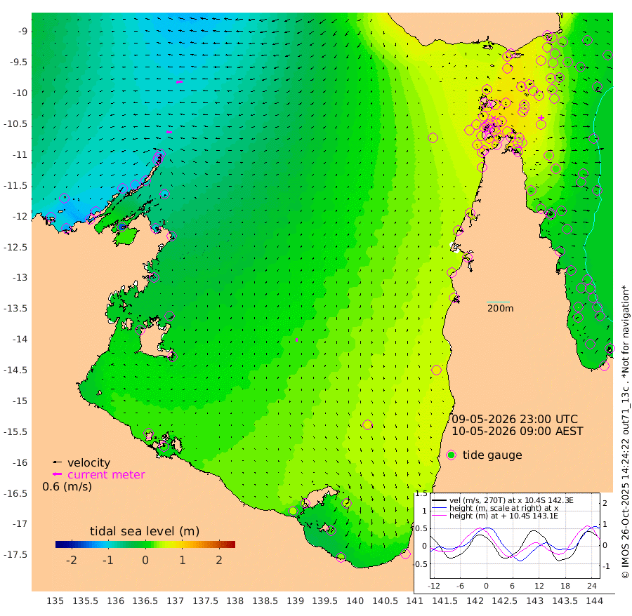 38cm/s -91T +3cm/s rms + 7cm/s -42T. ARA-GOC87 57m 22cm/s -172T +3cm/s rms + 2cm/s -2T. ARA-GOC87 60m 43cm/s -97T +2cm/s rms + 3cm/s 61T. ARA-GOC87 47m 43cm Daru 34cm Bobo Island -4cm Meer Island Barge 10cm Bramble Cay 26cm Unnamed Cay 33cm Pearce Cay 22cm Stephens Island 27cm Merrie England Shoals 48cm Mutacomal Reef 11cm Darnley Island Barge 5cm East Cay 23cm Yorke Island Barge 39cm Rennel Island 37cm Aureed Island 52cm Dungeness Reef 55cm Zagai Island 68cm Yam Island 72cm Dauan Island 60cm Saibai Island 83cm Phipi Reef 72cm Warrior Reef - West 64cm Mabuiag Island Barge 38cm Half Way Island 51cm Coconut Island 47cm Dugong Islet 63cm Poll Island 62cm Kirkcaldie Reef 80cm Suarji Island 50cm Sue Islet 78cm Hawkesbury Island 78cm Alert Patches 77cm Twin Island 71cm Badu Island 80cm St Pauls (Moa Island) 80cm Kubin (Moa Island) 79cm Ince Point 79cm Thursday Island 79cm Nardana Patches 81cm Turtle Head 75cm Round Island 74cm Goods Island 70cm Booby Island 73cm White Rocks Area 48cm Carpentaria 64cm Papou Point 59cm Bampfield Head 59cm Crab Island 81cm Red Wallis Island 96cm Packe Island 56cm Harrington Reef 88cm Herald Camp 27cm Sharp Point 71cm Red Island Point 70cm Possession Island 65cm Alpha Rock 68cm Frederick Point 45cm Wyborn Reef Light 51cm Tetley Island 14cm Triangle Reef 34cm Turtle Head Island 9cm Maclennan Cay -7cm Raine Island 26cm Mcsweeny Reef 18cm Collette Reef 2cm Shadwell Reef 17cm Hannibal Island 16cm Round Point 52cm Vrilya Point 14cm Cape Grenville 7cm Hicks Island 8cm Sir Charles Hardy Island 4cm Harvey Island 3cm Kay Reef -2cm Rocky Island -3cm Chapman Island -6cm Ham Reef -7cm Jubilee Reef 5cm Night Island -1cm Unnamed Reef No. 3 -3cm Morris Island -11cm 1st 3 Mile Opening -4cm Creech Reef 3cm Fife Island -13cm Eden Reef -5cm Stanley Island -5cm Normanby River -104cm Yabooma Island -120cm Hutchison River -105cm Elcho Island -92cm North West Crocodile Island -99cm Cape Wessel -111cm Stevens Island -117cm Guluwuru Island -97cm Hopeful Bay -103cm Auster Point -102cm Two Island Bay -129cm Cadell Strait -162cm Mallison Island -95cm Melville Bay (Gove Harbour) -104cm Truant Island -69cm Cape Arnhem -56cm Cape Grey -29cm Hawk Island -25cm Milner Bay (Groote Eylandt) -5cm Cape Beatrice 23cm West Island 22cm Centre Island 49cm Mornington Island 40cm West Wellesley Islands 47cm Bountiful Island 32cm Albert River Mouth 22cm Sweers Island 54cm Karumba 75cm Nassau River Offshore 75cm Christmas Creek 55cm Archer River 49cm Boyd Point 56cm Weipa (Humbug Point) 41cm Pennefather River 60cm Cullen Point