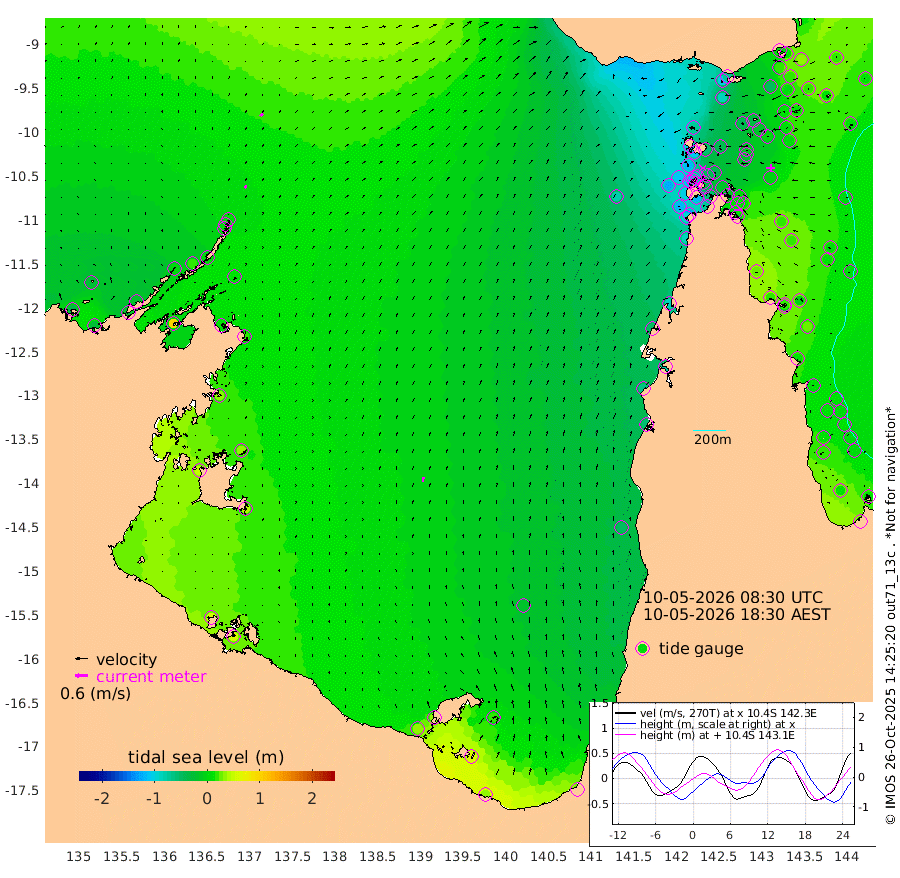 15cm/s 26T +3cm/s rms + 7cm/s -42T. ARA-GOC87 57m 25cm/s 5T +3cm/s rms + 2cm/s -2T. ARA-GOC87 60m 18cm/s 39T +2cm/s rms + 3cm/s 61T. ARA-GOC87 47m 7cm Daru 15cm Bobo Island 9cm Meer Island Barge 20cm Bramble Cay 19cm Unnamed Cay 7cm Pearce Cay 16cm Stephens Island 30cm Merrie England Shoals 15cm Mutacomal Reef 15cm Darnley Island Barge 15cm East Cay 10cm Yorke Island Barge 9cm Rennel Island 6cm Aureed Island -16cm Dungeness Reef -33cm Zagai Island -44cm Yam Island -98cm Dauan Island -72cm Saibai Island -83cm Phipi Reef -51cm Warrior Reef - West -70cm Mabuiag Island Barge 4cm Half Way Island 2cm Coconut Island -5cm Dugong Islet -23cm Poll Island -19cm Kirkcaldie Reef -41cm Suarji Island -14cm Sue Islet -117cm Hawkesbury Island -42cm Alert Patches -42cm Twin Island -110cm Badu Island -55cm St Pauls (Moa Island) -106cm Kubin (Moa Island) -66cm Ince Point -77cm Thursday Island -75cm Nardana Patches -95cm Turtle Head -95cm Round Island -116cm Goods Island -122cm Booby Island -111cm White Rocks Area -81cm Carpentaria -45cm Papou Point -104cm Bampfield Head -97cm Crab Island -118cm Red Wallis Island -114cm Packe Island 8cm Harrington Reef -128cm Herald Camp -10cm Sharp Point -73cm Red Island Point -55cm Possession Island -22cm Alpha Rock -20cm Frederick Point 14cm Wyborn Reef Light 6cm Tetley Island 0cm Triangle Reef 8cm Turtle Head Island 1cm Maclennan Cay 4cm Raine Island 17cm Mcsweeny Reef 21cm Collette Reef 12cm Shadwell Reef 26cm Hannibal Island 22cm Round Point -83cm Vrilya Point 20cm Cape Grenville 11cm Hicks Island 0cm Sir Charles Hardy Island 4cm Harvey Island 24cm Kay Reef 9cm Rocky Island 8cm Chapman Island 9cm Ham Reef 9cm Jubilee Reef 5cm Night Island 10cm Unnamed Reef No. 3 12cm Morris Island 1cm 1st 3 Mile Opening 6cm Creech Reef 17cm Fife Island 10cm Eden Reef 15cm Stanley Island 19cm Normanby River -30cm Yabooma Island -29cm Hutchison River -20cm Elcho Island -23cm North West Crocodile Island 11cm Cape Wessel 3cm Stevens Island 16cm Guluwuru Island 3cm Hopeful Bay 6cm Auster Point -8cm Two Island Bay -16cm Cadell Strait 98cm Mallison Island 14cm Melville Bay (Gove Harbour) 15cm Truant Island 15cm Cape Arnhem 32cm Cape Grey 31cm Hawk Island 49cm Milner Bay (Groote Eylandt) 42cm Cape Beatrice 54cm West Island 55cm Centre Island 32cm Mornington Island 34cm West Wellesley Islands 22cm Bountiful Island 33cm Albert River Mouth 67cm Sweers Island 28cm Karumba -19cm Nassau River Offshore -47cm Christmas Creek -54cm Archer River -65cm Boyd Point -80cm Weipa (Humbug Point) -50cm Pennefather River -89cm Cullen Point