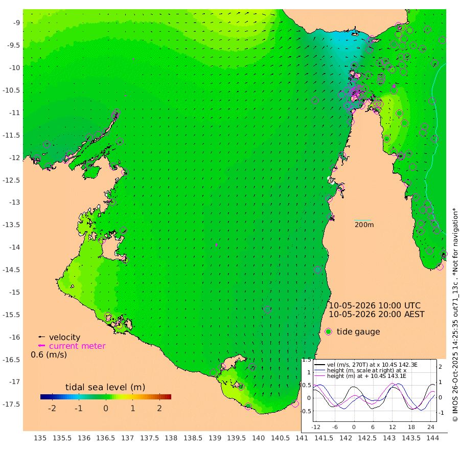9cm/s 10T +3cm/s rms + 7cm/s -42T. ARA-GOC87 57m 28cm/s 11T +3cm/s rms + 2cm/s -2T. ARA-GOC87 60m 9cm/s 51T +2cm/s rms + 3cm/s 61T. ARA-GOC87 47m 11cm Daru 21cm Bobo Island -7cm Meer Island Barge 6cm Bramble Cay 13cm Unnamed Cay 10cm Pearce Cay 10cm Stephens Island 20cm Merrie England Shoals 19cm Mutacomal Reef 4cm Darnley Island Barge 2cm East Cay 7cm Yorke Island Barge 14cm Rennel Island 13cm Aureed Island -1cm Dungeness Reef -3cm Zagai Island -10cm Yam Island -64cm Dauan Island -39cm Saibai Island -52cm Phipi Reef -22cm Warrior Reef - West -25cm Mabuiag Island Barge 9cm Half Way Island 22cm Coconut Island 6cm Dugong Islet 4cm Poll Island 5cm Kirkcaldie Reef 5cm Suarji Island 6cm Sue Islet -60cm Hawkesbury Island -1cm Alert Patches 1cm Twin Island -53cm Badu Island -8cm St Pauls (Moa Island) -51cm Kubin (Moa Island) -17cm Ince Point -25cm Thursday Island -24cm Nardana Patches -44cm Turtle Head -40cm Round Island -59cm Goods Island -59cm Booby Island -45cm White Rocks Area -19cm Carpentaria 1cm Papou Point -36cm Bampfield Head -45cm Crab Island -54cm Red Wallis Island -56cm Packe Island 27cm Harrington Reef -68cm Herald Camp 2cm Sharp Point -23cm Red Island Point -8cm Possession Island 10cm Alpha Rock 12cm Frederick Point 24cm Wyborn Reef Light 22cm Tetley Island -5cm Triangle Reef 20cm Turtle Head Island -6cm Maclennan Cay -10cm Raine Island 13cm Mcsweeny Reef 12cm Collette Reef -4cm Shadwell Reef 13cm Hannibal Island 9cm Round Point -37cm Vrilya Point 7cm Cape Grenville -1cm Hicks Island -11cm Sir Charles Hardy Island 1cm Harvey Island 6cm Kay Reef -7cm Rocky Island -8cm Chapman Island -7cm Ham Reef -8cm Jubilee Reef -8cm Night Island -4cm Unnamed Reef No. 3 -5cm Morris Island -14cm 1st 3 Mile Opening -9cm Creech Reef -3cm Fife Island -14cm Eden Reef -6cm Stanley Island -1cm Normanby River -32cm Yabooma Island -31cm Hutchison River -21cm Elcho Island -23cm North West Crocodile Island 7cm Cape Wessel -9cm Stevens Island -8cm Guluwuru Island -11cm Hopeful Bay -1cm Auster Point -18cm Two Island Bay -38cm Cadell Strait -10cm Mallison Island -6cm Melville Bay (Gove Harbour) -4cm Truant Island -1cm Cape Arnhem 16cm Cape Grey 13cm Hawk Island 34cm Milner Bay (Groote Eylandt) 27cm Cape Beatrice 42cm West Island 46cm Centre Island 0cm Mornington Island 0cm West Wellesley Islands -17cm Bountiful Island -16cm Albert River Mouth 7cm Sweers Island -19cm Karumba -43cm Nassau River Offshore -57cm Christmas Creek -48cm Archer River -46cm Boyd Point -61cm Weipa (Humbug Point) -31cm Pennefather River -48cm Cullen Point