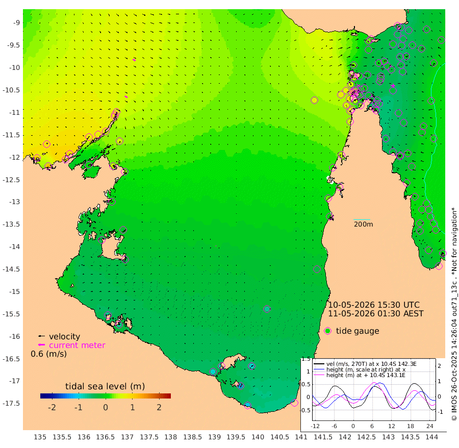 27cm/s 119T +3cm/s rms + 7cm/s -42T. ARA-GOC87 57m 5cm/s 80T +3cm/s rms + 2cm/s -2T. ARA-GOC87 60m 27cm/s 116T +2cm/s rms + 3cm/s 61T. ARA-GOC87 47m -36cm Daru -32cm Bobo Island -2cm Meer Island Barge -22cm Bramble Cay -32cm Unnamed Cay -26cm Pearce Cay -25cm Stephens Island -43cm Merrie England Shoals -45cm Mutacomal Reef -18cm Darnley Island Barge -11cm East Cay -22cm Yorke Island Barge -31cm Rennel Island -26cm Aureed Island -21cm Dungeness Reef -6cm Zagai Island -5cm Yam Island 27cm Dauan Island 20cm Saibai Island 2cm Phipi Reef -10cm Warrior Reef - West 24cm Mabuiag Island Barge -26cm Half Way Island -30cm Coconut Island -25cm Dugong Islet -19cm Poll Island -21cm Kirkcaldie Reef -11cm Suarji Island -17cm Sue Islet 66cm Hawkesbury Island -9cm Alert Patches -6cm Twin Island 62cm Badu Island 0cm St Pauls (Moa Island) 50cm Kubin (Moa Island) 13cm Ince Point 25cm Thursday Island 23cm Nardana Patches 40cm Turtle Head 48cm Round Island 68cm Goods Island 82cm Booby Island 74cm White Rocks Area 73cm Carpentaria 8cm Papou Point 85cm Bampfield Head 64cm Crab Island 70cm Red Wallis Island 46cm Packe Island -36cm Harrington Reef 70cm Herald Camp -10cm Sharp Point 31cm Red Island Point 13cm Possession Island -17cm Alpha Rock -21cm Frederick Point -37cm Wyborn Reef Light -34cm Tetley Island -6cm Triangle Reef -23cm Turtle Head Island -1cm Maclennan Cay 5cm Raine Island -30cm Mcsweeny Reef -29cm Collette Reef -11cm Shadwell Reef -33cm Hannibal Island -27cm Round Point 56cm Vrilya Point -23cm Cape Grenville -10cm Hicks Island 1cm Sir Charles Hardy Island -5cm Harvey Island -17cm Kay Reef -3cm Rocky Island 0cm Chapman Island 2cm Ham Reef 2cm Jubilee Reef -6cm Night Island -2cm Unnamed Reef No. 3 -4cm Morris Island 11cm 1st 3 Mile Opening 2cm Creech Reef -14cm Fife Island 3cm Eden Reef -5cm Stanley Island -8cm Normanby River 105cm Yabooma Island 114cm Hutchison River 94cm Elcho Island 87cm North West Crocodile Island 74cm Cape Wessel 78cm Stevens Island 70cm Guluwuru Island 66cm Hopeful Bay 76cm Auster Point 84cm Two Island Bay 101cm Cadell Strait 5cm Mallison Island 55cm Melville Bay (Gove Harbour) 64cm Truant Island 35cm Cape Arnhem 10cm Cape Grey -16cm Hawk Island -31cm Milner Bay (Groote Eylandt) -44cm Cape Beatrice -74cm West Island -74cm Centre Island -97cm Mornington Island -91cm West Wellesley Islands -93cm Bountiful Island -108cm Albert River Mouth -131cm Sweers Island -119cm Karumba -71cm Nassau River Offshore -35cm Christmas Creek 2cm Archer River 26cm Boyd Point 31cm Weipa (Humbug Point) 20cm Pennefather River 50cm Cullen Point
