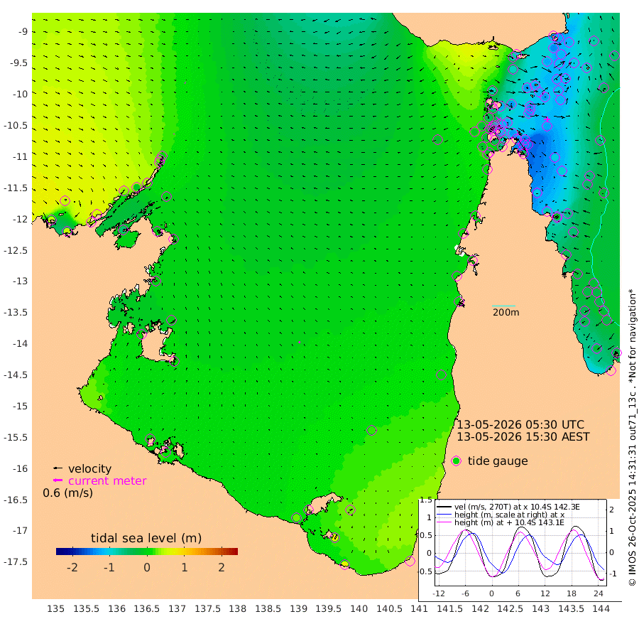 3cm/s 180T +3cm/s rms + 7cm/s -42T. ARA-GOC87 57m 10cm/s -60T +3cm/s rms + 2cm/s -2T. ARA-GOC87 60m 3cm/s 107T +2cm/s rms + 3cm/s 61T. ARA-GOC87 47m -130cm Daru -124cm Bobo Island -46cm Meer Island Barge -80cm Bramble Cay -117cm Unnamed Cay -106cm Pearce Cay -99cm Stephens Island -116cm Merrie England Shoals -140cm Mutacomal Reef -87cm Darnley Island Barge -58cm East Cay -107cm Yorke Island Barge -117cm Rennel Island -111cm Aureed Island -119cm Dungeness Reef -124cm Zagai Island -132cm Yam Island -81cm Dauan Island -96cm Saibai Island -90cm Phipi Reef -123cm Warrior Reef - West -88cm Mabuiag Island Barge -114cm Half Way Island -132cm Coconut Island -125cm Dugong Islet -128cm Poll Island -133cm Kirkcaldie Reef -131cm Suarji Island -129cm Sue Islet -45cm Hawkesbury Island -119cm Alert Patches -126cm Twin Island -50cm Badu Island -125cm St Pauls (Moa Island) -62cm Kubin (Moa Island) -99cm Ince Point -85cm Thursday Island -89cm Nardana Patches -61cm Turtle Head -56cm Round Island -30cm Goods Island -11cm Booby Island -26cm White Rocks Area -18cm Carpentaria -114cm Papou Point -34cm Bampfield Head -3cm Crab Island -20cm Red Wallis Island -50cm Packe Island -142cm Harrington Reef -39cm Herald Camp -40cm Sharp Point -65cm Red Island Point -91cm Possession Island -128cm Alpha Rock -134cm Frederick Point -142cm Wyborn Reef Light -144cm Tetley Island -55cm Triangle Reef -131cm Turtle Head Island -53cm Maclennan Cay -23cm Raine Island -103cm Mcsweeny Reef -92cm Collette Reef -51cm Shadwell Reef -99cm Hannibal Island -82cm Round Point 4cm Vrilya Point -74cm Cape Grenville -62cm Hicks Island -67cm Sir Charles Hardy Island -22cm Harvey Island -60cm Kay Reef -38cm Rocky Island -29cm Chapman Island -30cm Ham Reef -35cm Jubilee Reef -32cm Night Island -31cm Unnamed Reef No. 3 -38cm Morris Island -25cm 1st 3 Mile Opening -32cm Creech Reef -31cm Fife Island -28cm Eden Reef -36cm Stanley Island -44cm Normanby River 51cm Yabooma Island 49cm Hutchison River 55cm Elcho Island 51cm North West Crocodile Island 4cm Cape Wessel 30cm Stevens Island -11cm Guluwuru Island 38cm Hopeful Bay 22cm Auster Point 27cm Two Island Bay 38cm Cadell Strait -56cm Mallison Island 0cm Melville Bay (Gove Harbour) -3cm Truant Island -2cm Cape Arnhem -3cm Cape Grey 6cm Hawk Island 12cm Milner Bay (Groote Eylandt) 14cm Cape Beatrice 9cm West Island 12cm Centre Island 26cm Mornington Island 26cm West Wellesley Islands 28cm Bountiful Island 73cm Albert River Mouth 80cm Sweers Island 66cm Karumba 20cm Nassau River Offshore 6cm Christmas Creek 11cm Archer River 1cm Boyd Point 12cm Weipa (Humbug Point) 13cm Pennefather River 2cm Cullen Point