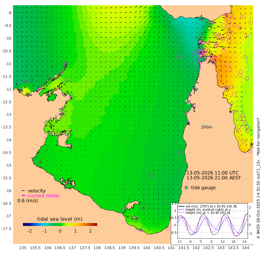 12cm/s 66T +3cm/s rms + 7cm/s -42T. ARA-GOC87 57m 12cm/s 19T +3cm/s rms + 2cm/s -2T. ARA-GOC87 60m 14cm/s 58T +2cm/s rms + 3cm/s 61T. ARA-GOC87 47m 118cm Daru 119cm Bobo Island 60cm Meer Island Barge 90cm Bramble Cay 116cm Unnamed Cay 105cm Pearce Cay 103cm Stephens Island 122cm Merrie England Shoals 125cm Mutacomal Reef 94cm Darnley Island Barge 69cm East Cay 103cm Yorke Island Barge 110cm Rennel Island 105cm Aureed Island 99cm Dungeness Reef 82cm Zagai Island 74cm Yam Island 9cm Dauan Island 20cm Saibai Island 42cm Phipi Reef 70cm Warrior Reef - West 19cm Mabuiag Island Barge 104cm Half Way Island 118cm Coconut Island 103cm Dugong Islet 93cm Poll Island 98cm Kirkcaldie Reef 87cm Suarji Island 92cm Sue Islet -33cm Hawkesbury Island 77cm Alert Patches 77cm Twin Island -21cm Badu Island 68cm St Pauls (Moa Island) -6cm Kubin (Moa Island) 42cm Ince Point 24cm Thursday Island 28cm Nardana Patches 2cm Turtle Head 5cm Round Island -34cm Goods Island -55cm Booby Island -43cm White Rocks Area -39cm Carpentaria 62cm Papou Point -10cm Bampfield Head -44cm Crab Island -53cm Red Wallis Island -19cm Packe Island 126cm Harrington Reef -33cm Herald Camp 22cm Sharp Point 5cm Red Island Point 56cm Possession Island 82cm Alpha Rock 98cm Frederick Point 128cm Wyborn Reef Light 123cm Tetley Island 56cm Triangle Reef 128cm Turtle Head Island 56cm Maclennan Cay 38cm Raine Island 105cm Mcsweeny Reef 99cm Collette Reef 64cm Shadwell Reef 110cm Hannibal Island 94cm Round Point -45cm Vrilya Point 84cm Cape Grenville 72cm Hicks Island 60cm Sir Charles Hardy Island 25cm Harvey Island 72cm Kay Reef 50cm Rocky Island 40cm Chapman Island 39cm Ham Reef 45cm Jubilee Reef 46cm Night Island 41cm Unnamed Reef No. 3 53cm Morris Island 43cm 1st 3 Mile Opening 46cm Creech Reef 50cm Fife Island 49cm Eden Reef 54cm Stanley Island 59cm Normanby River -38cm Yabooma Island -19cm Hutchison River -27cm Elcho Island -34cm North West Crocodile Island 6cm Cape Wessel -3cm Stevens Island 34cm Guluwuru Island -7cm Hopeful Bay 4cm Auster Point -10cm Two Island Bay -15cm Cadell Strait 91cm Mallison Island 26cm Melville Bay (Gove Harbour) 30cm Truant Island 25cm Cape Arnhem 29cm Cape Grey 29cm Hawk Island 21cm Milner Bay (Groote Eylandt) 13cm Cape Beatrice 10cm West Island 16cm Centre Island 9cm Mornington Island 3cm West Wellesley Islands -9cm Bountiful Island -20cm Albert River Mouth 3cm Sweers Island -14cm Karumba -21cm Nassau River Offshore -25cm Christmas Creek -29cm Archer River -32cm Boyd Point -45cm Weipa (Humbug Point) -22cm Pennefather River -49cm Cullen Point