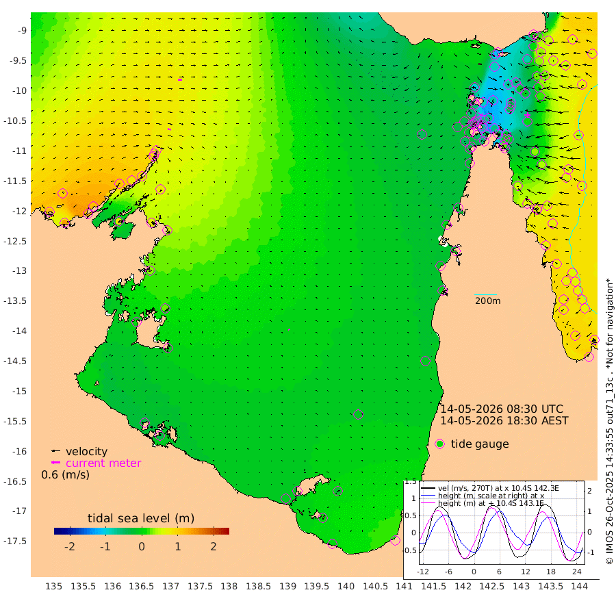 22cm/s 105T +3cm/s rms + 7cm/s -42T. ARA-GOC87 57m 7cm/s -41T +3cm/s rms + 2cm/s -2T. ARA-GOC87 60m 23cm/s 92T +2cm/s rms + 3cm/s 61T. ARA-GOC87 47m 6cm Daru 18cm Bobo Island 68cm Meer Island Barge 63cm Bramble Cay 36cm Unnamed Cay 35cm Pearce Cay 51cm Stephens Island 47cm Merrie England Shoals 4cm Mutacomal Reef 50cm Darnley Island Barge 71cm East Cay 23cm Yorke Island Barge 24cm Rennel Island 14cm Aureed Island -9cm Dungeness Reef -67cm Zagai Island -73cm Yam Island -108cm Dauan Island -118cm Saibai Island -86cm Phipi Reef -76cm Warrior Reef - West -99cm Mabuiag Island Barge 22cm Half Way Island -9cm Coconut Island 1cm Dugong Islet -40cm Poll Island -31cm Kirkcaldie Reef -75cm Suarji Island -48cm Sue Islet -54cm Hawkesbury Island -63cm Alert Patches -66cm Twin Island -64cm Badu Island -84cm St Pauls (Moa Island) -57cm Kubin (Moa Island) -72cm Ince Point -70cm Thursday Island -72cm Nardana Patches -54cm Turtle Head -47cm Round Island -38cm Goods Island -37cm Booby Island -40cm White Rocks Area -46cm Carpentaria -68cm Papou Point -25cm Bampfield Head -25cm Crab Island -47cm Red Wallis Island -50cm Packe Island -1cm Harrington Reef -50cm Herald Camp -37cm Sharp Point -54cm Red Island Point -50cm Possession Island -63cm Alpha Rock -40cm Frederick Point -1cm Wyborn Reef Light -15cm Tetley Island 39cm Triangle Reef 23cm Turtle Head Island 55cm Maclennan Cay 73cm Raine Island 37cm Mcsweeny Reef 44cm Collette Reef 58cm Shadwell Reef 54cm Hannibal Island 67cm Round Point -22cm Vrilya Point 62cm Cape Grenville 67cm Hicks Island 54cm Sir Charles Hardy Island 20cm Harvey Island 72cm Kay Reef 70cm Rocky Island 69cm Chapman Island 67cm Ham Reef 70cm Jubilee Reef 65cm Night Island 68cm Unnamed Reef No. 3 79cm Morris Island 77cm 1st 3 Mile Opening 74cm Creech Reef 82cm Fife Island 97cm Eden Reef 83cm Stanley Island 89cm Normanby River 113cm Yabooma Island 138cm Hutchison River 119cm Elcho Island 104cm North West Crocodile Island 71cm Cape Wessel 107cm Stevens Island 81cm Guluwuru Island 103cm Hopeful Bay 91cm Auster Point 90cm Two Island Bay 124cm Cadell Strait 89cm Mallison Island 76cm Melville Bay (Gove Harbour) 79cm Truant Island 51cm Cape Arnhem 33cm Cape Grey 25cm Hawk Island 4cm Milner Bay (Groote Eylandt) 0cm Cape Beatrice -34cm West Island -32cm Centre Island -9cm Mornington Island -13cm West Wellesley Islands -19cm Bountiful Island 4cm Albert River Mouth 15cm Sweers Island 3cm Karumba -13cm Nassau River Offshore -13cm Christmas Creek -2cm Archer River -13cm Boyd Point -7cm Weipa (Humbug Point) 1cm Pennefather River -30cm Cullen Point