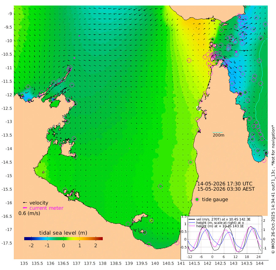 21cm/s -89T +3cm/s rms + 7cm/s -42T. ARA-GOC87 57m 1cm/s -46T +3cm/s rms + 2cm/s -2T. ARA-GOC87 60m 18cm/s -104T +2cm/s rms + 3cm/s 61T. ARA-GOC87 47m -107cm Daru -107cm Bobo Island -51cm Meer Island Barge -83cm Bramble Cay -102cm Unnamed Cay -100cm Pearce Cay -95cm Stephens Island -112cm Merrie England Shoals -113cm Mutacomal Reef -83cm Darnley Island Barge -56cm East Cay -90cm Yorke Island Barge -98cm Rennel Island -90cm Aureed Island -86cm Dungeness Reef -61cm Zagai Island -57cm Yam Island 5cm Dauan Island 6cm Saibai Island -16cm Phipi Reef -56cm Warrior Reef - West 11cm Mabuiag Island Barge -101cm Half Way Island -97cm Coconut Island -96cm Dugong Islet -79cm Poll Island -84cm Kirkcaldie Reef -46cm Suarji Island -69cm Sue Islet 58cm Hawkesbury Island -44cm Alert Patches -52cm Twin Island 47cm Badu Island -45cm St Pauls (Moa Island) 25cm Kubin (Moa Island) -18cm Ince Point 1cm Thursday Island -3cm Nardana Patches 23cm Turtle Head 42cm Round Island 59cm Goods Island 84cm Booby Island 72cm White Rocks Area 77cm Carpentaria -38cm Papou Point 90cm Bampfield Head 64cm Crab Island 71cm Red Wallis Island 34cm Packe Island -110cm Harrington Reef 82cm Herald Camp -16cm Sharp Point 22cm Red Island Point -10cm Possession Island -59cm Alpha Rock -77cm Frederick Point -109cm Wyborn Reef Light -104cm Tetley Island -45cm Triangle Reef -112cm Turtle Head Island -44cm Maclennan Cay -27cm Raine Island -93cm Mcsweeny Reef -84cm Collette Reef -51cm Shadwell Reef -97cm Hannibal Island -84cm Round Point 57cm Vrilya Point -70cm Cape Grenville -59cm Hicks Island -43cm Sir Charles Hardy Island -21cm Harvey Island -56cm Kay Reef -35cm Rocky Island -24cm Chapman Island -23cm Ham Reef -35cm Jubilee Reef -39cm Night Island -28cm Unnamed Reef No. 3 -41cm Morris Island -28cm 1st 3 Mile Opening -34cm Creech Reef -45cm Fife Island -42cm Eden Reef -42cm Stanley Island -51cm Normanby River -5cm Yabooma Island -34cm Hutchison River -23cm Elcho Island -19cm North West Crocodile Island -30cm Cape Wessel -43cm Stevens Island -63cm Guluwuru Island -23cm Hopeful Bay -28cm Auster Point -32cm Two Island Bay -57cm Cadell Strait -139cm Mallison Island -49cm Melville Bay (Gove Harbour) -51cm Truant Island -37cm Cape Arnhem -24cm Cape Grey -26cm Hawk Island -10cm Milner Bay (Groote Eylandt) -12cm Cape Beatrice 2cm West Island 4cm Centre Island -7cm Mornington Island 0cm West Wellesley Islands 26cm Bountiful Island -2cm Albert River Mouth 0cm Sweers Island 3cm Karumba 8cm Nassau River Offshore 22cm Christmas Creek 37cm Archer River 45cm Boyd Point 59cm Weipa (Humbug Point) 25cm Pennefather River 67cm Cullen Point