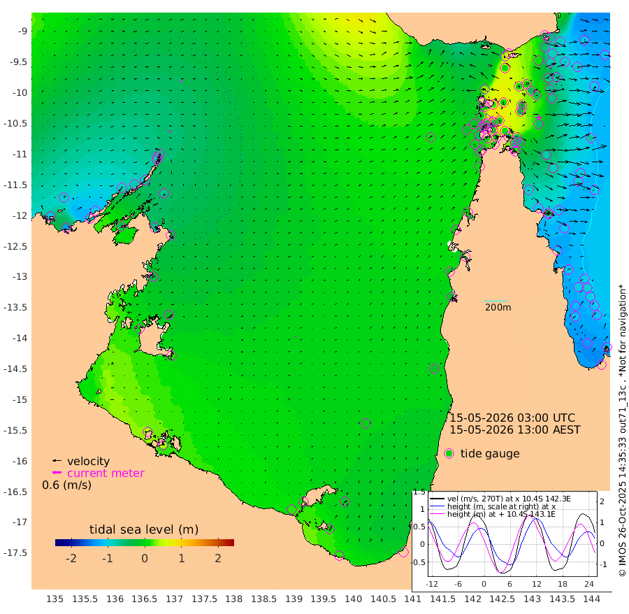 11cm/s -64T +3cm/s rms + 7cm/s -42T. ARA-GOC87 57m 4cm/s 49T +3cm/s rms + 2cm/s -2T. ARA-GOC87 60m 12cm/s -81T +2cm/s rms + 3cm/s 61T. ARA-GOC87 47m -58cm Daru -67cm Bobo Island -102cm Meer Island Barge -102cm Bramble Cay -86cm Unnamed Cay -81cm Pearce Cay -96cm Stephens Island -89cm Merrie England Shoals -56cm Mutacomal Reef -92cm Darnley Island Barge -112cm East Cay -72cm Yorke Island Barge -73cm Rennel Island -64cm Aureed Island -48cm Dungeness Reef 7cm Zagai Island 5cm Yam Island 41cm Dauan Island 48cm Saibai Island 14cm Phipi Reef 10cm Warrior Reef - West 37cm Mabuiag Island Barge -66cm Half Way Island -44cm Coconut Island -54cm Dugong Islet -15cm Poll Island -28cm Kirkcaldie Reef 2cm Suarji Island -10cm Sue Islet -12cm Hawkesbury Island 2cm Alert Patches 5cm Twin Island 2cm Badu Island 21cm St Pauls (Moa Island) -6cm Kubin (Moa Island) 12cm Ince Point 11cm Thursday Island 12cm Nardana Patches -7cm Turtle Head -24cm Round Island -21cm Goods Island -16cm Booby Island -17cm White Rocks Area 8cm Carpentaria 10cm Papou Point -54cm Bampfield Head -8cm Crab Island -3cm Red Wallis Island -8cm Packe Island -54cm Harrington Reef -34cm Herald Camp 22cm Sharp Point -5cm Red Island Point -15cm Possession Island 8cm Alpha Rock -19cm Frederick Point -51cm Wyborn Reef Light -38cm Tetley Island -74cm Triangle Reef -71cm Turtle Head Island -95cm Maclennan Cay -102cm Raine Island -80cm Mcsweeny Reef -85cm Collette Reef -92cm Shadwell Reef -97cm Hannibal Island -107cm Round Point 5cm Vrilya Point -101cm Cape Grenville -108cm Hicks Island -109cm Sir Charles Hardy Island -32cm Harvey Island -110cm Kay Reef -108cm Rocky Island -104cm Chapman Island -101cm Ham Reef -103cm Jubilee Reef -92cm Night Island -100cm Unnamed Reef No. 3 -113cm Morris Island -110cm 1st 3 Mile Opening -107cm Creech Reef -107cm Fife Island -130cm Eden Reef -115cm Stanley Island -125cm Normanby River -111cm Yabooma Island -131cm Hutchison River -102cm Elcho Island -90cm North West Crocodile Island -66cm Cape Wessel -87cm Stevens Island -77cm Guluwuru Island -90cm Hopeful Bay -81cm Auster Point -77cm Two Island Bay -102cm Cadell Strait -52cm Mallison Island -71cm Melville Bay (Gove Harbour) -73cm Truant Island -45cm Cape Arnhem -32cm Cape Grey -17cm Hawk Island 12cm Milner Bay (Groote Eylandt) 17cm Cape Beatrice 49cm West Island 48cm Centre Island 15cm Mornington Island 18cm West Wellesley Islands -9cm Bountiful Island 18cm Albert River Mouth 12cm Sweers Island 9cm Karumba 0cm Nassau River Offshore -17cm Christmas Creek -24cm Archer River -18cm Boyd Point -31cm Weipa (Humbug Point) -1cm Pennefather River -3cm Cullen Point