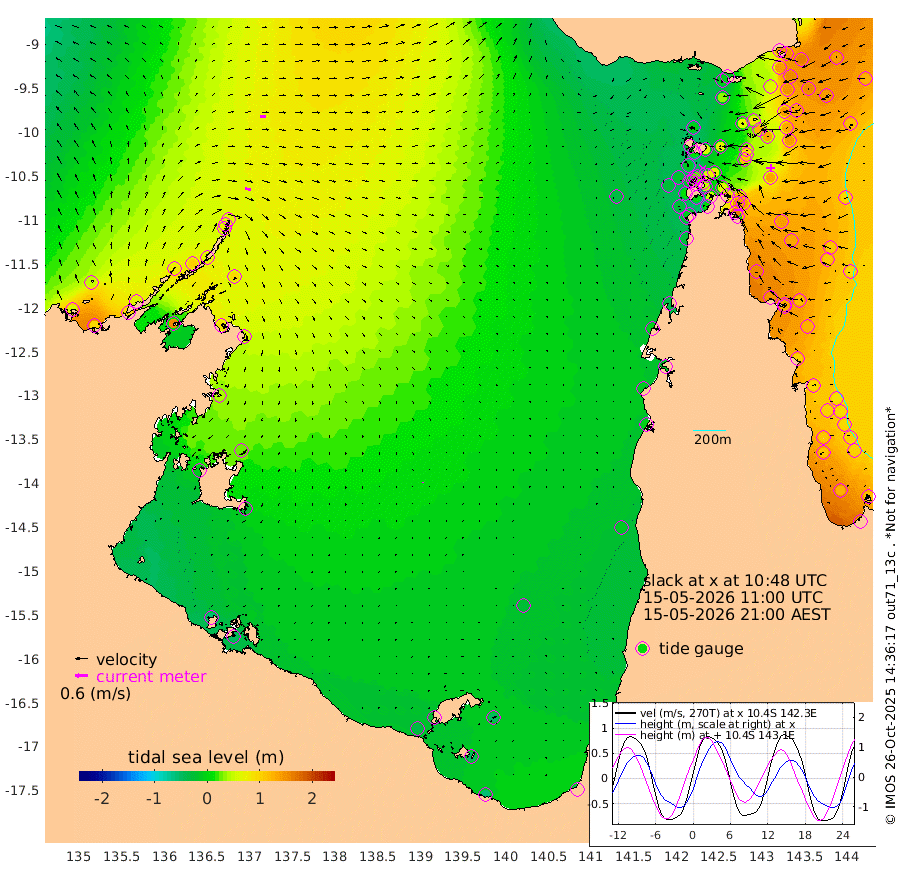30cm/s 104T +3cm/s rms + 7cm/s -42T. ARA-GOC87 57m 3cm/s 152T +3cm/s rms + 2cm/s -2T. ARA-GOC87 60m 27cm/s 92T +2cm/s rms + 3cm/s 61T. ARA-GOC87 47m 141cm Daru 147cm Bobo Island 115cm Meer Island Barge 140cm Bramble Cay 151cm Unnamed Cay 148cm Pearce Cay 150cm Stephens Island 158cm Merrie England Shoals 142cm Mutacomal Reef 139cm Darnley Island Barge 124cm East Cay 135cm Yorke Island Barge 142cm Rennel Island 133cm Aureed Island 121cm Dungeness Reef 73cm Zagai Island 67cm Yam Island -1cm Dauan Island -8cm Saibai Island 34cm Phipi Reef 65cm Warrior Reef - West -5cm Mabuiag Island Barge 138cm Half Way Island 131cm Coconut Island 129cm Dugong Islet 97cm Poll Island 107cm Kirkcaldie Reef 70cm Suarji Island 85cm Sue Islet -12cm Hawkesbury Island 66cm Alert Patches 69cm Twin Island -7cm Badu Island 54cm St Pauls (Moa Island) 12cm Kubin (Moa Island) 37cm Ince Point 23cm Thursday Island 26cm Nardana Patches 17cm Turtle Head 15cm Round Island -3cm Goods Island -25cm Booby Island -17cm White Rocks Area -33cm Carpentaria 52cm Papou Point 10cm Bampfield Head -19cm Crab Island -27cm Red Wallis Island 6cm Packe Island 144cm Harrington Reef -12cm Herald Camp 7cm Sharp Point 10cm Red Island Point 52cm Possession Island 67cm Alpha Rock 100cm Frederick Point 141cm Wyborn Reef Light 130cm Tetley Island 95cm Triangle Reef 159cm Turtle Head Island 105cm Maclennan Cay 94cm Raine Island 140cm Mcsweeny Reef 135cm Collette Reef 109cm Shadwell Reef 152cm Hannibal Island 145cm Round Point -24cm Vrilya Point 130cm Cape Grenville 125cm Hicks Island 114cm Sir Charles Hardy Island 40cm Harvey Island 122cm Kay Reef 103cm Rocky Island 93cm Chapman Island 89cm Ham Reef 100cm Jubilee Reef 97cm Night Island 93cm Unnamed Reef No. 3 111cm Morris Island 103cm 1st 3 Mile Opening 104cm Creech Reef 108cm Fife Island 122cm Eden Reef 113cm Stanley Island 123cm Normanby River 56cm Yabooma Island 95cm Hutchison River 66cm Elcho Island 51cm North West Crocodile Island 63cm Cape Wessel 76cm Stevens Island 104cm Guluwuru Island 63cm Hopeful Bay 70cm Auster Point 64cm Two Island Bay 97cm Cadell Strait 150cm Mallison Island 85cm Melville Bay (Gove Harbour) 92cm Truant Island 63cm Cape Arnhem 39cm Cape Grey 28cm Hawk Island -10cm Milner Bay (Groote Eylandt) -16cm Cape Beatrice -53cm West Island -48cm Centre Island -26cm Mornington Island -34cm West Wellesley Islands -49cm Bountiful Island -53cm Albert River Mouth -51cm Sweers Island -50cm Karumba -26cm Nassau River Offshore -12cm Christmas Creek -7cm Archer River -9cm Boyd Point -14cm Weipa (Humbug Point) -2cm Pennefather River -30cm Cullen Point