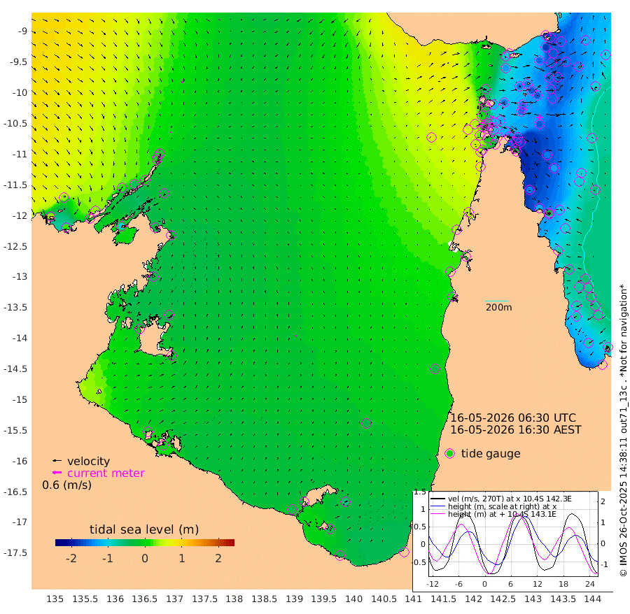 7cm/s -155T +3cm/s rms + 7cm/s -42T. ARA-GOC87 57m 14cm/s 3T +3cm/s rms + 2cm/s -2T. ARA-GOC87 60m 11cm/s 178T +2cm/s rms + 3cm/s 61T. ARA-GOC87 47m -173cm Daru -168cm Bobo Island -91cm Meer Island Barge -126cm Bramble Cay -162cm Unnamed Cay -154cm Pearce Cay -147cm Stephens Island -157cm Merrie England Shoals -175cm Mutacomal Reef -138cm Darnley Island Barge -100cm East Cay -153cm Yorke Island Barge -156cm Rennel Island -156cm Aureed Island -161cm Dungeness Reef -148cm Zagai Island -148cm Yam Island -101cm Dauan Island -100cm Saibai Island -132cm Phipi Reef -154cm Warrior Reef - West -67cm Mabuiag Island Barge -153cm Half Way Island -161cm Coconut Island -162cm Dugong Islet -150cm Poll Island -155cm Kirkcaldie Reef -146cm Suarji Island -148cm Sue Islet 5cm Hawkesbury Island -119cm Alert Patches -125cm Twin Island -8cm Badu Island -125cm St Pauls (Moa Island) -35cm Kubin (Moa Island) -85cm Ince Point -61cm Thursday Island -68cm Nardana Patches -37cm Turtle Head -28cm Round Island 14cm Goods Island 54cm Booby Island 39cm White Rocks Area 68cm Carpentaria -107cm Papou Point 24cm Bampfield Head 56cm Crab Island 48cm Red Wallis Island -14cm Packe Island -173cm Harrington Reef -2cm Herald Camp -40cm Sharp Point -31cm Red Island Point -86cm Possession Island -124cm Alpha Rock -146cm Frederick Point -170cm Wyborn Reef Light -167cm Tetley Island -87cm Triangle Reef -165cm Turtle Head Island -90cm Maclennan Cay -56cm Raine Island -144cm Mcsweeny Reef -134cm Collette Reef -90cm Shadwell Reef -147cm Hannibal Island -125cm Round Point 71cm Vrilya Point -114cm Cape Grenville -106cm Hicks Island -109cm Sir Charles Hardy Island -36cm Harvey Island -95cm Kay Reef -77cm Rocky Island -62cm Chapman Island -59cm Ham Reef -69cm Jubilee Reef -68cm Night Island -59cm Unnamed Reef No. 3 -77cm Morris Island -65cm 1st 3 Mile Opening -70cm Creech Reef -69cm Fife Island -77cm Eden Reef -76cm Stanley Island -86cm Normanby River 34cm Yabooma Island 16cm Hutchison River 36cm Elcho Island 36cm North West Crocodile Island 0cm Cape Wessel 15cm Stevens Island -49cm Guluwuru Island 19cm Hopeful Bay 8cm Auster Point 9cm Two Island Bay -3cm Cadell Strait -105cm Mallison Island -36cm Melville Bay (Gove Harbour) -34cm Truant Island -30cm Cape Arnhem -30cm Cape Grey -29cm Hawk Island -8cm Milner Bay (Groote Eylandt) -9cm Cape Beatrice -5cm West Island -3cm Centre Island -45cm Mornington Island -40cm West Wellesley Islands -67cm Bountiful Island -35cm Albert River Mouth -38cm Sweers Island -43cm Karumba -42cm Nassau River Offshore -36cm Christmas Creek 7cm Archer River 15cm Boyd Point 19cm Weipa (Humbug Point) 44cm Pennefather River 50cm Cullen Point