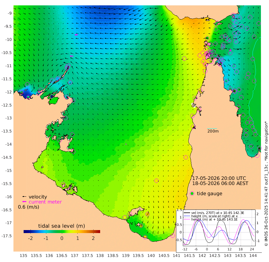 49cm/s -86T +3cm/s rms + 7cm/s -42T. ARA-GOC87 57m 12cm/s -129T +3cm/s rms + 2cm/s -2T. ARA-GOC87 60m 47cm/s -95T +2cm/s rms + 3cm/s 61T. ARA-GOC87 47m -82cm Daru -91cm Bobo Island -39cm Meer Island Barge -58cm Bramble Cay -75cm Unnamed Cay -83cm Pearce Cay -72cm Stephens Island -77cm Merrie England Shoals -82cm Mutacomal Reef -69cm Darnley Island Barge -36cm East Cay -78cm Yorke Island Barge -73cm Rennel Island -77cm Aureed Island -67cm Dungeness Reef -63cm Zagai Island -50cm Yam Island -1cm Dauan Island -9cm Saibai Island 2cm Phipi Reef -48cm Warrior Reef - West 5cm Mabuiag Island Barge -80cm Half Way Island -79cm Coconut Island -77cm Dugong Islet -66cm Poll Island -64cm Kirkcaldie Reef -36cm Suarji Island -65cm Sue Islet 64cm Hawkesbury Island -30cm Alert Patches -43cm Twin Island 51cm Badu Island -40cm St Pauls (Moa Island) 33cm Kubin (Moa Island) -9cm Ince Point 8cm Thursday Island 4cm Nardana Patches 38cm Turtle Head 54cm Round Island 70cm Goods Island 89cm Booby Island 81cm White Rocks Area 60cm Carpentaria -39cm Papou Point 88cm Bampfield Head 72cm Crab Island 80cm Red Wallis Island 55cm Packe Island -87cm Harrington Reef 95cm Herald Camp -14cm Sharp Point 32cm Red Island Point -2cm Possession Island -49cm Alpha Rock -62cm Frederick Point -88cm Wyborn Reef Light -85cm Tetley Island -33cm Triangle Reef -99cm Turtle Head Island -30cm Maclennan Cay -12cm Raine Island -70cm Mcsweeny Reef -61cm Collette Reef -33cm Shadwell Reef -70cm Hannibal Island -56cm Round Point 60cm Vrilya Point -43cm Cape Grenville -38cm Hicks Island -27cm Sir Charles Hardy Island -14cm Harvey Island -31cm Kay Reef -17cm Rocky Island -8cm Chapman Island -11cm Ham Reef -21cm Jubilee Reef -20cm Night Island -12cm Unnamed Reef No. 3 -21cm Morris Island -15cm 1st 3 Mile Opening -19cm Creech Reef -21cm Fife Island -24cm Eden Reef -21cm Stanley Island -29cm Normanby River -38cm Yabooma Island -70cm Hutchison River -51cm Elcho Island -43cm North West Crocodile Island -89cm Cape Wessel -81cm Stevens Island -127cm Guluwuru Island -53cm Hopeful Bay -78cm Auster Point -85cm Two Island Bay -117cm Cadell Strait -215cm Mallison Island -96cm Melville Bay (Gove Harbour) -108cm Truant Island -74cm Cape Arnhem -45cm Cape Grey -26cm Hawk Island -3cm Milner Bay (Groote Eylandt) 10cm Cape Beatrice 40cm West Island 41cm Centre Island 70cm Mornington Island 69cm West Wellesley Islands 114cm Bountiful Island 101cm Albert River Mouth 101cm Sweers Island 115cm Karumba 89cm Nassau River Offshore 85cm Christmas Creek 74cm Archer River 62cm Boyd Point 87cm Weipa (Humbug Point) 40cm Pennefather River 75cm Cullen Point