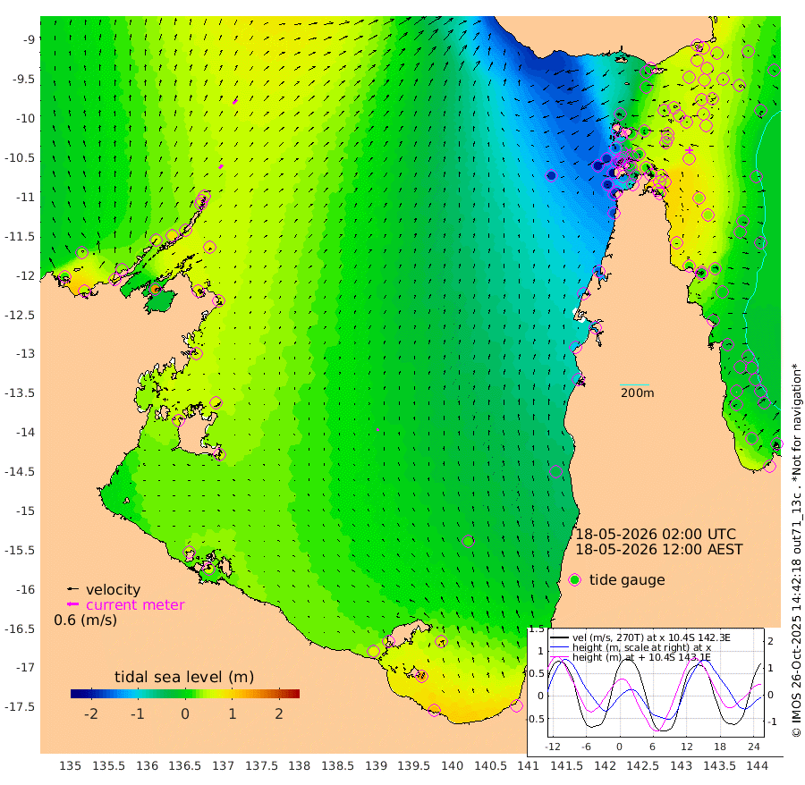 24cm/s 48T +3cm/s rms + 7cm/s -42T. ARA-GOC87 57m 12cm/s -21T +3cm/s rms + 2cm/s -2T. ARA-GOC87 60m 31cm/s 42T +2cm/s rms + 3cm/s 61T. ARA-GOC87 47m 56cm Daru 61cm Bobo Island 8cm Meer Island Barge 28cm Bramble Cay 46cm Unnamed Cay 48cm Pearce Cay 39cm Stephens Island 44cm Merrie England Shoals 55cm Mutacomal Reef 38cm Darnley Island Barge 5cm East Cay 50cm Yorke Island Barge 40cm Rennel Island 50cm Aureed Island 41cm Dungeness Reef 43cm Zagai Island 32cm Yam Island -7cm Dauan Island 3cm Saibai Island 3cm Phipi Reef 39cm Warrior Reef - West -38cm Mabuiag Island Barge 45cm Half Way Island 40cm Coconut Island 47cm Dugong Islet 37cm Poll Island 31cm Kirkcaldie Reef 14cm Suarji Island 40cm Sue Islet -155cm Hawkesbury Island -15cm Alert Patches -1cm Twin Island -136cm Badu Island 3cm St Pauls (Moa Island) -105cm Kubin (Moa Island) -42cm Ince Point -70cm Thursday Island -62cm Nardana Patches -108cm Turtle Head -127cm Round Island -165cm Goods Island -203cm Booby Island -186cm White Rocks Area -183cm Carpentaria -3cm Papou Point -213cm Bampfield Head -178cm Crab Island -188cm Red Wallis Island -137cm Packe Island 49cm Harrington Reef -174cm Herald Camp 13cm Sharp Point -95cm Red Island Point -50cm Possession Island 15cm Alpha Rock 22cm Frederick Point 51cm Wyborn Reef Light 48cm Tetley Island 4cm Triangle Reef 43cm Turtle Head Island -1cm Maclennan Cay -23cm Raine Island 37cm Mcsweeny Reef 31cm Collette Reef 3cm Shadwell Reef 38cm Hannibal Island 21cm Round Point -172cm Vrilya Point 13cm Cape Grenville 8cm Hicks Island -1cm Sir Charles Hardy Island 5cm Harvey Island 0cm Kay Reef -10cm Rocky Island -22cm Chapman Island -20cm Ham Reef -12cm Jubilee Reef -9cm Night Island -23cm Unnamed Reef No. 3 -11cm Morris Island -23cm 1st 3 Mile Opening -16cm Creech Reef -10cm Fife Island -12cm Eden Reef -13cm Stanley Island -1cm Normanby River 21cm Yabooma Island 41cm Hutchison River 32cm Elcho Island 35cm North West Crocodile Island 51cm Cape Wessel 53cm Stevens Island 85cm Guluwuru Island 38cm Hopeful Bay 44cm Auster Point 55cm Two Island Bay 80cm Cadell Strait 145cm Mallison Island 71cm Melville Bay (Gove Harbour) 69cm Truant Island 55cm Cape Arnhem 58cm Cape Grey 61cm Hawk Island 64cm Milner Bay (Groote Eylandt) 60cm Cape Beatrice 62cm West Island 56cm Centre Island 68cm Mornington Island 67cm West Wellesley Islands 84cm Bountiful Island 114cm Albert River Mouth 136cm Sweers Island 100cm Karumba 16cm Nassau River Offshore -37cm Christmas Creek -94cm Archer River -109cm Boyd Point -125cm Weipa (Humbug Point) -117cm Pennefather River -156cm Cullen Point