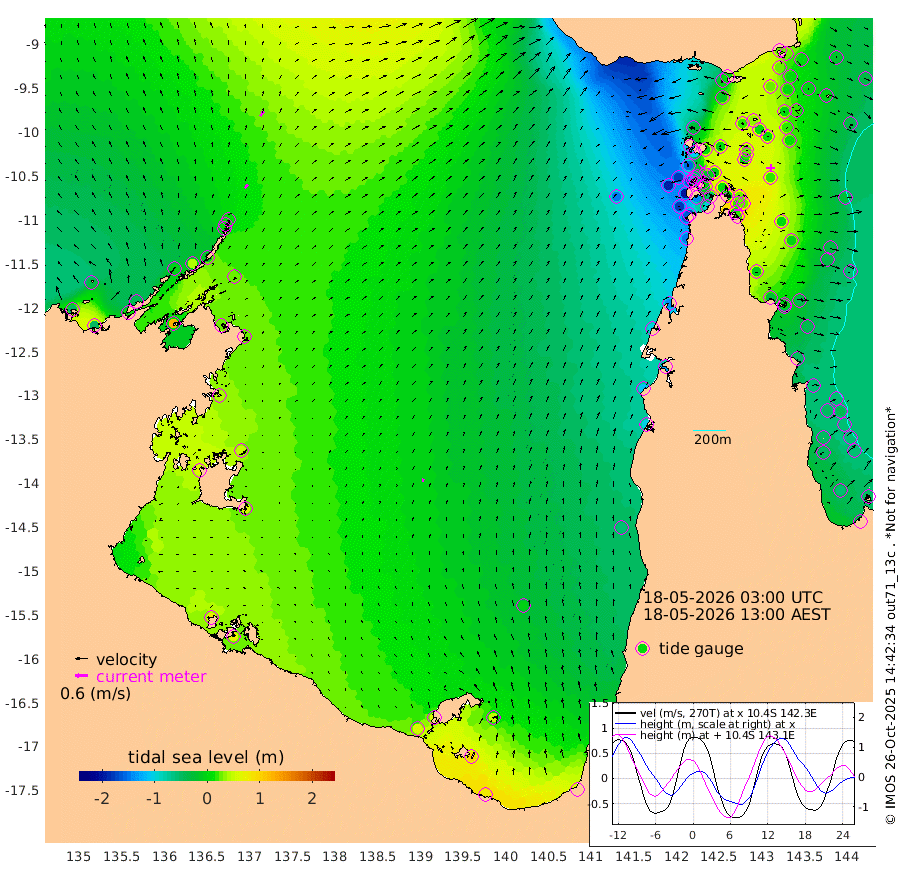 23cm/s 38T +3cm/s rms + 7cm/s -42T. ARA-GOC87 57m 15cm/s 4T +3cm/s rms + 2cm/s -2T. ARA-GOC87 60m 28cm/s 34T +2cm/s rms + 3cm/s 61T. ARA-GOC87 47m 23cm Daru 23cm Bobo Island -30cm Meer Island Barge -16cm Bramble Cay 7cm Unnamed Cay 6cm Pearce Cay -3cm Stephens Island 5cm Merrie England Shoals 23cm Mutacomal Reef 0cm Darnley Island Barge -37cm East Cay 16cm Yorke Island Barge 5cm Rennel Island 16cm Aureed Island 11cm Dungeness Reef 32cm Zagai Island 20cm Yam Island -7cm Dauan Island 10cm Saibai Island -10cm Phipi Reef 24cm Warrior Reef - West -26cm Mabuiag Island Barge 12cm Half Way Island 13cm Coconut Island 17cm Dugong Islet 19cm Poll Island 12cm Kirkcaldie Reef 4cm Suarji Island 29cm Sue Islet -150cm Hawkesbury Island -18cm Alert Patches -6cm Twin Island -131cm Badu Island 2cm St Pauls (Moa Island) -105cm Kubin (Moa Island) -40cm Ince Point -65cm Thursday Island -58cm Nardana Patches -108cm Turtle Head -126cm Round Island -164cm Goods Island -190cm Booby Island -178cm White Rocks Area -149cm Carpentaria -6cm Papou Point -202cm Bampfield Head -163cm Crab Island -175cm Red Wallis Island -137cm Packe Island 20cm Harrington Reef -171cm Herald Camp 18cm Sharp Point -94cm Red Island Point -53cm Possession Island 13cm Alpha Rock 6cm Frederick Point 23cm Wyborn Reef Light 25cm Tetley Island -27cm Triangle Reef 12cm Turtle Head Island -37cm Maclennan Cay -58cm Raine Island 2cm Mcsweeny Reef -4cm Collette Reef -30cm Shadwell Reef -3cm Hannibal Island -23cm Round Point -148cm Vrilya Point -26cm Cape Grenville -33cm Hicks Island -42cm Sir Charles Hardy Island -7cm Harvey Island -40cm Kay Reef -49cm Rocky Island -59cm Chapman Island -53cm Ham Reef -47cm Jubilee Reef -42cm Night Island -56cm Unnamed Reef No. 3 -51cm Morris Island -59cm 1st 3 Mile Opening -53cm Creech Reef -47cm Fife Island -59cm Eden Reef -51cm Stanley Island -46cm Normanby River -48cm Yabooma Island -46cm Hutchison River -38cm Elcho Island -32cm North West Crocodile Island 13cm Cape Wessel -5cm Stevens Island 41cm Guluwuru Island -17cm Hopeful Bay -2cm Auster Point 8cm Two Island Bay 9cm Cadell Strait 127cm Mallison Island 29cm Melville Bay (Gove Harbour) 28cm Truant Island 29cm Cape Arnhem 40cm Cape Grey 45cm Hawk Island 63cm Milner Bay (Groote Eylandt) 58cm Cape Beatrice 77cm West Island 71cm Centre Island 54cm Mornington Island 57cm West Wellesley Islands 51cm Bountiful Island 78cm Albert River Mouth 103cm Sweers Island 63cm Karumba -5cm Nassau River Offshore -54cm Christmas Creek -99cm Archer River -106cm Boyd Point -130cm Weipa (Humbug Point) -103cm Pennefather River -139cm Cullen Point