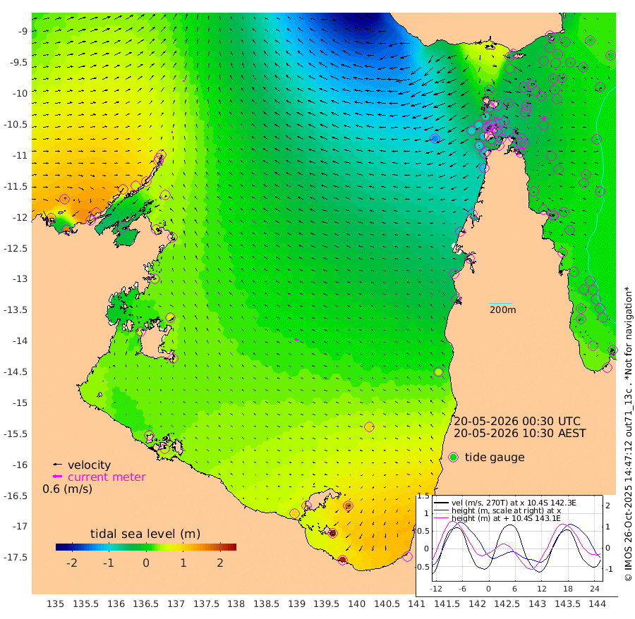 9cm/s -50T +3cm/s rms + 7cm/s -42T. ARA-GOC87 57m 21cm/s -79T +3cm/s rms + 2cm/s -2T. ARA-GOC87 60m 10cm/s 3T +2cm/s rms + 3cm/s 61T. ARA-GOC87 47m -18cm Daru -10cm Bobo Island 3cm Meer Island Barge 4cm Bramble Cay -12cm Unnamed Cay -1cm Pearce Cay -7cm Stephens Island -13cm Merrie England Shoals -20cm Mutacomal Reef -8cm Darnley Island Barge 5cm East Cay -16cm Yorke Island Barge -16cm Rennel Island -9cm Aureed Island -16cm Dungeness Reef -29cm Zagai Island -35cm Yam Island -23cm Dauan Island -37cm Saibai Island 3cm Phipi Reef -19cm Warrior Reef - West -57cm Mabuiag Island Barge -21cm Half Way Island -27cm Coconut Island -27cm Dugong Islet -31cm Poll Island -39cm Kirkcaldie Reef -34cm Suarji Island -44cm Sue Islet -83cm Hawkesbury Island -57cm Alert Patches -55cm Twin Island -67cm Badu Island -56cm St Pauls (Moa Island) -65cm Kubin (Moa Island) -62cm Ince Point -70cm Thursday Island -66cm Nardana Patches -63cm Turtle Head -68cm Round Island -72cm Goods Island -97cm Booby Island -85cm White Rocks Area -136cm Carpentaria -54cm Papou Point -112cm Bampfield Head -90cm Crab Island -94cm Red Wallis Island -67cm Packe Island -33cm Harrington Reef -83cm Herald Camp -18cm Sharp Point -62cm Red Island Point -57cm Possession Island -56cm Alpha Rock -45cm Frederick Point -30cm Wyborn Reef Light -36cm Tetley Island -3cm Triangle Reef -40cm Turtle Head Island -2cm Maclennan Cay 4cm Raine Island -14cm Mcsweeny Reef -11cm Collette Reef -3cm Shadwell Reef -6cm Hannibal Island 2cm Round Point -109cm Vrilya Point -4cm Cape Grenville 2cm Hicks Island -1cm Sir Charles Hardy Island -1cm Harvey Island -1cm Kay Reef 7cm Rocky Island 8cm Chapman Island 0cm Ham Reef 1cm Jubilee Reef 4cm Night Island 0cm Unnamed Reef No. 3 7cm Morris Island 0cm 1st 3 Mile Opening 1cm Creech Reef 5cm Fife Island 16cm Eden Reef 1cm Stanley Island 10cm Normanby River 127cm Yabooma Island 159cm Hutchison River 138cm Elcho Island 138cm North West Crocodile Island 50cm Cape Wessel 105cm Stevens Island 49cm Guluwuru Island 105cm Hopeful Bay 70cm Auster Point 71cm Two Island Bay 117cm Cadell Strait -32cm Mallison Island 59cm Melville Bay (Gove Harbour) 48cm Truant Island 35cm Cape Arnhem 39cm Cape Grey 55cm Hawk Island 49cm Milner Bay (Groote Eylandt) 56cm Cape Beatrice 44cm West Island 42cm Centre Island 115cm Mornington Island 105cm West Wellesley Islands 173cm Bountiful Island 225cm Albert River Mouth 231cm Sweers Island 215cm Karumba 95cm Nassau River Offshore 44cm Christmas Creek -8cm Archer River -43cm Boyd Point -24cm Weipa (Humbug Point) -68cm Pennefather River -82cm Cullen Point