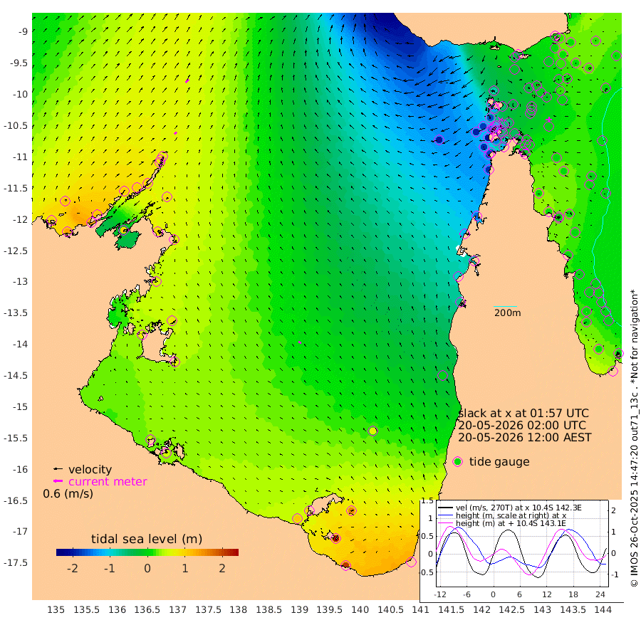 19cm/s 46T +3cm/s rms + 7cm/s -42T. ARA-GOC87 57m 19cm/s -55T +3cm/s rms + 2cm/s -2T. ARA-GOC87 60m 29cm/s 43T +2cm/s rms + 3cm/s 61T. ARA-GOC87 47m 7cm Daru 19cm Bobo Island 11cm Meer Island Barge 16cm Bramble Cay 10cm Unnamed Cay 20cm Pearce Cay 13cm Stephens Island 8cm Merrie England Shoals 2cm Mutacomal Reef 15cm Darnley Island Barge 8cm East Cay 12cm Yorke Island Barge 2cm Rennel Island 16cm Aureed Island 0cm Dungeness Reef -10cm Zagai Island -26cm Yam Island -35cm Dauan Island -39cm Saibai Island -16cm Phipi Reef -8cm Warrior Reef - West -79cm Mabuiag Island Barge 1cm Half Way Island -8cm Coconut Island -4cm Dugong Islet -17cm Poll Island -28cm Kirkcaldie Reef -33cm Suarji Island -22cm Sue Islet -166cm Hawkesbury Island -67cm Alert Patches -58cm Twin Island -142cm Badu Island -57cm St Pauls (Moa Island) -123cm Kubin (Moa Island) -86cm Ince Point -107cm Thursday Island -99cm Nardana Patches -121cm Turtle Head -136cm Round Island -158cm Goods Island -194cm Booby Island -179cm White Rocks Area -201cm Carpentaria -58cm Papou Point -205cm Bampfield Head -173cm Crab Island -185cm Red Wallis Island -143cm Packe Island -9cm Harrington Reef -173cm Herald Camp -12cm Sharp Point -116cm Red Island Point -84cm Possession Island -47cm Alpha Rock -36cm Frederick Point -5cm Wyborn Reef Light -12cm Tetley Island 1cm Triangle Reef -14cm Turtle Head Island 0cm Maclennan Cay -4cm Raine Island 6cm Mcsweeny Reef 7cm Collette Reef 2cm Shadwell Reef 14cm Hannibal Island 11cm Round Point -180cm Vrilya Point 3cm Cape Grenville 7cm Hicks Island 1cm Sir Charles Hardy Island 2cm Harvey Island 1cm Kay Reef 4cm Rocky Island 0cm Chapman Island -5cm Ham Reef -1cm Jubilee Reef 2cm Night Island -7cm Unnamed Reef No. 3 3cm Morris Island -5cm 1st 3 Mile Opening -2cm Creech Reef 6cm Fife Island 13cm Eden Reef -1cm Stanley Island 11cm Normanby River 97cm Yabooma Island 131cm Hutchison River 112cm Elcho Island 108cm North West Crocodile Island 74cm Cape Wessel 105cm Stevens Island 98cm Guluwuru Island 98cm Hopeful Bay 81cm Auster Point 87cm Two Island Bay 134cm Cadell Strait 103cm Mallison Island 93cm Melville Bay (Gove Harbour) 88cm Truant Island 67cm Cape Arnhem 67cm Cape Grey 77cm Hawk Island 72cm Milner Bay (Groote Eylandt) 71cm Cape Beatrice 59cm West Island 56cm Centre Island 110cm Mornington Island 105cm West Wellesley Islands 152cm Bountiful Island 206cm Albert River Mouth 227cm Sweers Island 188cm Karumba 63cm Nassau River Offshore 0cm Christmas Creek -64cm Archer River -94cm Boyd Point -92cm Weipa (Humbug Point) -116cm Pennefather River -152cm Cullen Point
