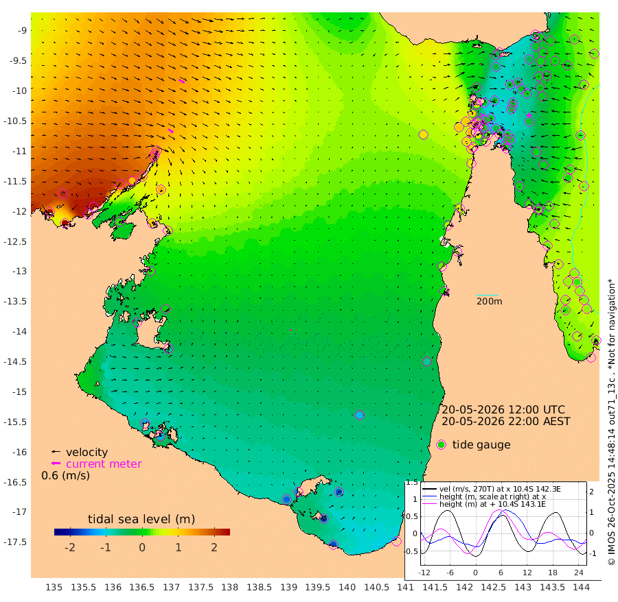 41cm/s 123T +3cm/s rms + 7cm/s -42T. ARA-GOC87 57m 9cm/s 23T +3cm/s rms + 2cm/s -2T. ARA-GOC87 60m 44cm/s 118T +2cm/s rms + 3cm/s 61T. ARA-GOC87 47m -22cm Daru -5cm Bobo Island 23cm Meer Island Barge 17cm Bramble Cay -5cm Unnamed Cay 7cm Pearce Cay 4cm Stephens Island -4cm Merrie England Shoals -19cm Mutacomal Reef 1cm Darnley Island Barge 27cm East Cay -11cm Yorke Island Barge -6cm Rennel Island -11cm Aureed Island -18cm Dungeness Reef -29cm Zagai Island -27cm Yam Island -31cm Dauan Island -32cm Saibai Island -36cm Phipi Reef -39cm Warrior Reef - West 1cm Mabuiag Island Barge -9cm Half Way Island -9cm Coconut Island -19cm Dugong Islet -20cm Poll Island -22cm Kirkcaldie Reef -26cm Suarji Island -30cm Sue Islet 99cm Hawkesbury Island -10cm Alert Patches -9cm Twin Island 81cm Badu Island -19cm St Pauls (Moa Island) 62cm Kubin (Moa Island) 8cm Ince Point 24cm Thursday Island 19cm Nardana Patches 48cm Turtle Head 72cm Round Island 95cm Goods Island 111cm Booby Island 109cm White Rocks Area 87cm Carpentaria 4cm Papou Point 127cm Bampfield Head 93cm Crab Island 100cm Red Wallis Island 69cm Packe Island -16cm Harrington Reef 84cm Herald Camp -25cm Sharp Point 52cm Red Island Point 23cm Possession Island -19cm Alpha Rock -12cm Frederick Point -9cm Wyborn Reef Light -11cm Tetley Island 19cm Triangle Reef 8cm Turtle Head Island 22cm Maclennan Cay 37cm Raine Island -4cm Mcsweeny Reef -1cm Collette Reef 15cm Shadwell Reef 1cm Hannibal Island 22cm Round Point 79cm Vrilya Point 13cm Cape Grenville 23cm Hicks Island 23cm Sir Charles Hardy Island 3cm Harvey Island 25cm Kay Reef 29cm Rocky Island 38cm Chapman Island 34cm Ham Reef 31cm Jubilee Reef 22cm Night Island 35cm Unnamed Reef No. 3 33cm Morris Island 35cm 1st 3 Mile Opening 31cm Creech Reef 22cm Fife Island 44cm Eden Reef 29cm Stanley Island 35cm Normanby River 228cm Yabooma Island 266cm Hutchison River 227cm Elcho Island 215cm North West Crocodile Island 152cm Cape Wessel 197cm Stevens Island 119cm Guluwuru Island 179cm Hopeful Bay 166cm Auster Point 167cm Two Island Bay 208cm Cadell Strait 20cm Mallison Island 107cm Melville Bay (Gove Harbour) 120cm Truant Island 63cm Cape Arnhem 20cm Cape Grey -6cm Hawk Island -49cm Milner Bay (Groote Eylandt) -65cm Cape Beatrice -129cm West Island -124cm Centre Island -150cm Mornington Island -155cm West Wellesley Islands -163cm Bountiful Island -167cm Albert River Mouth -186cm Sweers Island -169cm Karumba -116cm Nassau River Offshore -68cm Christmas Creek 4cm Archer River 25cm Boyd Point 33cm Weipa (Humbug Point) 38cm Pennefather River 61cm Cullen Point