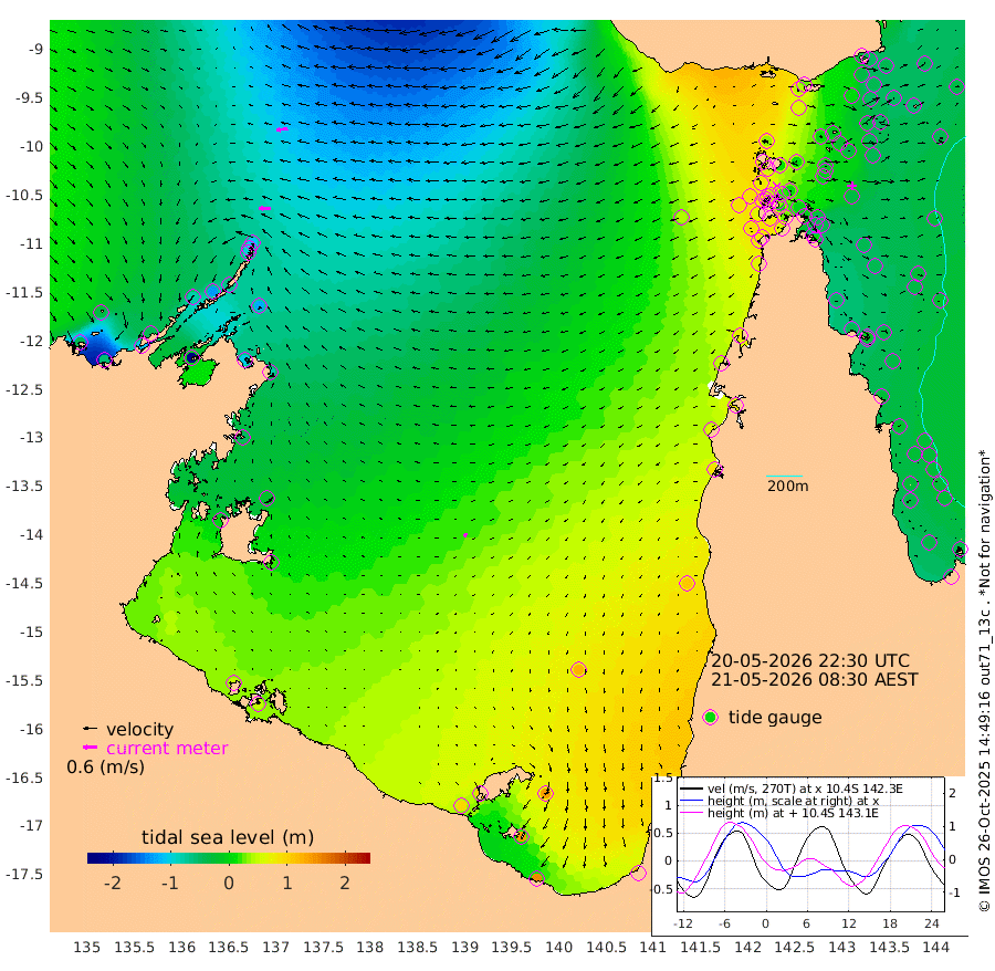 49cm/s -91T +3cm/s rms + 7cm/s -42T. ARA-GOC87 57m 19cm/s -133T +3cm/s rms + 2cm/s -2T. ARA-GOC87 60m 49cm/s -98T +2cm/s rms + 3cm/s 61T. ARA-GOC87 47m -36cm Daru -51cm Bobo Island -40cm Meer Island Barge -41cm Bramble Cay -43cm Unnamed Cay -46cm Pearce Cay -48cm Stephens Island -42cm Merrie England Shoals -33cm Mutacomal Reef -53cm Darnley Island Barge -36cm East Cay -51cm Yorke Island Barge -36cm Rennel Island -44cm Aureed Island -20cm Dungeness Reef -14cm Zagai Island 1cm Yam Island 42cm Dauan Island 24cm Saibai Island 61cm Phipi Reef 6cm Warrior Reef - West 37cm Mabuiag Island Barge -41cm Half Way Island -30cm Coconut Island -36cm Dugong Islet -15cm Poll Island -12cm Kirkcaldie Reef 13cm Suarji Island -24cm Sue Islet 77cm Hawkesbury Island 18cm Alert Patches 7cm Twin Island 79cm Badu Island 12cm St Pauls (Moa Island) 59cm Kubin (Moa Island) 32cm Ince Point 44cm Thursday Island 42cm Nardana Patches 67cm Turtle Head 66cm Round Island 85cm Goods Island 90cm Booby Island 87cm White Rocks Area 40cm Carpentaria 5cm Papou Point 65cm Bampfield Head 78cm Crab Island 87cm Red Wallis Island 81cm Packe Island -39cm Harrington Reef 88cm Herald Camp 5cm Sharp Point 59cm Red Island Point 27cm Possession Island -7cm Alpha Rock -13cm Frederick Point -43cm Wyborn Reef Light -38cm Tetley Island -27cm Triangle Reef -56cm Turtle Head Island -30cm Maclennan Cay -21cm Raine Island -43cm Mcsweeny Reef -41cm Collette Reef -30cm Shadwell Reef -46cm Hannibal Island -39cm Round Point 62cm Vrilya Point -34cm Cape Grenville -35cm Hicks Island -32cm Sir Charles Hardy Island -12cm Harvey Island -32cm Kay Reef -25cm Rocky Island -22cm Chapman Island -27cm Ham Reef -30cm Jubilee Reef -23cm Night Island -24cm Unnamed Reef No. 3 -27cm Morris Island -26cm 1st 3 Mile Opening -28cm Creech Reef -31cm Fife Island -36cm Eden Reef -31cm Stanley Island -38cm Normanby River -44cm Yabooma Island -57cm Hutchison River -43cm Elcho Island -31cm North West Crocodile Island -108cm Cape Wessel -79cm Stevens Island -135cm Guluwuru Island -61cm Hopeful Bay -92cm Auster Point -98cm Two Island Bay -111cm Cadell Strait -251cm Mallison Island -103cm Melville Bay (Gove Harbour) -121cm Truant Island -82cm Cape Arnhem -50cm Cape Grey -22cm Hawk Island -2cm Milner Bay (Groote Eylandt) 21cm Cape Beatrice 50cm West Island 50cm Centre Island 101cm Mornington Island 93cm West Wellesley Islands 139cm Bountiful Island 157cm Albert River Mouth 141cm Sweers Island 169cm Karumba 122cm Nassau River Offshore 107cm Christmas Creek 83cm Archer River 60cm Boyd Point 85cm Weipa (Humbug Point) 51cm Pennefather River 69cm Cullen Point