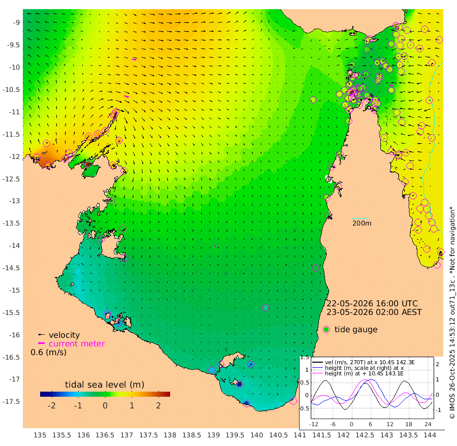 42cm/s 111T +3cm/s rms + 7cm/s -42T. ARA-GOC87 57m 21cm/s 159T +3cm/s rms + 2cm/s -2T. ARA-GOC87 60m 35cm/s 103T +2cm/s rms + 3cm/s 61T. ARA-GOC87 47m 46cm Daru 57cm Bobo Island 71cm Meer Island Barge 68cm Bramble Cay 56cm Unnamed Cay 66cm Pearce Cay 63cm Stephens Island 51cm Merrie England Shoals 43cm Mutacomal Reef 68cm Darnley Island Barge 73cm East Cay 59cm Yorke Island Barge 50cm Rennel Island 55cm Aureed Island 42cm Dungeness Reef 33cm Zagai Island 31cm Yam Island 41cm Dauan Island 40cm Saibai Island 20cm Phipi Reef 36cm Warrior Reef - West 26cm Mabuiag Island Barge 48cm Half Way Island 41cm Coconut Island 46cm Dugong Islet 33cm Poll Island 29cm Kirkcaldie Reef 16cm Suarji Island 34cm Sue Islet 67cm Hawkesbury Island 19cm Alert Patches 26cm Twin Island 53cm Badu Island 21cm St Pauls (Moa Island) 52cm Kubin (Moa Island) 26cm Ince Point 29cm Thursday Island 28cm Nardana Patches 41cm Turtle Head 45cm Round Island 57cm Goods Island 55cm Booby Island 51cm White Rocks Area 41cm Carpentaria 26cm Papou Point 70cm Bampfield Head 39cm Crab Island 53cm Red Wallis Island 51cm Packe Island 38cm Harrington Reef 63cm Herald Camp -8cm Sharp Point 36cm Red Island Point 26cm Possession Island 23cm Alpha Rock 33cm Frederick Point 47cm Wyborn Reef Light 44cm Tetley Island 64cm Triangle Reef 55cm Turtle Head Island 67cm Maclennan Cay 67cm Raine Island 55cm Mcsweeny Reef 57cm Collette Reef 62cm Shadwell Reef 61cm Hannibal Island 70cm Round Point 30cm Vrilya Point 61cm Cape Grenville 69cm Hicks Island 84cm Sir Charles Hardy Island 19cm Harvey Island 68cm Kay Reef 70cm Rocky Island 78cm Chapman Island 74cm Ham Reef 72cm Jubilee Reef 59cm Night Island 71cm Unnamed Reef No. 3 70cm Morris Island 69cm 1st 3 Mile Opening 70cm Creech Reef 70cm Fife Island 88cm Eden Reef 70cm Stanley Island 78cm Normanby River 118cm Yabooma Island 136cm Hutchison River 103cm Elcho Island 92cm North West Crocodile Island 118cm Cape Wessel 113cm Stevens Island 134cm Guluwuru Island 102cm Hopeful Bay 109cm Auster Point 117cm Two Island Bay 158cm Cadell Strait 218cm Mallison Island 107cm Melville Bay (Gove Harbour) 122cm Truant Island 74cm Cape Arnhem 21cm Cape Grey -6cm Hawk Island -62cm Milner Bay (Groote Eylandt) -75cm Cape Beatrice -131cm West Island -133cm Centre Island -124cm Mornington Island -119cm West Wellesley Islands -129cm Bountiful Island -174cm Albert River Mouth -193cm Sweers Island -172cm Karumba -72cm Nassau River Offshore -21cm Christmas Creek 14cm Archer River 32cm Boyd Point 34cm Weipa (Humbug Point) 13cm Pennefather River 36cm Cullen Point
