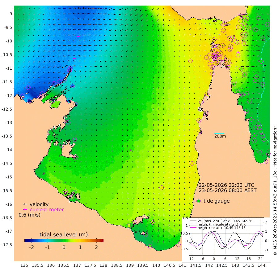 43cm/s -92T +3cm/s rms + 7cm/s -42T. ARA-GOC87 57m 26cm/s 179T +3cm/s rms + 2cm/s -2T. ARA-GOC87 60m 51cm/s -100T +2cm/s rms + 3cm/s 61T. ARA-GOC87 47m 52cm Daru 31cm Bobo Island -6cm Meer Island Barge 8cm Bramble Cay 32cm Unnamed Cay 26cm Pearce Cay 23cm Stephens Island 34cm Merrie England Shoals 55cm Mutacomal Reef 13cm Darnley Island Barge -1cm East Cay 28cm Yorke Island Barge 43cm Rennel Island 31cm Aureed Island 61cm Dungeness Reef 63cm Zagai Island 84cm Yam Island 87cm Dauan Island 76cm Saibai Island 101cm Phipi Reef 80cm Warrior Reef - West 87cm Mabuiag Island Barge 47cm Half Way Island 54cm Coconut Island 58cm Dugong Islet 71cm Poll Island 85cm Kirkcaldie Reef 85cm Suarji Island 67cm Sue Islet 110cm Hawkesbury Island 98cm Alert Patches 92cm Twin Island 103cm Badu Island 99cm St Pauls (Moa Island) 101cm Kubin (Moa Island) 101cm Ince Point 105cm Thursday Island 103cm Nardana Patches 106cm Turtle Head 94cm Round Island 102cm Goods Island 105cm Booby Island 100cm White Rocks Area 81cm Carpentaria 82cm Papou Point 78cm Bampfield Head 96cm Crab Island 108cm Red Wallis Island 114cm Packe Island 63cm Harrington Reef 112cm Herald Camp 36cm Sharp Point 103cm Red Island Point 85cm Possession Island 77cm Alpha Rock 79cm Frederick Point 47cm Wyborn Reef Light 54cm Tetley Island 6cm Triangle Reef 47cm Turtle Head Island 7cm Maclennan Cay -9cm Raine Island 28cm Mcsweeny Reef 21cm Collette Reef 3cm Shadwell Reef 19cm Hannibal Island 10cm Round Point 96cm Vrilya Point 14cm Cape Grenville 5cm Hicks Island 5cm Sir Charles Hardy Island 4cm Harvey Island 2cm Kay Reef -6cm Rocky Island -13cm Chapman Island -11cm Ham Reef -8cm Jubilee Reef 0cm Night Island -7cm Unnamed Reef No. 3 -6cm Morris Island -8cm 1st 3 Mile Opening -5cm Creech Reef -8cm Fife Island -21cm Eden Reef -5cm Stanley Island -11cm Normanby River -166cm Yabooma Island -196cm Hutchison River -172cm Elcho Island -153cm North West Crocodile Island -157cm Cape Wessel -174cm Stevens Island -159cm Guluwuru Island -162cm Hopeful Bay -159cm Auster Point -157cm Two Island Bay -191cm Cadell Strait -201cm Mallison Island -141cm Melville Bay (Gove Harbour) -154cm Truant Island -103cm Cape Arnhem -71cm Cape Grey -53cm Hawk Island -34cm Milner Bay (Groote Eylandt) -9cm Cape Beatrice 34cm West Island 31cm Centre Island 53cm Mornington Island 47cm West Wellesley Islands 51cm Bountiful Island 28cm Albert River Mouth 7cm Sweers Island 53cm Karumba 88cm Nassau River Offshore 95cm Christmas Creek 78cm Archer River 71cm Boyd Point 77cm Weipa (Humbug Point) 76cm Pennefather River 88cm Cullen Point