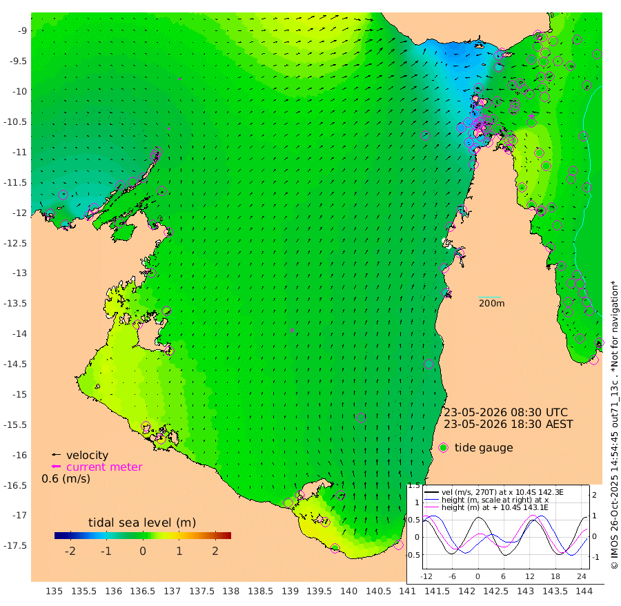 16cm/s -2T +3cm/s rms + 7cm/s -42T. ARA-GOC87 57m 29cm/s 10T +3cm/s rms + 2cm/s -2T. ARA-GOC87 60m 14cm/s 14T +2cm/s rms + 3cm/s 61T. ARA-GOC87 47m 11cm Daru 16cm Bobo Island 2cm Meer Island Barge 7cm Bramble Cay 16cm Unnamed Cay 5cm Pearce Cay 17cm Stephens Island 22cm Merrie England Shoals 13cm Mutacomal Reef 14cm Darnley Island Barge 2cm East Cay 14cm Yorke Island Barge 13cm Rennel Island 12cm Aureed Island -4cm Dungeness Reef -20cm Zagai Island -28cm Yam Island -93cm Dauan Island -76cm Saibai Island -83cm Phipi Reef -41cm Warrior Reef - West -68cm Mabuiag Island Barge 16cm Half Way Island 8cm Coconut Island 11cm Dugong Islet -8cm Poll Island -4cm Kirkcaldie Reef -18cm Suarji Island -5cm Sue Islet -130cm Hawkesbury Island -29cm Alert Patches -26cm Twin Island -124cm Badu Island -32cm St Pauls (Moa Island) -97cm Kubin (Moa Island) -51cm Ince Point -64cm Thursday Island -62cm Nardana Patches -91cm Turtle Head -90cm Round Island -120cm Goods Island -121cm Booby Island -113cm White Rocks Area -61cm Carpentaria -28cm Papou Point -95cm Bampfield Head -100cm Crab Island -118cm Red Wallis Island -109cm Packe Island 24cm Harrington Reef -118cm Herald Camp -2cm Sharp Point -82cm Red Island Point -39cm Possession Island -9cm Alpha Rock -6cm Frederick Point 15cm Wyborn Reef Light 10cm Tetley Island -10cm Triangle Reef 21cm Turtle Head Island -2cm Maclennan Cay -10cm Raine Island 16cm Mcsweeny Reef 13cm Collette Reef -1cm Shadwell Reef 17cm Hannibal Island 6cm Round Point -81cm Vrilya Point 11cm Cape Grenville 3cm Hicks Island -10cm Sir Charles Hardy Island 4cm Harvey Island 5cm Kay Reef -7cm Rocky Island -17cm Chapman Island -10cm Ham Reef -6cm Jubilee Reef -2cm Night Island -10cm Unnamed Reef No. 3 -3cm Morris Island -5cm 1st 3 Mile Opening -4cm Creech Reef 2cm Fife Island -9cm Eden Reef 1cm Stanley Island 3cm Normanby River -81cm Yabooma Island -88cm Hutchison River -70cm Elcho Island -73cm North West Crocodile Island -20cm Cape Wessel -50cm Stevens Island -14cm Guluwuru Island -49cm Hopeful Bay -29cm Auster Point -34cm Two Island Bay -72cm Cadell Strait 7cm Mallison Island -15cm Melville Bay (Gove Harbour) -13cm Truant Island 0cm Cape Arnhem 22cm Cape Grey 23cm Hawk Island 57cm Milner Bay (Groote Eylandt) 50cm Cape Beatrice 79cm West Island 81cm Centre Island 31cm Mornington Island 34cm West Wellesley Islands 6cm Bountiful Island 16cm Albert River Mouth 49cm Sweers Island 8cm Karumba -33cm Nassau River Offshore -62cm Christmas Creek -75cm Archer River -71cm Boyd Point -92cm Weipa (Humbug Point) -56cm Pennefather River -86cm Cullen Point