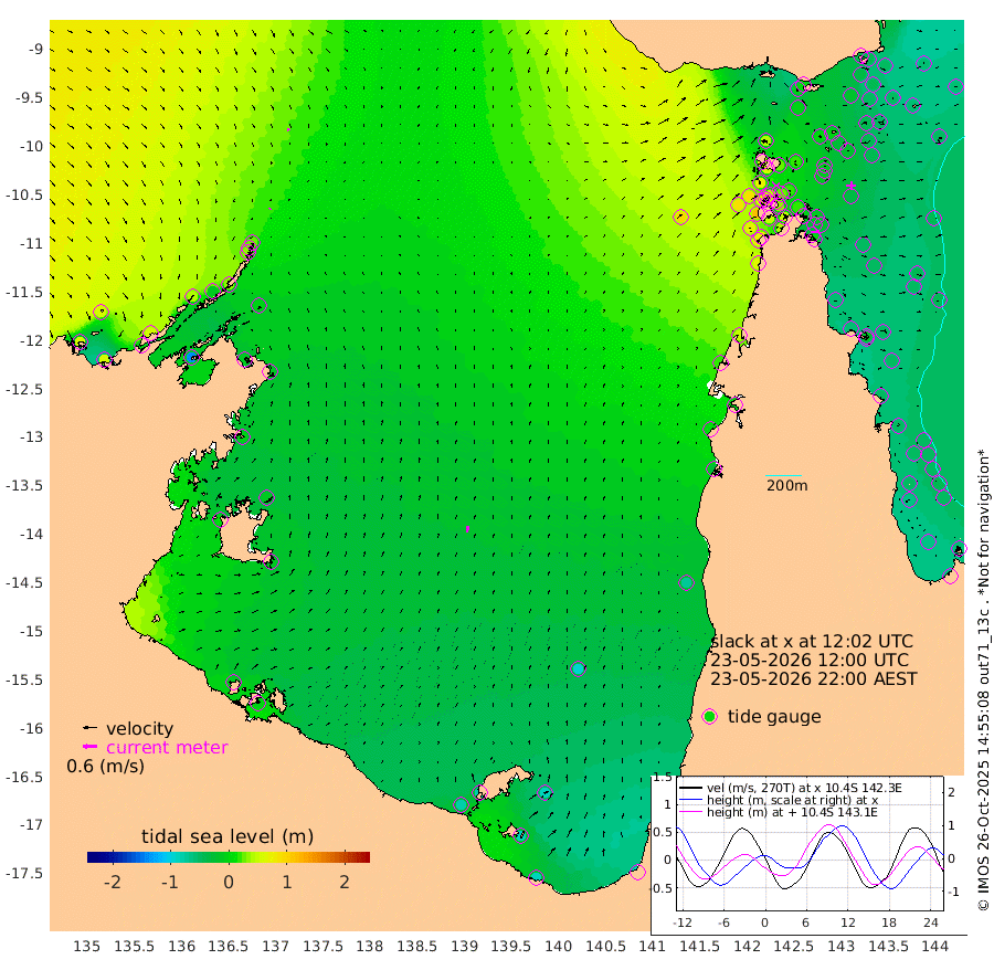 4cm/s -158T +3cm/s rms + 7cm/s -42T. ARA-GOC87 57m 27cm/s 11T +3cm/s rms + 2cm/s -2T. ARA-GOC87 60m 10cm/s 152T +2cm/s rms + 3cm/s 61T. ARA-GOC87 47m -40cm Daru -43cm Bobo Island -51cm Meer Island Barge -53cm Bramble Cay -42cm Unnamed Cay -52cm Pearce Cay -52cm Stephens Island -46cm Merrie England Shoals -34cm Mutacomal Reef -55cm Darnley Island Barge -54cm East Cay -46cm Yorke Island Barge -38cm Rennel Island -45cm Aureed Island -29cm Dungeness Reef -3cm Zagai Island 2cm Yam Island 0cm Dauan Island 6cm Saibai Island -5cm Phipi Reef -19cm Warrior Reef - West 41cm Mabuiag Island Barge -39cm Half Way Island -19cm Coconut Island -34cm Dugong Islet -9cm Poll Island -13cm Kirkcaldie Reef 18cm Suarji Island -9cm Sue Islet 73cm Hawkesbury Island 23cm Alert Patches 19cm Twin Island 64cm Badu Island 24cm St Pauls (Moa Island) 55cm Kubin (Moa Island) 35cm Ince Point 45cm Thursday Island 43cm Nardana Patches 46cm Turtle Head 78cm Round Island 66cm Goods Island 84cm Booby Island 85cm White Rocks Area 93cm Carpentaria 30cm Papou Point 119cm Bampfield Head 69cm Crab Island 75cm Red Wallis Island 51cm Packe Island -25cm Harrington Reef 79cm Herald Camp 5cm Sharp Point 43cm Red Island Point 49cm Possession Island 16cm Alpha Rock -1cm Frederick Point -20cm Wyborn Reef Light -13cm Tetley Island -39cm Triangle Reef -18cm Turtle Head Island -44cm Maclennan Cay -43cm Raine Island -46cm Mcsweeny Reef -47cm Collette Reef -46cm Shadwell Reef -53cm Hannibal Island -53cm Round Point 63cm Vrilya Point -48cm Cape Grenville -49cm Hicks Island -52cm Sir Charles Hardy Island -16cm Harvey Island -49cm Kay Reef -49cm Rocky Island -51cm Chapman Island -47cm Ham Reef -48cm Jubilee Reef -47cm Night Island -49cm Unnamed Reef No. 3 -51cm Morris Island -41cm 1st 3 Mile Opening -50cm Creech Reef -65cm Fife Island -63cm Eden Reef -53cm Stanley Island -59cm Normanby River 56cm Yabooma Island 56cm Hutchison River 55cm Elcho Island 53cm North West Crocodile Island 25cm Cape Wessel 39cm Stevens Island -14cm Guluwuru Island 34cm Hopeful Bay 35cm Auster Point 29cm Two Island Bay -3cm Cadell Strait -139cm Mallison Island -8cm Melville Bay (Gove Harbour) -2cm Truant Island -10cm Cape Arnhem -6cm Cape Grey -11cm Hawk Island 2cm Milner Bay (Groote Eylandt) -13cm Cape Beatrice -15cm West Island -6cm Centre Island -75cm Mornington Island -77cm West Wellesley Islands -88cm Bountiful Island -89cm Albert River Mouth -87cm Sweers Island -93cm Karumba -91cm Nassau River Offshore -72cm Christmas Creek -24cm Archer River 2cm Boyd Point 0cm Weipa (Humbug Point) 20cm Pennefather River 48cm Cullen Point
