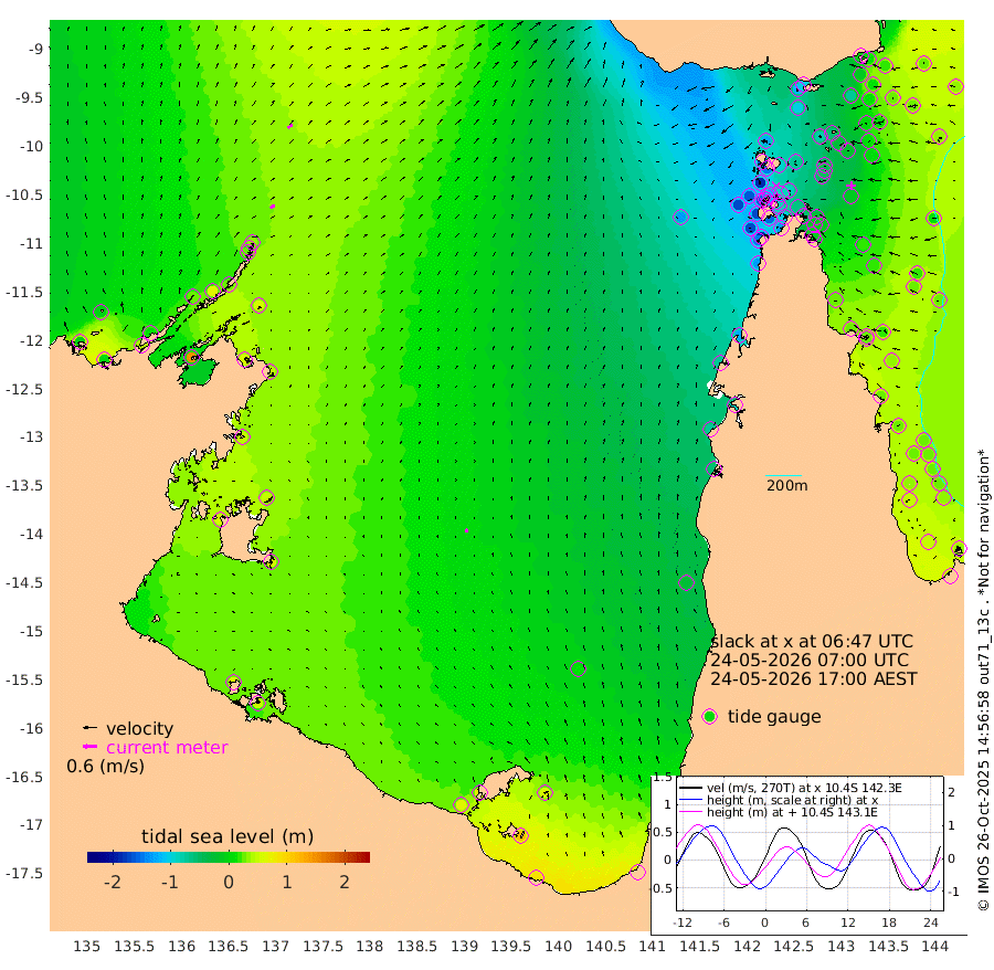 21cm/s 52T +3cm/s rms + 7cm/s -42T. ARA-GOC87 57m 16cm/s -11T +3cm/s rms + 2cm/s -2T. ARA-GOC87 60m 25cm/s 50T +2cm/s rms + 3cm/s 61T. ARA-GOC87 47m -4cm Daru 11cm Bobo Island 33cm Meer Island Barge 30cm Bramble Cay 12cm Unnamed Cay 15cm Pearce Cay 25cm Stephens Island 20cm Merrie England Shoals -8cm Mutacomal Reef 29cm Darnley Island Barge 34cm East Cay 13cm Yorke Island Barge 3cm Rennel Island 11cm Aureed Island -24cm Dungeness Reef -56cm Zagai Island -76cm Yam Island -115cm Dauan Island -105cm Saibai Island -104cm Phipi Reef -68cm Warrior Reef - West -121cm Mabuiag Island Barge 1cm Half Way Island -17cm Coconut Island -13cm Dugong Islet -46cm Poll Island -47cm Kirkcaldie Reef -73cm Suarji Island -45cm Sue Islet -184cm Hawkesbury Island -88cm Alert Patches -84cm Twin Island -166cm Badu Island -96cm St Pauls (Moa Island) -149cm Kubin (Moa Island) -110cm Ince Point -125cm Thursday Island -122cm Nardana Patches -136cm Turtle Head -153cm Round Island -160cm Goods Island -172cm Booby Island -164cm White Rocks Area -133cm Carpentaria -88cm Papou Point -169cm Bampfield Head -143cm Crab Island -168cm Red Wallis Island -155cm Packe Island -10cm Harrington Reef -183cm Herald Camp -26cm Sharp Point -128cm Red Island Point -103cm Possession Island -67cm Alpha Rock -53cm Frederick Point -13cm Wyborn Reef Light -25cm Tetley Island 12cm Triangle Reef -11cm Turtle Head Island 20cm Maclennan Cay 28cm Raine Island 18cm Mcsweeny Reef 22cm Collette Reef 25cm Shadwell Reef 29cm Hannibal Island 29cm Round Point -129cm Vrilya Point 27cm Cape Grenville 27cm Hicks Island 18cm Sir Charles Hardy Island 9cm Harvey Island 33cm Kay Reef 30cm Rocky Island 29cm Chapman Island 28cm Ham Reef 30cm Jubilee Reef 29cm Night Island 30cm Unnamed Reef No. 3 34cm Morris Island 28cm 1st 3 Mile Opening 31cm Creech Reef 47cm Fife Island 45cm Eden Reef 37cm Stanley Island 43cm Normanby River -7cm Yabooma Island 7cm Hutchison River 9cm Elcho Island -2cm North West Crocodile Island 35cm Cape Wessel 24cm Stevens Island 62cm Guluwuru Island 24cm Hopeful Bay 29cm Auster Point 22cm Two Island Bay 38cm Cadell Strait 149cm Mallison Island 53cm Melville Bay (Gove Harbour) 54cm Truant Island 48cm Cape Arnhem 50cm Cape Grey 47cm Hawk Island 56cm Milner Bay (Groote Eylandt) 53cm Cape Beatrice 54cm West Island 52cm Centre Island 62cm Mornington Island 66cm West Wellesley Islands 58cm Bountiful Island 89cm Albert River Mouth 118cm Sweers Island 72cm Karumba 12cm Nassau River Offshore -26cm Christmas Creek -57cm Archer River -74cm Boyd Point -85cm Weipa (Humbug Point) -75cm Pennefather River -123cm Cullen Point
