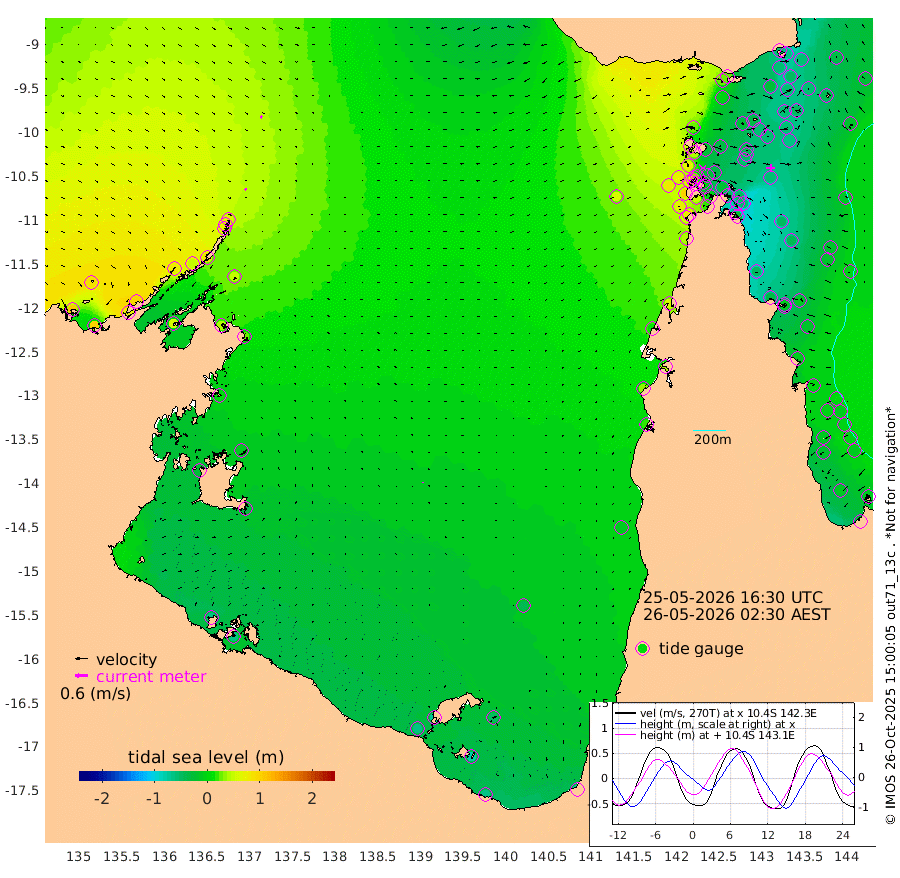 9cm/s 134T +3cm/s rms + 7cm/s -42T. ARA-GOC87 57m 1cm/s 154T +3cm/s rms + 2cm/s -2T. ARA-GOC87 60m 10cm/s 125T +2cm/s rms + 3cm/s 61T. ARA-GOC87 47m -60cm Daru -63cm Bobo Island -20cm Meer Island Barge -36cm Bramble Cay -50cm Unnamed Cay -59cm Pearce Cay -53cm Stephens Island -58cm Merrie England Shoals -59cm Mutacomal Reef -44cm Darnley Island Barge -24cm East Cay -51cm Yorke Island Barge -55cm Rennel Island -57cm Aureed Island -53cm Dungeness Reef -31cm Zagai Island -28cm Yam Island 24cm Dauan Island 23cm Saibai Island -4cm Phipi Reef -28cm Warrior Reef - West 23cm Mabuiag Island Barge -62cm Half Way Island -58cm Coconut Island -60cm Dugong Islet -47cm Poll Island -55cm Kirkcaldie Reef -33cm Suarji Island -40cm Sue Islet 70cm Hawkesbury Island -27cm Alert Patches -31cm Twin Island 59cm Badu Island -26cm St Pauls (Moa Island) 41cm Kubin (Moa Island) -4cm Ince Point 10cm Thursday Island 8cm Nardana Patches 32cm Turtle Head 56cm Round Island 64cm Goods Island 78cm Booby Island 71cm White Rocks Area 60cm Carpentaria -21cm Papou Point 98cm Bampfield Head 57cm Crab Island 69cm Red Wallis Island 45cm Packe Island -74cm Harrington Reef 84cm Herald Camp -15cm Sharp Point 19cm Red Island Point 0cm Possession Island -28cm Alpha Rock -47cm Frederick Point -54cm Wyborn Reef Light -51cm Tetley Island -15cm Triangle Reef -64cm Turtle Head Island -18cm Maclennan Cay -3cm Raine Island -50cm Mcsweeny Reef -42cm Collette Reef -17cm Shadwell Reef -49cm Hannibal Island -37cm Round Point 43cm Vrilya Point -33cm Cape Grenville -25cm Hicks Island -8cm Sir Charles Hardy Island -11cm Harvey Island -20cm Kay Reef -8cm Rocky Island 3cm Chapman Island 1cm Ham Reef -7cm Jubilee Reef -15cm Night Island -4cm Unnamed Reef No. 3 -12cm Morris Island -3cm 1st 3 Mile Opening -10cm Creech Reef -17cm Fife Island -8cm Eden Reef -12cm Stanley Island -18cm Normanby River 108cm Yabooma Island 103cm Hutchison River 90cm Elcho Island 84cm North West Crocodile Island 65cm Cape Wessel 82cm Stevens Island 46cm Guluwuru Island 83cm Hopeful Bay 69cm Auster Point 69cm Two Island Bay 75cm Cadell Strait 55cm Mallison Island 44cm Melville Bay (Gove Harbour) 50cm Truant Island 26cm Cape Arnhem 4cm Cape Grey -8cm Hawk Island -24cm Milner Bay (Groote Eylandt) -36cm Cape Beatrice -63cm West Island -63cm Centre Island -69cm Mornington Island -62cm West Wellesley Islands -47cm Bountiful Island -65cm Albert River Mouth -77cm Sweers Island -71cm Karumba -43cm Nassau River Offshore -14cm Christmas Creek 16cm Archer River 32cm Boyd Point 44cm Weipa (Humbug Point) 12cm Pennefather River 54cm Cullen Point