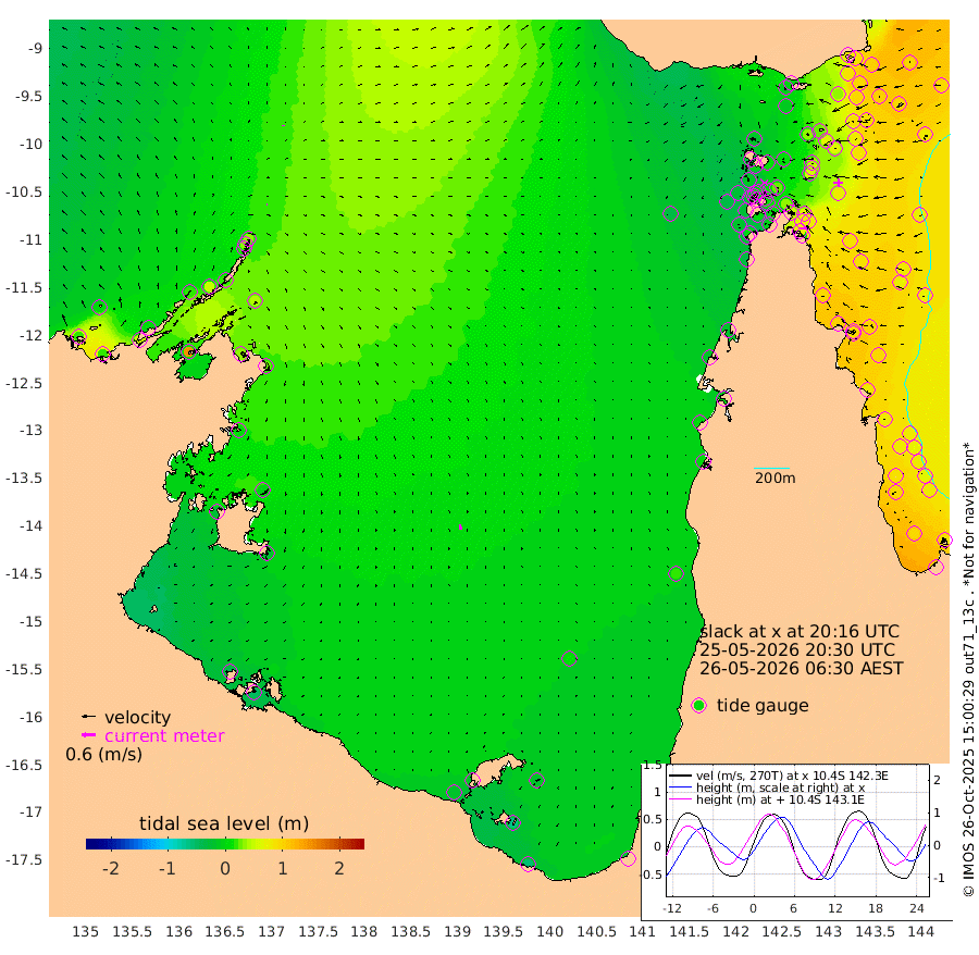 4cm/s 66T +3cm/s rms + 7cm/s -42T. ARA-GOC87 57m 21cm/s 170T +3cm/s rms + 2cm/s -2T. ARA-GOC87 60m 4cm/s -16T +2cm/s rms + 3cm/s 61T. ARA-GOC87 47m 83cm Daru 89cm Bobo Island 82cm Meer Island Barge 96cm Bramble Cay 94cm Unnamed Cay 92cm Pearce Cay 99cm Stephens Island 99cm Merrie England Shoals 88cm Mutacomal Reef 94cm Darnley Island Barge 96cm East Cay 85cm Yorke Island Barge 86cm Rennel Island 82cm Aureed Island 64cm Dungeness Reef 27cm Zagai Island 37cm Yam Island -11cm Dauan Island -5cm Saibai Island -9cm Phipi Reef 34cm Warrior Reef - West -18cm Mabuiag Island Barge 86cm Half Way Island 65cm Coconut Island 81cm Dugong Islet 48cm Poll Island 56cm Kirkcaldie Reef 15cm Suarji Island 45cm Sue Islet -9cm Hawkesbury Island 12cm Alert Patches 24cm Twin Island -31cm Badu Island 11cm St Pauls (Moa Island) -1cm Kubin (Moa Island) 3cm Ince Point -5cm Thursday Island -5cm Nardana Patches -10cm Turtle Head -11cm Round Island -20cm Goods Island -33cm Booby Island -28cm White Rocks Area -31cm Carpentaria 14cm Papou Point -26cm Bampfield Head -32cm Crab Island -22cm Red Wallis Island 2cm Packe Island 81cm Harrington Reef 1cm Herald Camp -1cm Sharp Point -3cm Red Island Point 3cm Possession Island 33cm Alpha Rock 50cm Frederick Point 79cm Wyborn Reef Light 72cm Tetley Island 70cm Triangle Reef 79cm Turtle Head Island 81cm Maclennan Cay 68cm Raine Island 89cm Mcsweeny Reef 86cm Collette Reef 75cm Shadwell Reef 97cm Hannibal Island 101cm Round Point -33cm Vrilya Point 94cm Cape Grenville 91cm Hicks Island 98cm Sir Charles Hardy Island 30cm Harvey Island 94cm Kay Reef 82cm Rocky Island 79cm Chapman Island 78cm Ham Reef 78cm Jubilee Reef 74cm Night Island 79cm Unnamed Reef No. 3 84cm Morris Island 67cm 1st 3 Mile Opening 79cm Creech Reef 93cm Fife Island 95cm Eden Reef 87cm Stanley Island 103cm Normanby River 16cm Yabooma Island 15cm Hutchison River 5cm Elcho Island 6cm North West Crocodile Island 37cm Cape Wessel 21cm Stevens Island 48cm Guluwuru Island 22cm Hopeful Bay 22cm Auster Point 36cm Two Island Bay 46cm Cadell Strait 144cm Mallison Island 37cm Melville Bay (Gove Harbour) 40cm Truant Island 24cm Cape Arnhem 3cm Cape Grey -2cm Hawk Island -29cm Milner Bay (Groote Eylandt) -25cm Cape Beatrice -38cm West Island -46cm Centre Island -20cm Mornington Island -22cm West Wellesley Islands -20cm Bountiful Island -58cm Albert River Mouth -65cm Sweers Island -44cm Karumba 8cm Nassau River Offshore 20cm Christmas Creek 4cm Archer River 1cm Boyd Point -1cm Weipa (Humbug Point) -22cm Pennefather River -16cm Cullen Point
