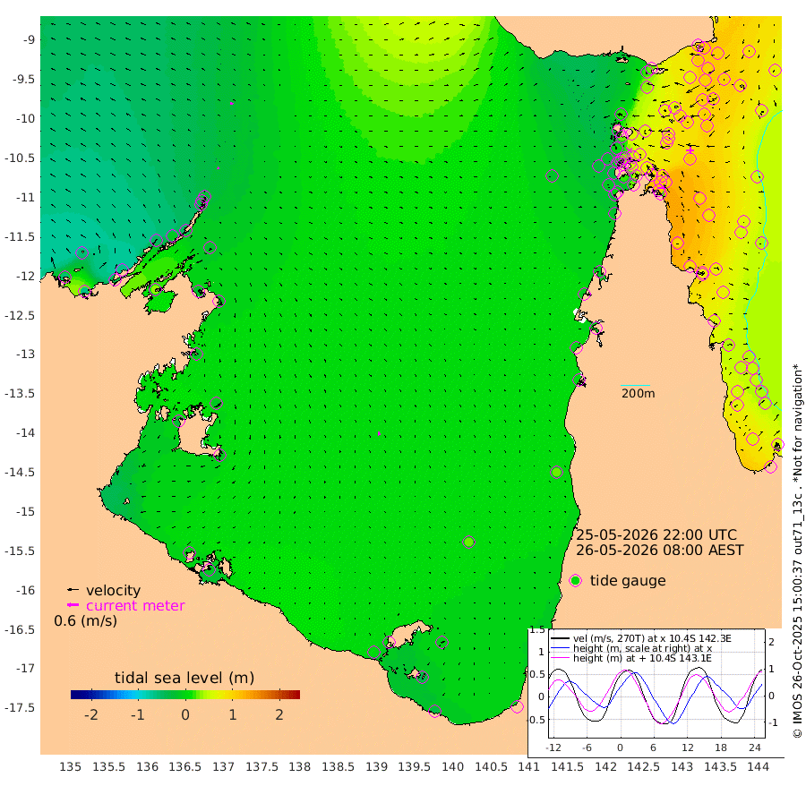 8cm/s -67T +3cm/s rms + 7cm/s -42T. ARA-GOC87 57m 20cm/s 168T +3cm/s rms + 2cm/s -2T. ARA-GOC87 60m 14cm/s -76T +2cm/s rms + 3cm/s 61T. ARA-GOC87 47m 105cm Daru 106cm Bobo Island 61cm Meer Island Barge 84cm Bramble Cay 100cm Unnamed Cay 102cm Pearce Cay 100cm Stephens Island 104cm Merrie England Shoals 110cm Mutacomal Reef 90cm Darnley Island Barge 73cm East Cay 95cm Yorke Island Barge 101cm Rennel Island 98cm Aureed Island 93cm Dungeness Reef 66cm Zagai Island 80cm Yam Island 22cm Dauan Island 25cm Saibai Island 35cm Phipi Reef 73cm Warrior Reef - West 16cm Mabuiag Island Barge 106cm Half Way Island 94cm Coconut Island 108cm Dugong Islet 87cm Poll Island 97cm Kirkcaldie Reef 63cm Suarji Island 81cm Sue Islet 5cm Hawkesbury Island 59cm Alert Patches 70cm Twin Island -12cm Badu Island 64cm St Pauls (Moa Island) 23cm Kubin (Moa Island) 44cm Ince Point 32cm Thursday Island 34cm Nardana Patches 15cm Turtle Head 7cm Round Island -11cm Goods Island -27cm Booby Island -20cm White Rocks Area -22cm Carpentaria 58cm Papou Point -30cm Bampfield Head -23cm Crab Island -12cm Red Wallis Island 21cm Packe Island 116cm Harrington Reef 8cm Herald Camp 21cm Sharp Point 24cm Red Island Point 39cm Possession Island 71cm Alpha Rock 89cm Frederick Point 102cm Wyborn Reef Light 100cm Tetley Island 57cm Triangle Reef 106cm Turtle Head Island 65cm Maclennan Cay 38cm Raine Island 94cm Mcsweeny Reef 84cm Collette Reef 56cm Shadwell Reef 93cm Hannibal Island 88cm Round Point -19cm Vrilya Point 81cm Cape Grenville 73cm Hicks Island 73cm Sir Charles Hardy Island 26cm Harvey Island 69cm Kay Reef 53cm Rocky Island 43cm Chapman Island 45cm Ham Reef 49cm Jubilee Reef 52cm Night Island 47cm Unnamed Reef No. 3 55cm Morris Island 38cm 1st 3 Mile Opening 51cm Creech Reef 60cm Fife Island 55cm Eden Reef 57cm Stanley Island 71cm Normanby River -59cm Yabooma Island -65cm Hutchison River -65cm Elcho Island -56cm North West Crocodile Island -24cm Cape Wessel -48cm Stevens Island -13cm Guluwuru Island -47cm Hopeful Bay -39cm Auster Point -23cm Two Island Bay -31cm Cadell Strait 30cm Mallison Island -18cm Melville Bay (Gove Harbour) -19cm Truant Island -13cm Cape Arnhem -16cm Cape Grey -11cm Hawk Island -23cm Milner Bay (Groote Eylandt) -12cm Cape Beatrice -2cm West Island -8cm Centre Island 7cm Mornington Island 2cm West Wellesley Islands -3cm Bountiful Island -35cm Albert River Mouth -41cm Sweers Island -16cm Karumba 26cm Nassau River Offshore 28cm Christmas Creek 2cm Archer River -1cm Boyd Point -9cm Weipa (Humbug Point) -11cm Pennefather River -11cm Cullen Point