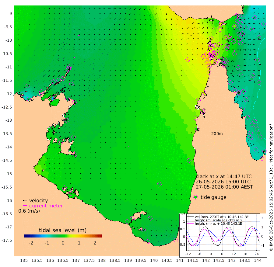 12cm/s -100T +3cm/s rms + 7cm/s -42T. ARA-GOC87 57m 7cm/s 21T +3cm/s rms + 2cm/s -2T. ARA-GOC87 60m 12cm/s -121T +2cm/s rms + 3cm/s 61T. ARA-GOC87 47m -35cm Daru -49cm Bobo Island -52cm Meer Island Barge -62cm Bramble Cay -47cm Unnamed Cay -58cm Pearce Cay -58cm Stephens Island -60cm Merrie England Shoals -38cm Mutacomal Reef -55cm Darnley Island Barge -61cm East Cay -42cm Yorke Island Barge -40cm Rennel Island -41cm Aureed Island -15cm Dungeness Reef 28cm Zagai Island 32cm Yam Island 80cm Dauan Island 74cm Saibai Island 61cm Phipi Reef 27cm Warrior Reef - West 81cm Mabuiag Island Barge -41cm Half Way Island -21cm Coconut Island -27cm Dugong Islet 6cm Poll Island -1cm Kirkcaldie Reef 46cm Suarji Island 11cm Sue Islet 90cm Hawkesbury Island 44cm Alert Patches 37cm Twin Island 94cm Badu Island 52cm St Pauls (Moa Island) 78cm Kubin (Moa Island) 60cm Ince Point 70cm Thursday Island 69cm Nardana Patches 77cm Turtle Head 91cm Round Island 90cm Goods Island 104cm Booby Island 98cm White Rocks Area 96cm Carpentaria 44cm Papou Point 123cm Bampfield Head 81cm Crab Island 93cm Red Wallis Island 75cm Packe Island -32cm Harrington Reef 106cm Herald Camp 16cm Sharp Point 57cm Red Island Point 59cm Possession Island 28cm Alpha Rock 6cm Frederick Point -28cm Wyborn Reef Light -18cm Tetley Island -37cm Triangle Reef -33cm Turtle Head Island -43cm Maclennan Cay -44cm Raine Island -49cm Mcsweeny Reef -50cm Collette Reef -44cm Shadwell Reef -60cm Hannibal Island -67cm Round Point 70cm Vrilya Point -57cm Cape Grenville -54cm Hicks Island -44cm Sir Charles Hardy Island -17cm Harvey Island -60cm Kay Reef -50cm Rocky Island -50cm Chapman Island -47cm Ham Reef -48cm Jubilee Reef -48cm Night Island -51cm Unnamed Reef No. 3 -55cm Morris Island -37cm 1st 3 Mile Opening -49cm Creech Reef -67cm Fife Island -66cm Eden Reef -56cm Stanley Island -70cm Normanby River -24cm Yabooma Island -41cm Hutchison River -35cm Elcho Island -34cm North West Crocodile Island -35cm Cape Wessel -43cm Stevens Island -48cm Guluwuru Island -40cm Hopeful Bay -32cm Auster Point -38cm Two Island Bay -70cm Cadell Strait -122cm Mallison Island -42cm Melville Bay (Gove Harbour) -40cm Truant Island -29cm Cape Arnhem -19cm Cape Grey -22cm Hawk Island -6cm Milner Bay (Groote Eylandt) -13cm Cape Beatrice -2cm West Island 3cm Centre Island -30cm Mornington Island -22cm West Wellesley Islands -20cm Bountiful Island -34cm Albert River Mouth -45cm Sweers Island -40cm Karumba -27cm Nassau River Offshore -6cm Christmas Creek 15cm Archer River 37cm Boyd Point 42cm Weipa (Humbug Point) 32cm Pennefather River 69cm Cullen Point