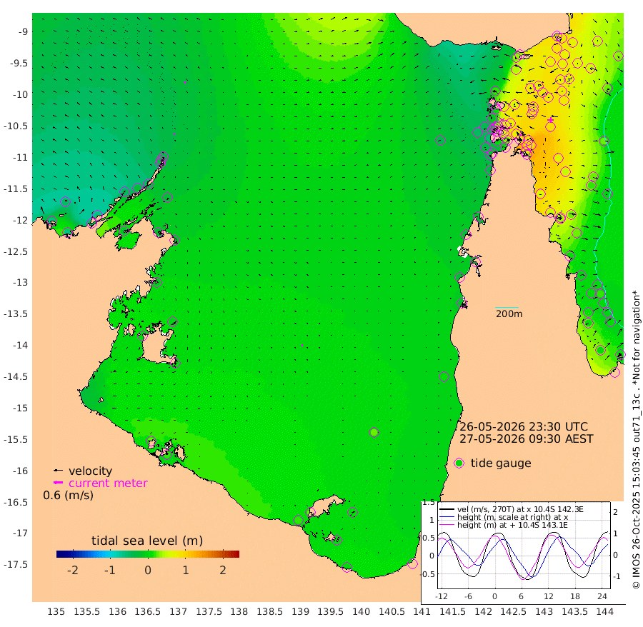 10cm/s -56T +3cm/s rms + 7cm/s -42T. ARA-GOC87 57m 10cm/s 169T +3cm/s rms + 2cm/s -2T. ARA-GOC87 60m 13cm/s -64T +2cm/s rms + 3cm/s 61T. ARA-GOC87 47m 83cm Daru 82cm Bobo Island 24cm Meer Island Barge 46cm Bramble Cay 68cm Unnamed Cay 75cm Pearce Cay 65cm Stephens Island 70cm Merrie England Shoals 86cm Mutacomal Reef 55cm Darnley Island Barge 30cm East Cay 68cm Yorke Island Barge 74cm Rennel Island 75cm Aureed Island 78cm Dungeness Reef 68cm Zagai Island 78cm Yam Island 30cm Dauan Island 31cm Saibai Island 43cm Phipi Reef 73cm Warrior Reef - West 21cm Mabuiag Island Barge 81cm Half Way Island 78cm Coconut Island 87cm Dugong Islet 80cm Poll Island 84cm Kirkcaldie Reef 67cm Suarji Island 72cm Sue Islet -14cm Hawkesbury Island 56cm Alert Patches 68cm Twin Island -23cm Badu Island 68cm St Pauls (Moa Island) 12cm Kubin (Moa Island) 42cm Ince Point 28cm Thursday Island 31cm Nardana Patches 3cm Turtle Head -6cm Round Island -30cm Goods Island -48cm Booby Island -39cm White Rocks Area -40cm Carpentaria 58cm Papou Point -58cm Bampfield Head -42cm Crab Island -32cm Red Wallis Island 5cm Packe Island 96cm Harrington Reef -16cm Herald Camp 27cm Sharp Point 11cm Red Island Point 34cm Possession Island 68cm Alpha Rock 79cm Frederick Point 82cm Wyborn Reef Light 83cm Tetley Island 28cm Triangle Reef 82cm Turtle Head Island 28cm Maclennan Cay -1cm Raine Island 63cm Mcsweeny Reef 51cm Collette Reef 20cm Shadwell Reef 57cm Hannibal Island 47cm Round Point -37cm Vrilya Point 42cm Cape Grenville 33cm Hicks Island 28cm Sir Charles Hardy Island 14cm Harvey Island 24cm Kay Reef 11cm Rocky Island 0cm Chapman Island 2cm Ham Reef 8cm Jubilee Reef 16cm Night Island 5cm Unnamed Reef No. 3 12cm Morris Island -2cm 1st 3 Mile Opening 9cm Creech Reef 15cm Fife Island 6cm Eden Reef 11cm Stanley Island 22cm Normanby River -64cm Yabooma Island -67cm Hutchison River -63cm Elcho Island -52cm North West Crocodile Island -31cm Cape Wessel -50cm Stevens Island -25cm Guluwuru Island -52cm Hopeful Bay -43cm Auster Point -27cm Two Island Bay -39cm Cadell Strait -21cm Mallison Island -26cm Melville Bay (Gove Harbour) -29cm Truant Island -18cm Cape Arnhem -14cm Cape Grey -1cm Hawk Island -2cm Milner Bay (Groote Eylandt) 7cm Cape Beatrice 25cm West Island 22cm Centre Island 26cm Mornington Island 19cm West Wellesley Islands 14cm Bountiful Island 4cm Albert River Mouth 3cm Sweers Island 17cm Karumba 26cm Nassau River Offshore 12cm Christmas Creek -19cm Archer River -23cm Boyd Point -33cm Weipa (Humbug Point) -25cm Pennefather River -30cm Cullen Point