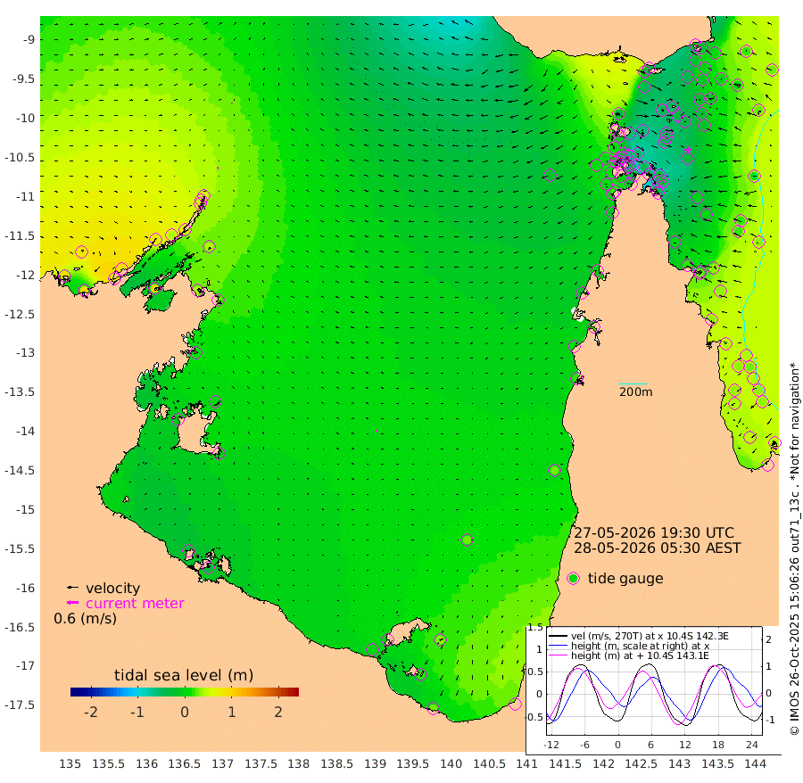 6cm/s -75T +3cm/s rms + 7cm/s -42T. ARA-GOC87 57m 9cm/s -146T +3cm/s rms + 2cm/s -2T. ARA-GOC87 60m 4cm/s -74T +2cm/s rms + 3cm/s 61T. ARA-GOC87 47m -22cm Daru -23cm Bobo Island 23cm Meer Island Barge 18cm Bramble Cay -2cm Unnamed Cay -18cm Pearce Cay -1cm Stephens Island 1cm Merrie England Shoals -16cm Mutacomal Reef 1cm Darnley Island Barge 28cm East Cay -15cm Yorke Island Barge -15cm Rennel Island -24cm Aureed Island -33cm Dungeness Reef -47cm Zagai Island -39cm Yam Island -29cm Dauan Island -28cm Saibai Island -38cm Phipi Reef -39cm Warrior Reef - West -34cm Mabuiag Island Barge -22cm Half Way Island -37cm Coconut Island -29cm Dugong Islet -44cm Poll Island -42cm Kirkcaldie Reef -56cm Suarji Island -42cm Sue Islet 0cm Hawkesbury Island -53cm Alert Patches -52cm Twin Island -11cm Badu Island -59cm St Pauls (Moa Island) -14cm Kubin (Moa Island) -42cm Ince Point -37cm Thursday Island -38cm Nardana Patches -19cm Turtle Head -6cm Round Island 0cm Goods Island 1cm Booby Island 2cm White Rocks Area -17cm Carpentaria -50cm Papou Point 8cm Bampfield Head -5cm Crab Island 0cm Red Wallis Island -3cm Packe Island -42cm Harrington Reef 16cm Herald Camp -23cm Sharp Point -22cm Red Island Point -40cm Possession Island -39cm Alpha Rock -45cm Frederick Point -25cm Wyborn Reef Light -30cm Tetley Island 14cm Triangle Reef -39cm Turtle Head Island 21cm Maclennan Cay 35cm Raine Island -6cm Mcsweeny Reef 3cm Collette Reef 22cm Shadwell Reef 5cm Hannibal Island 20cm Round Point -17cm Vrilya Point 20cm Cape Grenville 23cm Hicks Island 37cm Sir Charles Hardy Island 5cm Harvey Island 35cm Kay Reef 37cm Rocky Island 43cm Chapman Island 40cm Ham Reef 35cm Jubilee Reef 27cm Night Island 38cm Unnamed Reef No. 3 36cm Morris Island 32cm 1st 3 Mile Opening 32cm Creech Reef 39cm Fife Island 46cm Eden Reef 38cm Stanley Island 42cm Normanby River 97cm Yabooma Island 95cm Hutchison River 84cm Elcho Island 81cm North West Crocodile Island 53cm Cape Wessel 77cm Stevens Island 42cm Guluwuru Island 80cm Hopeful Bay 54cm Auster Point 58cm Two Island Bay 73cm Cadell Strait 95cm Mallison Island 43cm Melville Bay (Gove Harbour) 42cm Truant Island 23cm Cape Arnhem 10cm Cape Grey 6cm Hawk Island -8cm Milner Bay (Groote Eylandt) -7cm Cape Beatrice -25cm West Island -33cm Centre Island 1cm Mornington Island 3cm West Wellesley Islands 36cm Bountiful Island 29cm Albert River Mouth 18cm Sweers Island 25cm Karumba 23cm Nassau River Offshore 26cm Christmas Creek 19cm Archer River 11cm Boyd Point 27cm Weipa (Humbug Point) -17cm Pennefather River 3cm Cullen Point