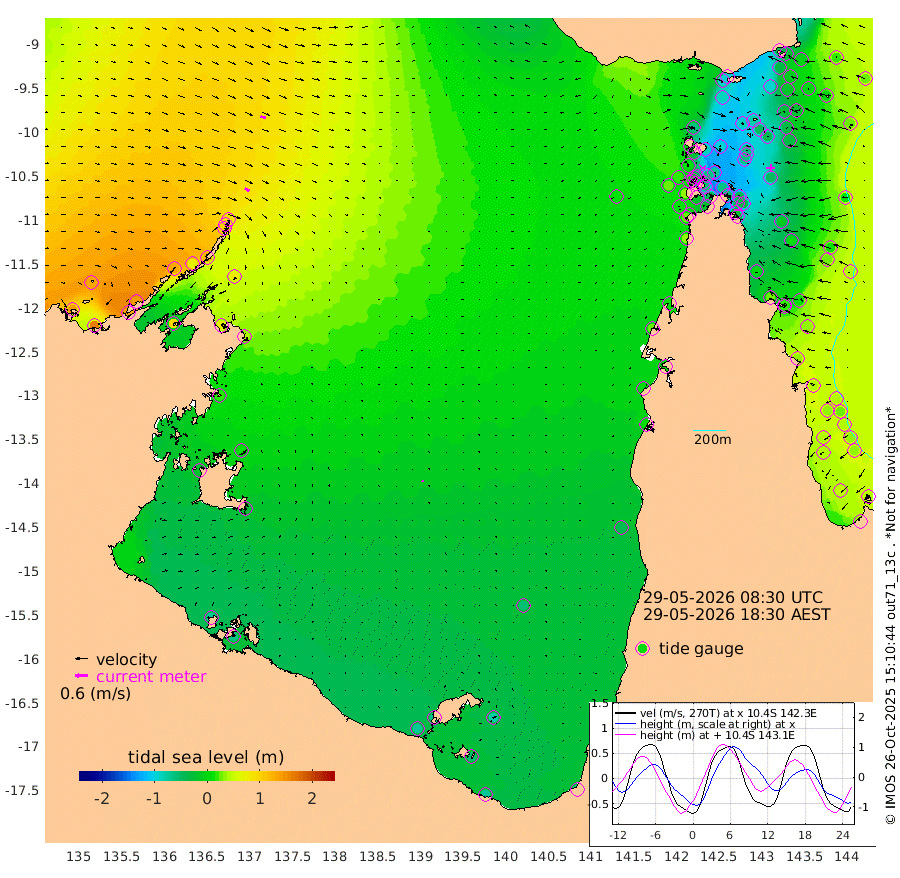 25cm/s 117T +3cm/s rms + 7cm/s -42T. ARA-GOC87 57m 7cm/s 0T +3cm/s rms + 2cm/s -2T. ARA-GOC87 60m 26cm/s 110T +2cm/s rms + 3cm/s 61T. ARA-GOC87 47m -38cm Daru -29cm Bobo Island 24cm Meer Island Barge 18cm Bramble Cay -11cm Unnamed Cay -16cm Pearce Cay -5cm Stephens Island 0cm Merrie England Shoals -34cm Mutacomal Reef -3cm Darnley Island Barge 28cm East Cay -24cm Yorke Island Barge -24cm Rennel Island -36cm Aureed Island -52cm Dungeness Reef -82cm Zagai Island -87cm Yam Island -96cm Dauan Island -91cm Saibai Island -87cm Phipi Reef -92cm Warrior Reef - West -64cm Mabuiag Island Barge -30cm Half Way Island -42cm Coconut Island -48cm Dugong Islet -67cm Poll Island -61cm Kirkcaldie Reef -91cm Suarji Island -66cm Sue Islet 9cm Hawkesbury Island -63cm Alert Patches -71cm Twin Island -5cm Badu Island -86cm St Pauls (Moa Island) -25cm Kubin (Moa Island) -59cm Ince Point -48cm Thursday Island -52cm Nardana Patches -26cm Turtle Head -7cm Round Island 9cm Goods Island 24cm Booby Island 16cm White Rocks Area 14cm Carpentaria -65cm Papou Point 34cm Bampfield Head 28cm Crab Island 11cm Red Wallis Island -15cm Packe Island -49cm Harrington Reef -6cm Herald Camp -36cm Sharp Point -15cm Red Island Point -40cm Possession Island -66cm Alpha Rock -59cm Frederick Point -33cm Wyborn Reef Light -42cm Tetley Island 10cm Triangle Reef -20cm Turtle Head Island 14cm Maclennan Cay 42cm Raine Island -10cm Mcsweeny Reef 1cm Collette Reef 23cm Shadwell Reef 5cm Hannibal Island 23cm Round Point 31cm Vrilya Point 18cm Cape Grenville 21cm Hicks Island 14cm Sir Charles Hardy Island 4cm Harvey Island 36cm Kay Reef 35cm Rocky Island 42cm Chapman Island 40cm Ham Reef 36cm Jubilee Reef 27cm Night Island 40cm Unnamed Reef No. 3 40cm Morris Island 37cm 1st 3 Mile Opening 35cm Creech Reef 38cm Fife Island 52cm Eden Reef 41cm Stanley Island 42cm Normanby River 137cm Yabooma Island 159cm Hutchison River 142cm Elcho Island 129cm North West Crocodile Island 86cm Cape Wessel 130cm Stevens Island 75cm Guluwuru Island 125cm Hopeful Bay 104cm Auster Point 98cm Two Island Bay 132cm Cadell Strait 94cm Mallison Island 71cm Melville Bay (Gove Harbour) 76cm Truant Island 43cm Cape Arnhem 22cm Cape Grey 10cm Hawk Island -18cm Milner Bay (Groote Eylandt) -27cm Cape Beatrice -68cm West Island -65cm Centre Island -66cm Mornington Island -73cm West Wellesley Islands -79cm Bountiful Island -68cm Albert River Mouth -59cm Sweers Island -65cm Karumba -57cm Nassau River Offshore -38cm Christmas Creek 8cm Archer River 6cm Boyd Point 11cm Weipa (Humbug Point) 29cm Pennefather River 13cm Cullen Point
