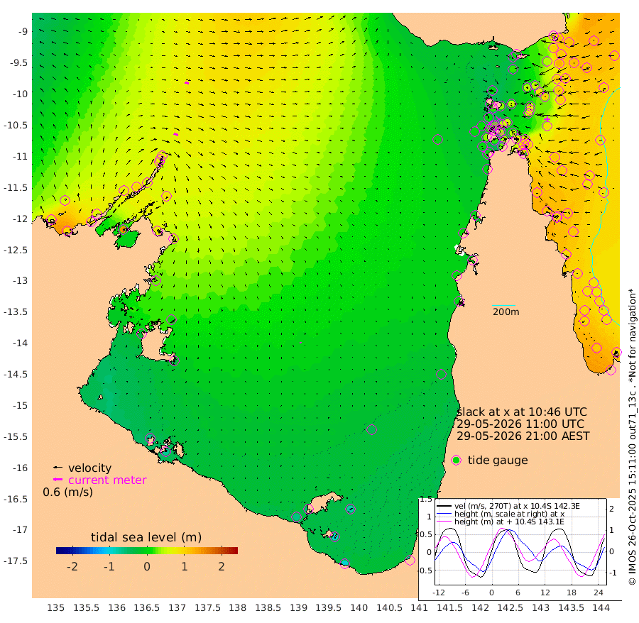30cm/s 109T +3cm/s rms + 7cm/s -42T. ARA-GOC87 57m 7cm/s 144T +3cm/s rms + 2cm/s -2T. ARA-GOC87 60m 27cm/s 101T +2cm/s rms + 3cm/s 61T. ARA-GOC87 47m 100cm Daru 116cm Bobo Island 94cm Meer Island Barge 113cm Bramble Cay 112cm Unnamed Cay 120cm Pearce Cay 114cm Stephens Island 119cm Merrie England Shoals 105cm Mutacomal Reef 108cm Darnley Island Barge 106cm East Cay 101cm Yorke Island Barge 106cm Rennel Island 106cm Aureed Island 85cm Dungeness Reef 52cm Zagai Island 42cm Yam Island -8cm Dauan Island 0cm Saibai Island 17cm Phipi Reef 44cm Warrior Reef - West 2cm Mabuiag Island Barge 98cm Half Way Island 102cm Coconut Island 90cm Dugong Islet 69cm Poll Island 72cm Kirkcaldie Reef 50cm Suarji Island 62cm Sue Islet 15cm Hawkesbury Island 51cm Alert Patches 53cm Twin Island 17cm Badu Island 35cm St Pauls (Moa Island) 17cm Kubin (Moa Island) 30cm Ince Point 22cm Thursday Island 23cm Nardana Patches 22cm Turtle Head 20cm Round Island 18cm Goods Island 6cm Booby Island 13cm White Rocks Area 4cm Carpentaria 41cm Papou Point 32cm Bampfield Head 6cm Crab Island 6cm Red Wallis Island 19cm Packe Island 106cm Harrington Reef 0cm Herald Camp 0cm Sharp Point 28cm Red Island Point 42cm Possession Island 49cm Alpha Rock 76cm Frederick Point 106cm Wyborn Reef Light 98cm Tetley Island 85cm Triangle Reef 115cm Turtle Head Island 88cm Maclennan Cay 84cm Raine Island 107cm Mcsweeny Reef 106cm Collette Reef 89cm Shadwell Reef 119cm Hannibal Island 120cm Round Point 1cm Vrilya Point 105cm Cape Grenville 101cm Hicks Island 98cm Sir Charles Hardy Island 31cm Harvey Island 106cm Kay Reef 91cm Rocky Island 92cm Chapman Island 86cm Ham Reef 88cm Jubilee Reef 81cm Night Island 91cm Unnamed Reef No. 3 96cm Morris Island 84cm 1st 3 Mile Opening 90cm Creech Reef 93cm Fife Island 109cm Eden Reef 95cm Stanley Island 106cm Normanby River 55cm Yabooma Island 93cm Hutchison River 67cm Elcho Island 54cm North West Crocodile Island 73cm Cape Wessel 74cm Stevens Island 96cm Guluwuru Island 66cm Hopeful Bay 70cm Auster Point 58cm Two Island Bay 93cm Cadell Strait 146cm Mallison Island 78cm Melville Bay (Gove Harbour) 86cm Truant Island 56cm Cape Arnhem 29cm Cape Grey 14cm Hawk Island -28cm Milner Bay (Groote Eylandt) -34cm Cape Beatrice -74cm West Island -68cm Centre Island -57cm Mornington Island -63cm West Wellesley Islands -78cm Bountiful Island -97cm Albert River Mouth -96cm Sweers Island -91cm Karumba -44cm Nassau River Offshore -19cm Christmas Creek 6cm Archer River 6cm Boyd Point 2cm Weipa (Humbug Point) 10cm Pennefather River -7cm Cullen Point