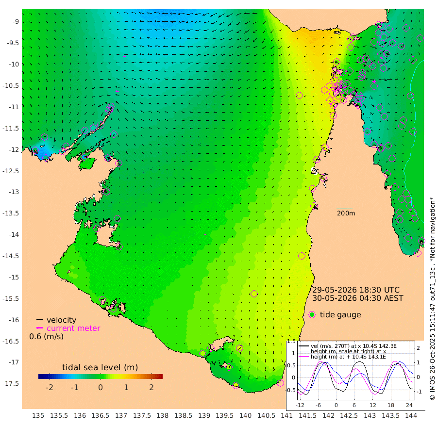 30cm/s -87T +3cm/s rms + 7cm/s -42T. ARA-GOC87 57m 9cm/s -152T +3cm/s rms + 2cm/s -2T. ARA-GOC87 60m 31cm/s -97T +2cm/s rms + 3cm/s 61T. ARA-GOC87 47m -51cm Daru -68cm Bobo Island -28cm Meer Island Barge -46cm Bramble Cay -51cm Unnamed Cay -66cm Pearce Cay -52cm Stephens Island -57cm Merrie England Shoals -56cm Mutacomal Reef -47cm Darnley Island Barge -32cm East Cay -51cm Yorke Island Barge -50cm Rennel Island -59cm Aureed Island -40cm Dungeness Reef -28cm Zagai Island -15cm Yam Island 34cm Dauan Island 24cm Saibai Island 24cm Phipi Reef -16cm Warrior Reef - West 29cm Mabuiag Island Barge -52cm Half Way Island -55cm Coconut Island -47cm Dugong Islet -38cm Poll Island -30cm Kirkcaldie Reef -16cm Suarji Island -31cm Sue Islet 65cm Hawkesbury Island -8cm Alert Patches -19cm Twin Island 62cm Badu Island -10cm St Pauls (Moa Island) 42cm Kubin (Moa Island) 11cm Ince Point 25cm Thursday Island 22cm Nardana Patches 46cm Turtle Head 51cm Round Island 70cm Goods Island 84cm Booby Island 74cm White Rocks Area 59cm Carpentaria -12cm Papou Point 76cm Bampfield Head 70cm Crab Island 72cm Red Wallis Island 50cm Packe Island -61cm Harrington Reef 85cm Herald Camp -3cm Sharp Point 37cm Red Island Point 7cm Possession Island -24cm Alpha Rock -38cm Frederick Point -61cm Wyborn Reef Light -58cm Tetley Island -29cm Triangle Reef -64cm Turtle Head Island -22cm Maclennan Cay -10cm Raine Island -50cm Mcsweeny Reef -45cm Collette Reef -23cm Shadwell Reef -53cm Hannibal Island -49cm Round Point 61cm Vrilya Point -37cm Cape Grenville -30cm Hicks Island -18cm Sir Charles Hardy Island -10cm Harvey Island -29cm Kay Reef -16cm Rocky Island -15cm Chapman Island -12cm Ham Reef -15cm Jubilee Reef -20cm Night Island -16cm Unnamed Reef No. 3 -19cm Morris Island -7cm 1st 3 Mile Opening -15cm Creech Reef -23cm Fife Island -24cm Eden Reef -18cm Stanley Island -28cm Normanby River -35cm Yabooma Island -62cm Hutchison River -52cm Elcho Island -44cm North West Crocodile Island -72cm Cape Wessel -69cm Stevens Island -80cm Guluwuru Island -56cm Hopeful Bay -64cm Auster Point -66cm Two Island Bay -84cm Cadell Strait -130cm Mallison Island -67cm Melville Bay (Gove Harbour) -76cm Truant Island -52cm Cape Arnhem -28cm Cape Grey -30cm Hawk Island -8cm Milner Bay (Groote Eylandt) 0cm Cape Beatrice 21cm West Island 17cm Centre Island 36cm Mornington Island 42cm West Wellesley Islands 73cm Bountiful Island 60cm Albert River Mouth 44cm Sweers Island 63cm Karumba 57cm Nassau River Offshore 64cm Christmas Creek 57cm Archer River 55cm Boyd Point 73cm Weipa (Humbug Point) 39cm Pennefather River 66cm Cullen Point