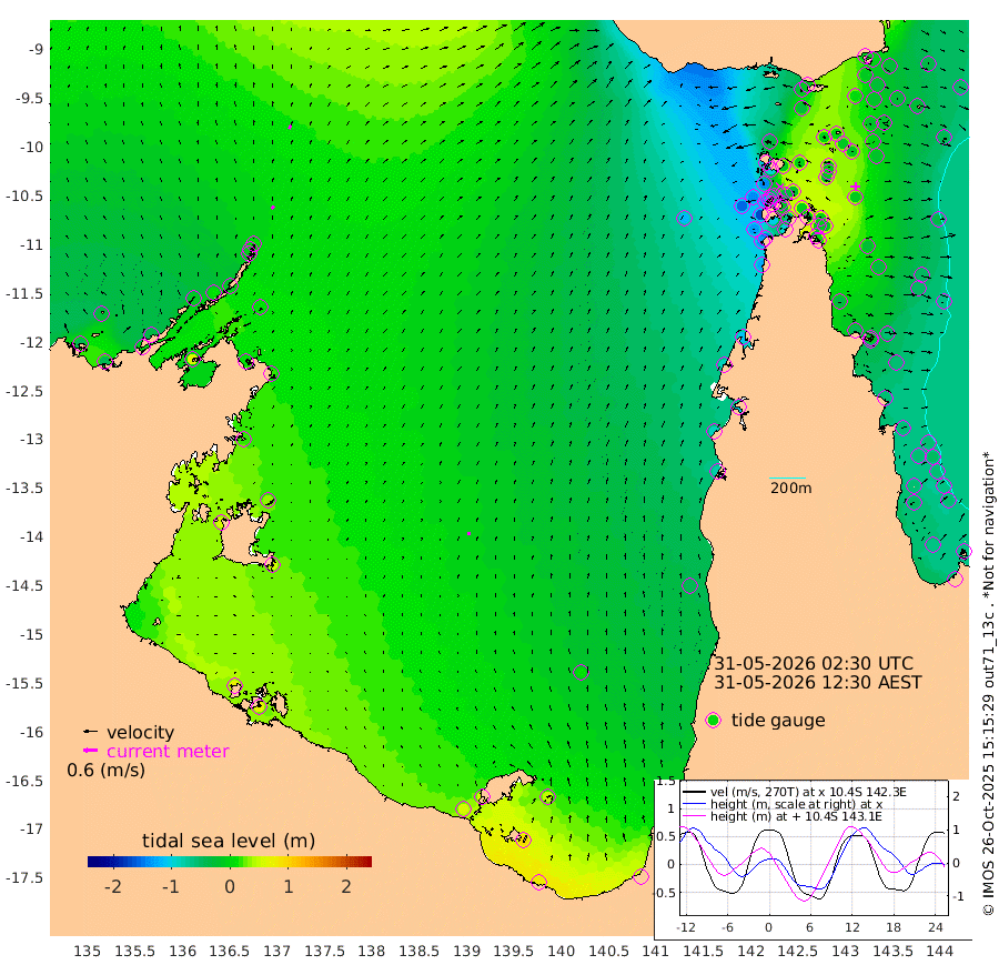 15cm/s 28T +3cm/s rms + 7cm/s -42T. ARA-GOC87 57m 14cm/s -3T +3cm/s rms + 2cm/s -2T. ARA-GOC87 60m 18cm/s 30T +2cm/s rms + 3cm/s 61T. ARA-GOC87 47m -12cm Daru -6cm Bobo Island -45cm Meer Island Barge -37cm Bramble Cay -27cm Unnamed Cay -16cm Pearce Cay -28cm Stephens Island -28cm Merrie England Shoals -11cm Mutacomal Reef -28cm Darnley Island Barge -50cm East Cay -16cm Yorke Island Barge -22cm Rennel Island -5cm Aureed Island -14cm Dungeness Reef 7cm Zagai Island -4cm Yam Island -18cm Dauan Island -10cm Saibai Island -30cm Phipi Reef 3cm Warrior Reef - West -37cm Mabuiag Island Barge -15cm Half Way Island -11cm Coconut Island -11cm Dugong Islet -2cm Poll Island -18cm Kirkcaldie Reef -7cm Suarji Island -5cm Sue Islet -137cm Hawkesbury Island -33cm Alert Patches -20cm Twin Island -117cm Badu Island -14cm St Pauls (Moa Island) -92cm Kubin (Moa Island) -44cm Ince Point -62cm Thursday Island -56cm Nardana Patches -94cm Turtle Head -114cm Round Island -135cm Goods Island -152cm Booby Island -138cm White Rocks Area -114cm Carpentaria -22cm Papou Point -171cm Bampfield Head -132cm Crab Island -131cm Red Wallis Island -105cm Packe Island -8cm Harrington Reef -146cm Herald Camp 8cm Sharp Point -90cm Red Island Point -60cm Possession Island -6cm Alpha Rock -14cm Frederick Point -10cm Wyborn Reef Light -7cm Tetley Island -35cm Triangle Reef -27cm Turtle Head Island -46cm Maclennan Cay -61cm Raine Island -24cm Mcsweeny Reef -31cm Collette Reef -47cm Shadwell Reef -31cm Hannibal Island -41cm Round Point -121cm Vrilya Point -43cm Cape Grenville -49cm Hicks Island -54cm Sir Charles Hardy Island -13cm Harvey Island -54cm Kay Reef -57cm Rocky Island -58cm Chapman Island -58cm Ham Reef -56cm Jubilee Reef -45cm Night Island -57cm Unnamed Reef No. 3 -59cm Morris Island -66cm 1st 3 Mile Opening -58cm Creech Reef -48cm Fife Island -65cm Eden Reef -61cm Stanley Island -56cm Normanby River -42cm Yabooma Island -44cm Hutchison River -30cm Elcho Island -27cm North West Crocodile Island 10cm Cape Wessel -9cm Stevens Island 12cm Guluwuru Island -17cm Hopeful Bay -8cm Auster Point -1cm Two Island Bay -7cm Cadell Strait 62cm Mallison Island 10cm Melville Bay (Gove Harbour) 11cm Truant Island 16cm Cape Arnhem 19cm Cape Grey 33cm Hawk Island 55cm Milner Bay (Groote Eylandt) 53cm Cape Beatrice 73cm West Island 71cm Centre Island 53cm Mornington Island 58cm West Wellesley Islands 45cm Bountiful Island 82cm Albert River Mouth 96cm Sweers Island 62cm Karumba 8cm Nassau River Offshore -38cm Christmas Creek -80cm Archer River -86cm Boyd Point -102cm Weipa (Humbug Point) -87cm Pennefather River -108cm Cullen Point