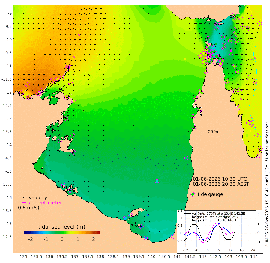 32cm/s 122T +3cm/s rms + 7cm/s -42T. ARA-GOC87 57m 6cm/s 31T +3cm/s rms + 2cm/s -2T. ARA-GOC87 60m 32cm/s 117T +2cm/s rms + 3cm/s 61T. ARA-GOC87 47m 16cm Daru 21cm Bobo Island 47cm Meer Island Barge 51cm Bramble Cay 40cm Unnamed Cay 30cm Pearce Cay 39cm Stephens Island 47cm Merrie England Shoals 24cm Mutacomal Reef 35cm Darnley Island Barge 50cm East Cay 21cm Yorke Island Barge 28cm Rennel Island 11cm Aureed Island 7cm Dungeness Reef -23cm Zagai Island -19cm Yam Island -46cm Dauan Island -50cm Saibai Island -38cm Phipi Reef -36cm Warrior Reef - West -14cm Mabuiag Island Barge 25cm Half Way Island 15cm Coconut Island 13cm Dugong Islet -4cm Poll Island 3cm Kirkcaldie Reef -23cm Suarji Island -10cm Sue Islet 71cm Hawkesbury Island 1cm Alert Patches -3cm Twin Island 50cm Badu Island -16cm St Pauls (Moa Island) 44cm Kubin (Moa Island) 5cm Ince Point 15cm Thursday Island 12cm Nardana Patches 33cm Turtle Head 63cm Round Island 67cm Goods Island 79cm Booby Island 73cm White Rocks Area 62cm Carpentaria 0cm Papou Point 110cm Bampfield Head 68cm Crab Island 65cm Red Wallis Island 49cm Packe Island 15cm Harrington Reef 67cm Herald Camp -20cm Sharp Point 29cm Red Island Point 26cm Possession Island -3cm Alpha Rock 5cm Frederick Point 28cm Wyborn Reef Light 22cm Tetley Island 35cm Triangle Reef 47cm Turtle Head Island 41cm Maclennan Cay 53cm Raine Island 32cm Mcsweeny Reef 37cm Collette Reef 45cm Shadwell Reef 44cm Hannibal Island 56cm Round Point 62cm Vrilya Point 49cm Cape Grenville 50cm Hicks Island 44cm Sir Charles Hardy Island 14cm Harvey Island 57cm Kay Reef 50cm Rocky Island 50cm Chapman Island 49cm Ham Reef 51cm Jubilee Reef 43cm Night Island 49cm Unnamed Reef No. 3 56cm Morris Island 57cm 1st 3 Mile Opening 51cm Creech Reef 44cm Fife Island 67cm Eden Reef 58cm Stanley Island 60cm Normanby River 169cm Yabooma Island 199cm Hutchison River 170cm Elcho Island 155cm North West Crocodile Island 107cm Cape Wessel 155cm Stevens Island 98cm Guluwuru Island 141cm Hopeful Bay 128cm Auster Point 128cm Two Island Bay 152cm Cadell Strait 71cm Mallison Island 87cm Melville Bay (Gove Harbour) 97cm Truant Island 52cm Cape Arnhem 18cm Cape Grey 2cm Hawk Island -36cm Milner Bay (Groote Eylandt) -50cm Cape Beatrice -102cm West Island -97cm Centre Island -116cm Mornington Island -124cm West Wellesley Islands -139cm Bountiful Island -140cm Albert River Mouth -147cm Sweers Island -139cm Karumba -96cm Nassau River Offshore -57cm Christmas Creek 3cm Archer River 18cm Boyd Point 23cm Weipa (Humbug Point) 40cm Pennefather River 44cm Cullen Point